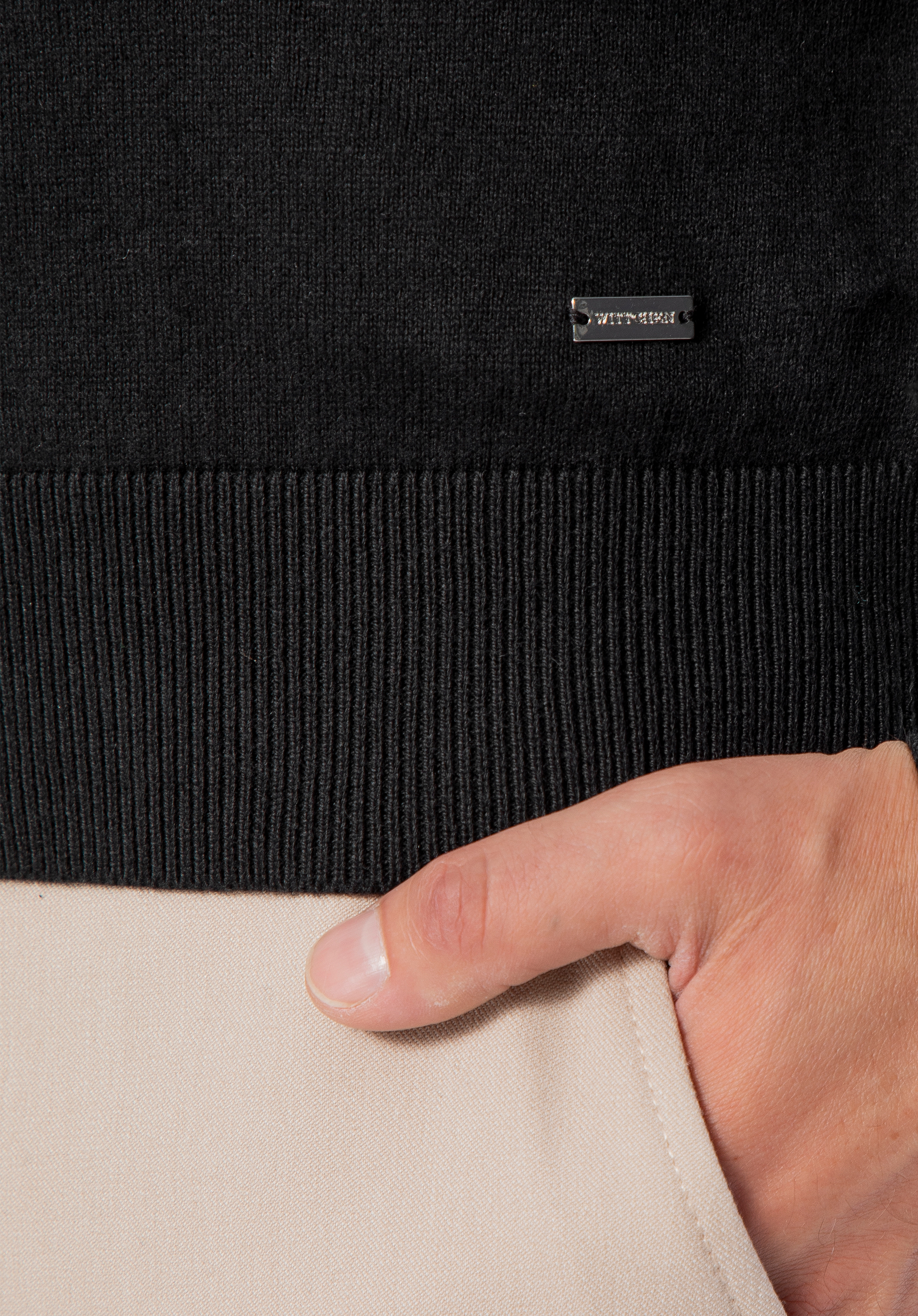 Lux subtil de zi cu zi – acest pulover cu mânecă lungă pentru bărbați este un omagiu adus clasicelor atemporale, apreciat de orice bărbat care prețuiește confortul și calitatea. Fabricat din bumbac moale amestecat cu cașmir , te învăluie în căldură, oferind în același timp respirabilitate naturală – perfect pentru zilele mai răcoroase. Caracteristica cheie este gulerul elegant cu nasturi – cu un simplu gest, îți poți transforma look-ul de la relaxat la unul mai elegant, smart-casual. Un logo metalic discret lângă marginea inferioară completează designul – un mic detaliu care vorbește de la sine despre calitate.