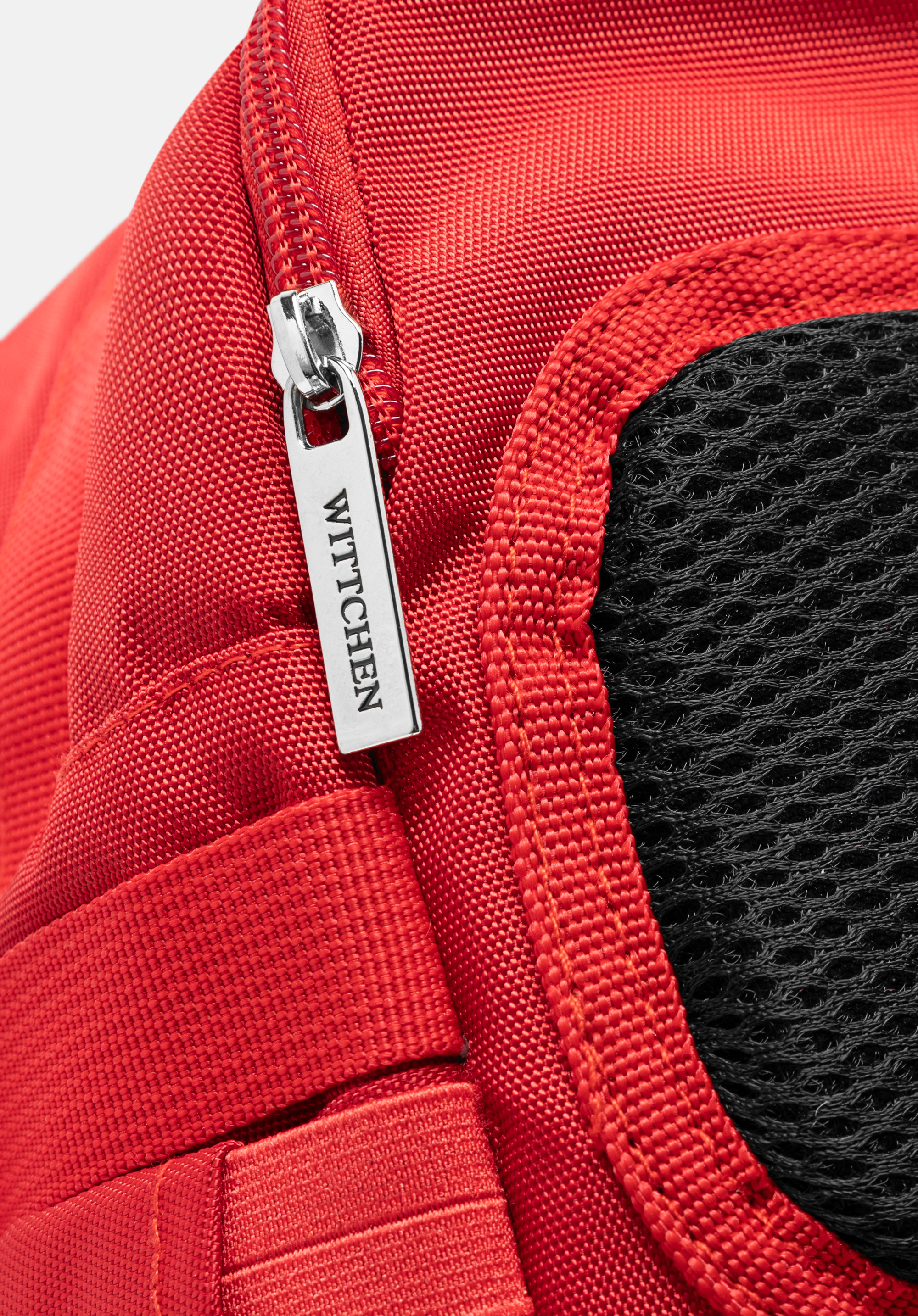 - Buzunar frontal cu multiple compartimente: 5 buzunare, dintre care 4 cu fermoar (dintre care unul este un buzunar impermeabil din PVC dublu ) si un buzunar deschis pentru obiecte mici.