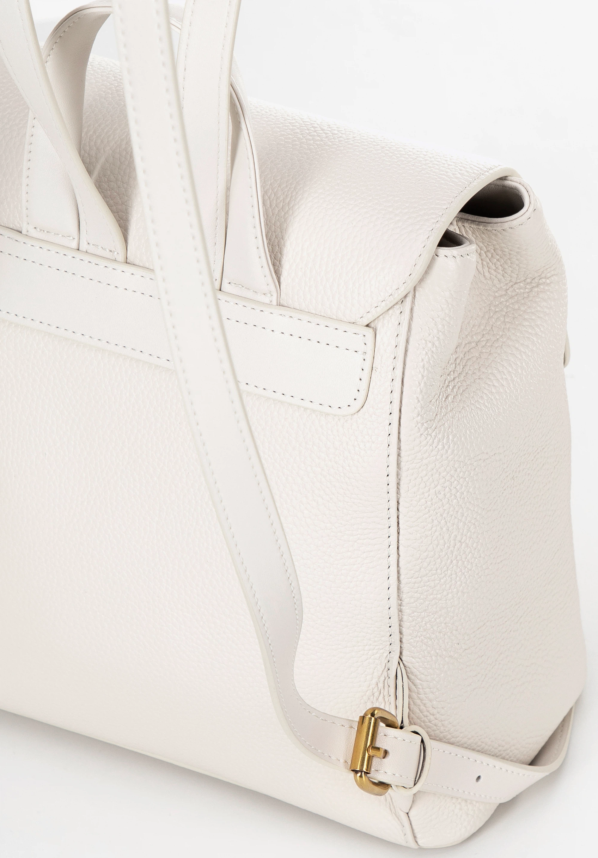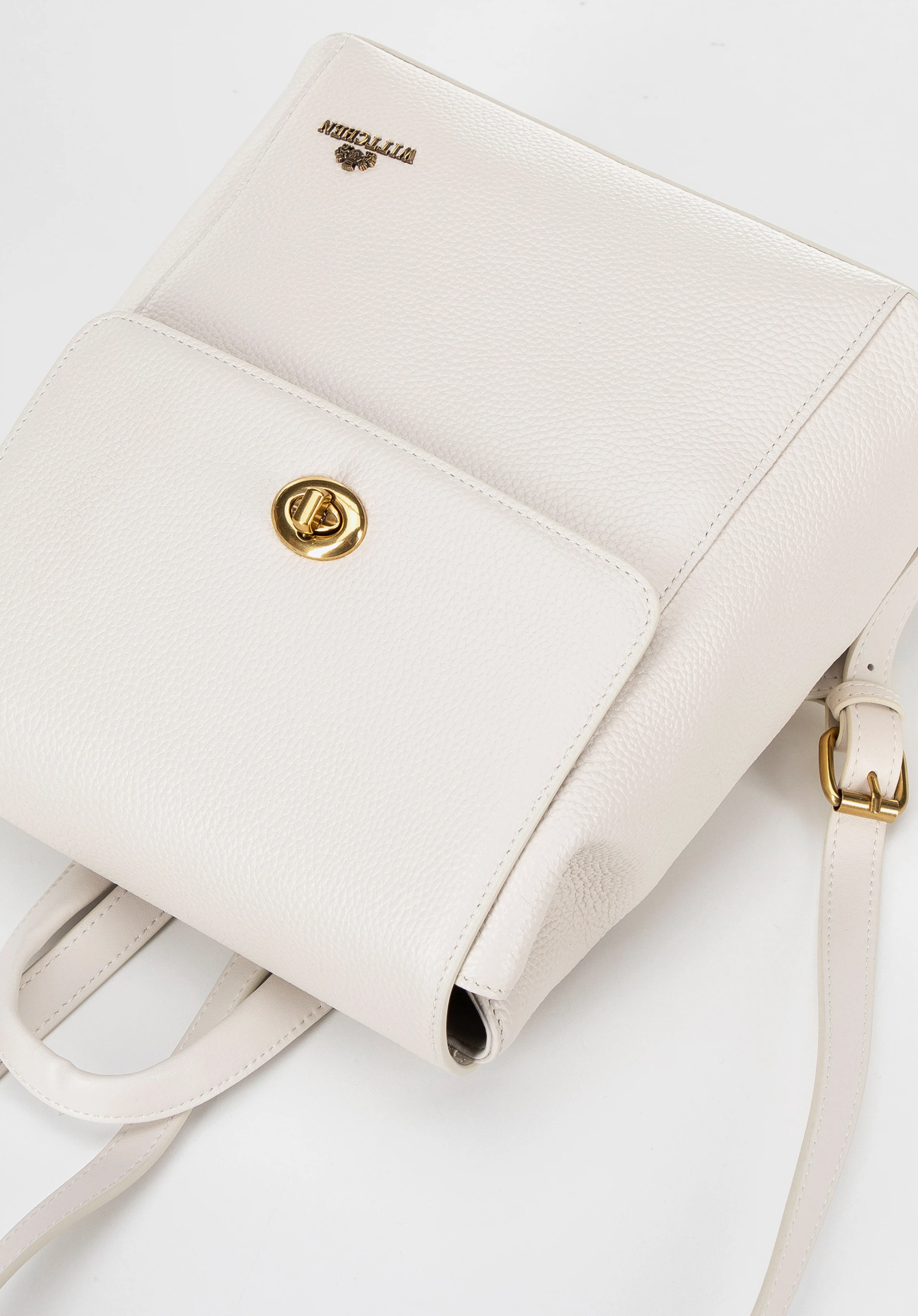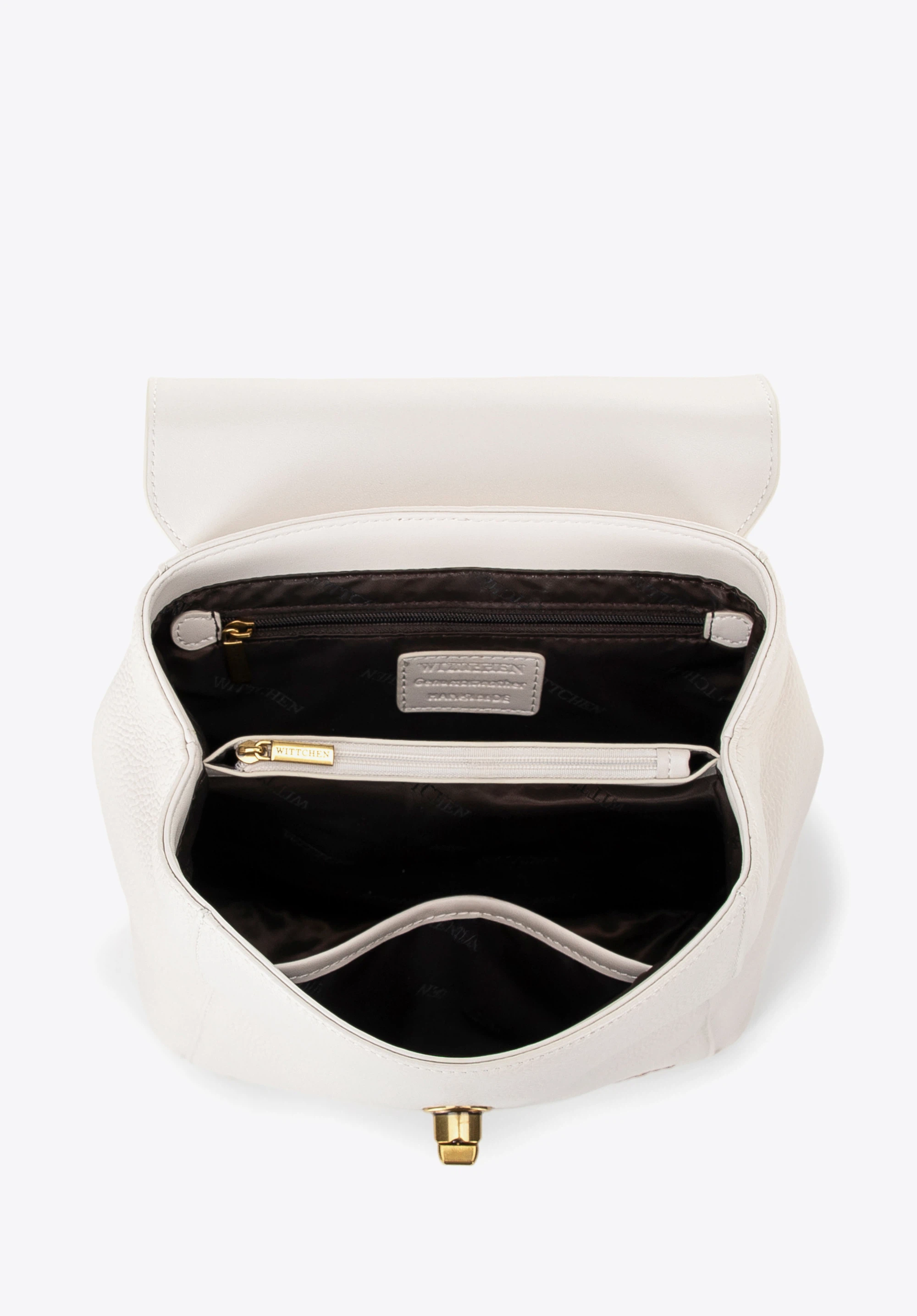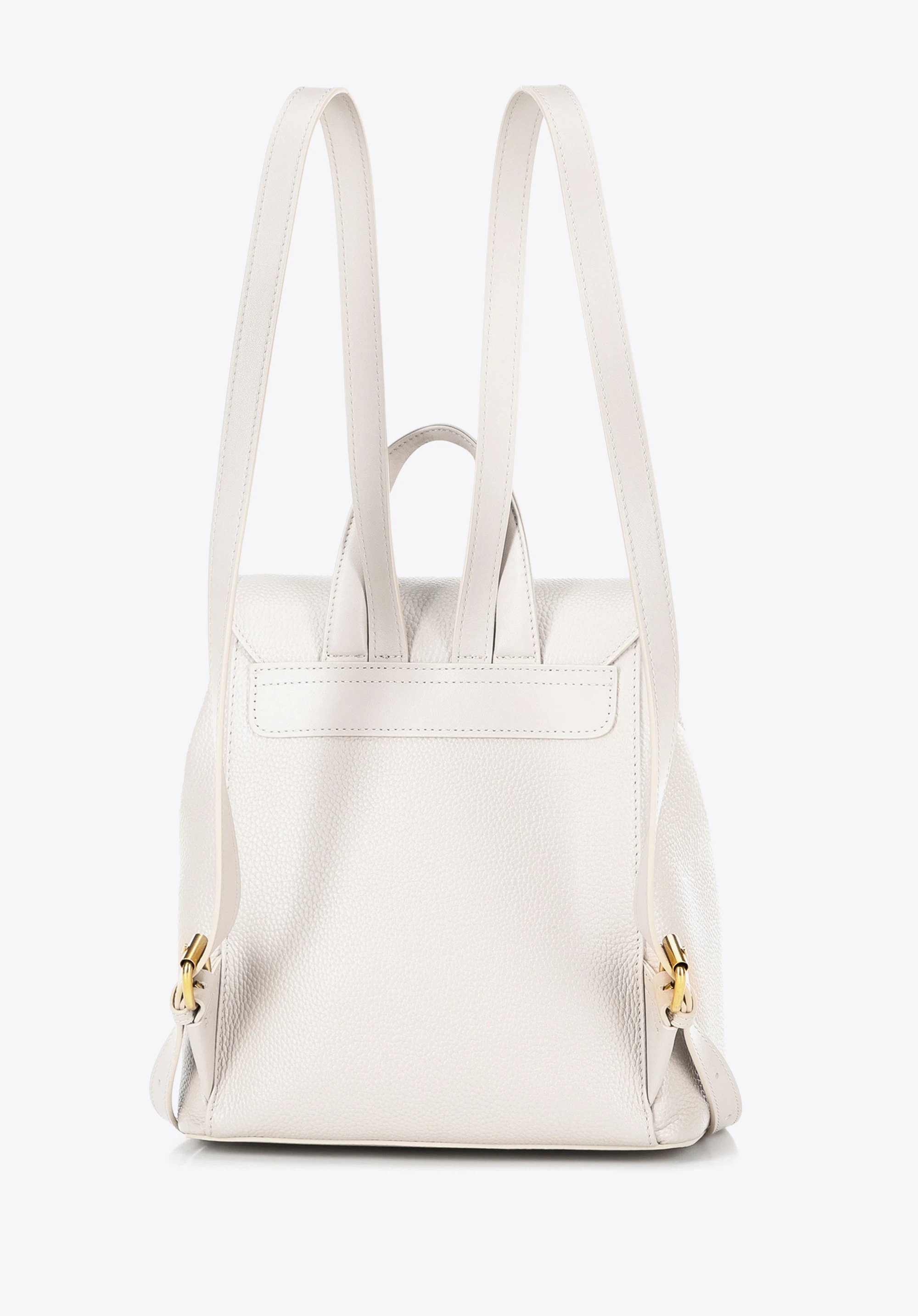 Un rucsac elegant din piele naturală (cu mâner și curele din material din microfibră asemănătoare pielii), care combină eleganța, durabilitatea și funcționalitatea excepțională. Designul său modern este evidențiat de o încuietoare rotativă care nu numai că asigură securitatea, dar adaugă și o notă unică. În interior, rucsacul are două compartimente separate printr-un buzunar cu fermoar.