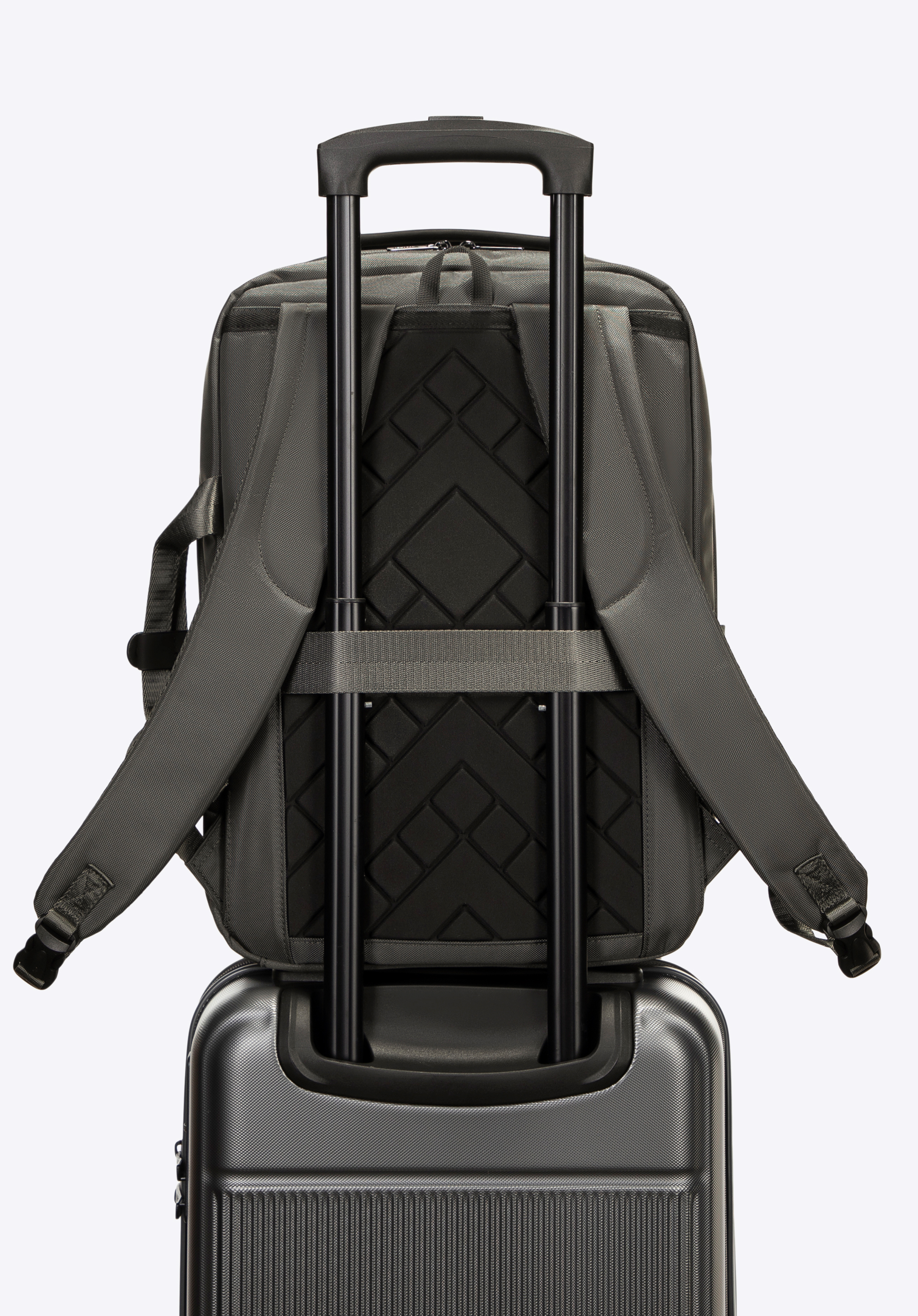 Sfatul nostru: Folosește cureaua de pe spate pentru a fixa rucsacul pe mânerul valizei . Completează-ți setul cu o geantă de voiaj asortată și bucură-te de un aspect modern și uniform, oriunde ești.