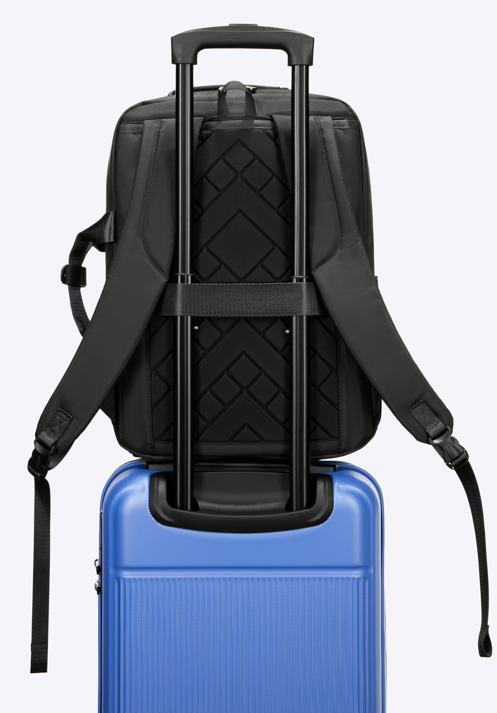 Sfatul nostru: Folosește cureaua de pe spate pentru a fixa rucsacul pe mânerul valizei . Completează-ți setul cu o geantă de voiaj asortată și bucură-te de un aspect modern și uniform, oriunde ești.