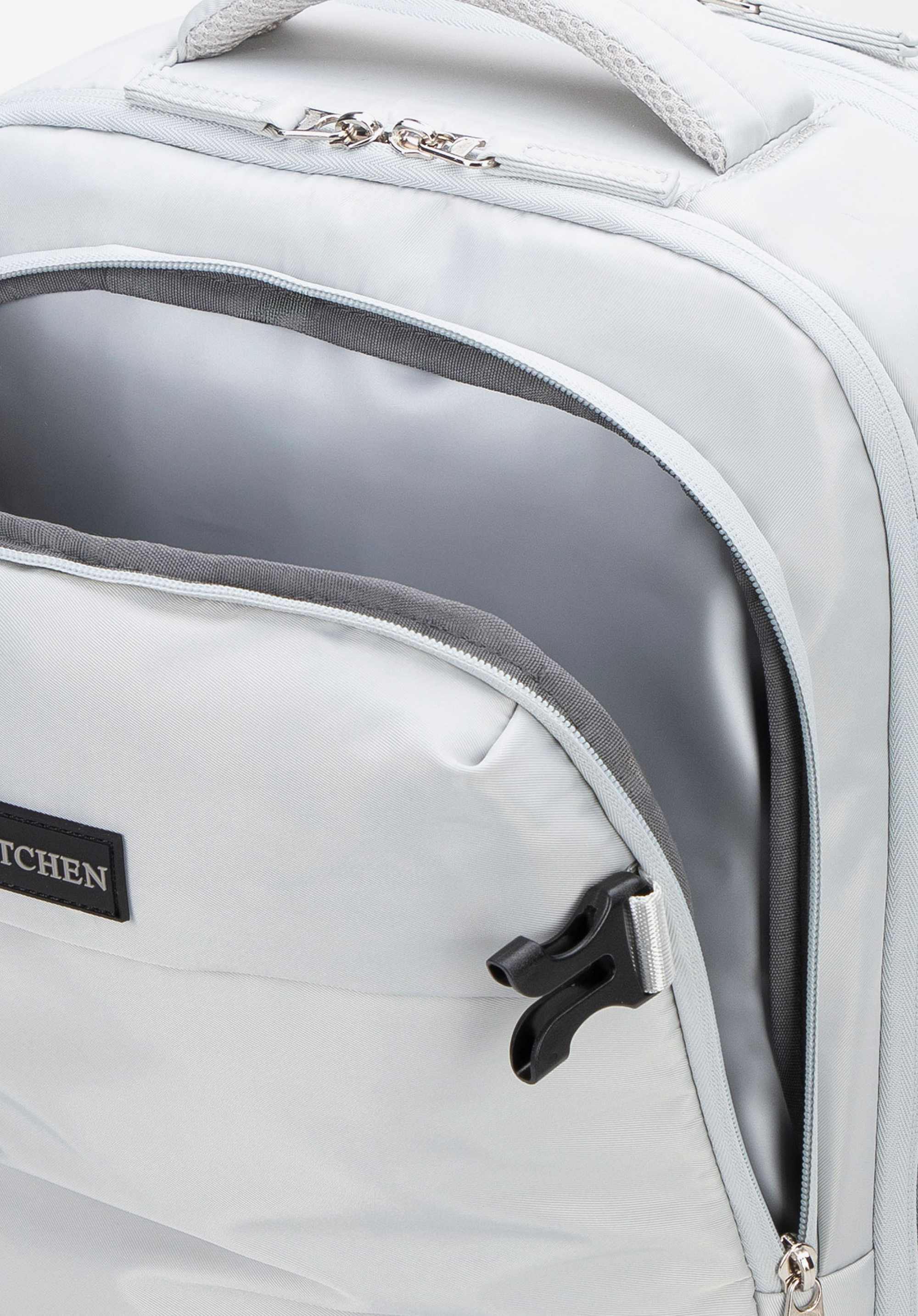 - Buzunar căptușit pentru laptop: Securizat cu o curea Velcro, protejează laptopurile (până la 17", max. 36 × 27 cm) și le menține stabile în timpul mișcării.