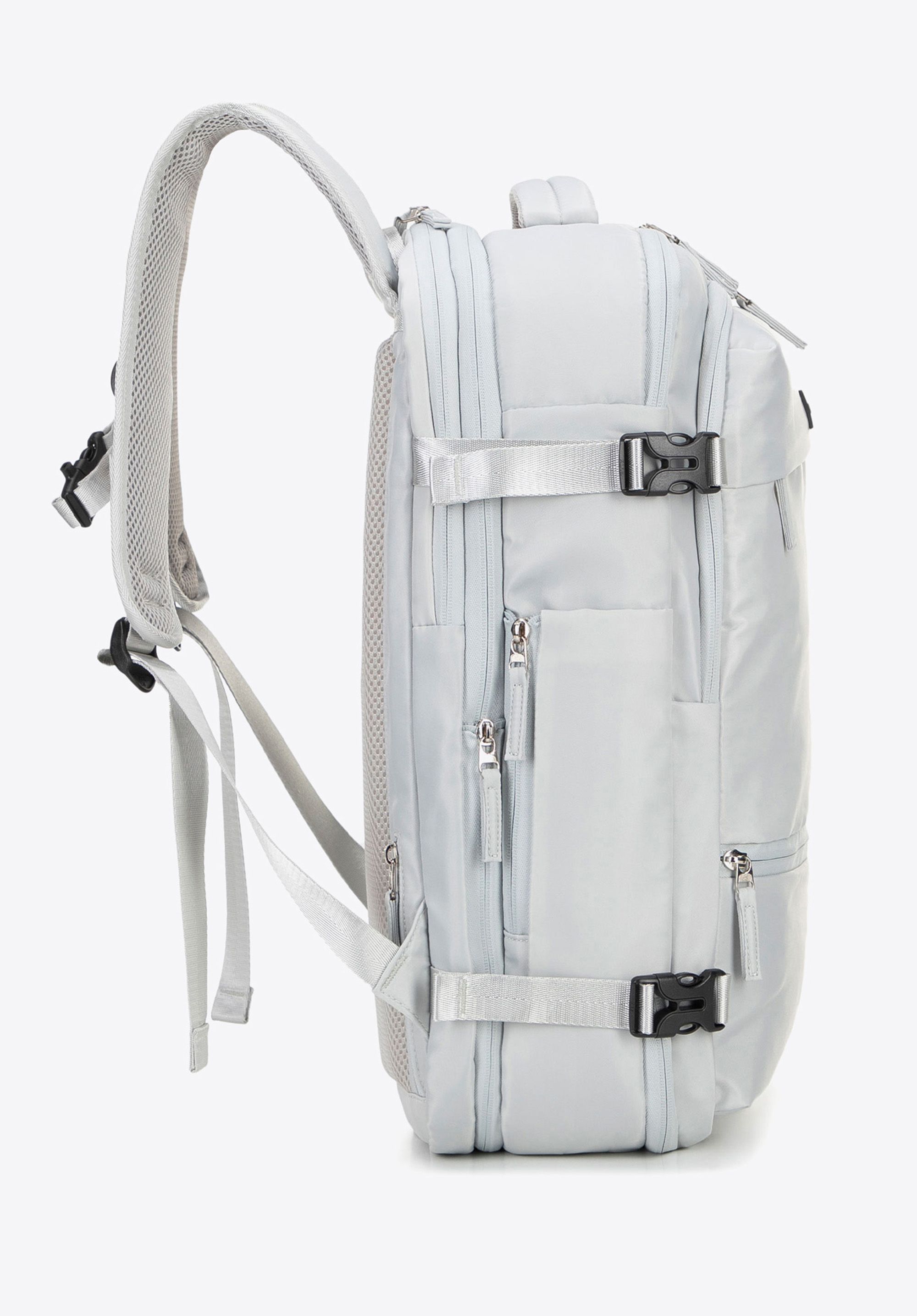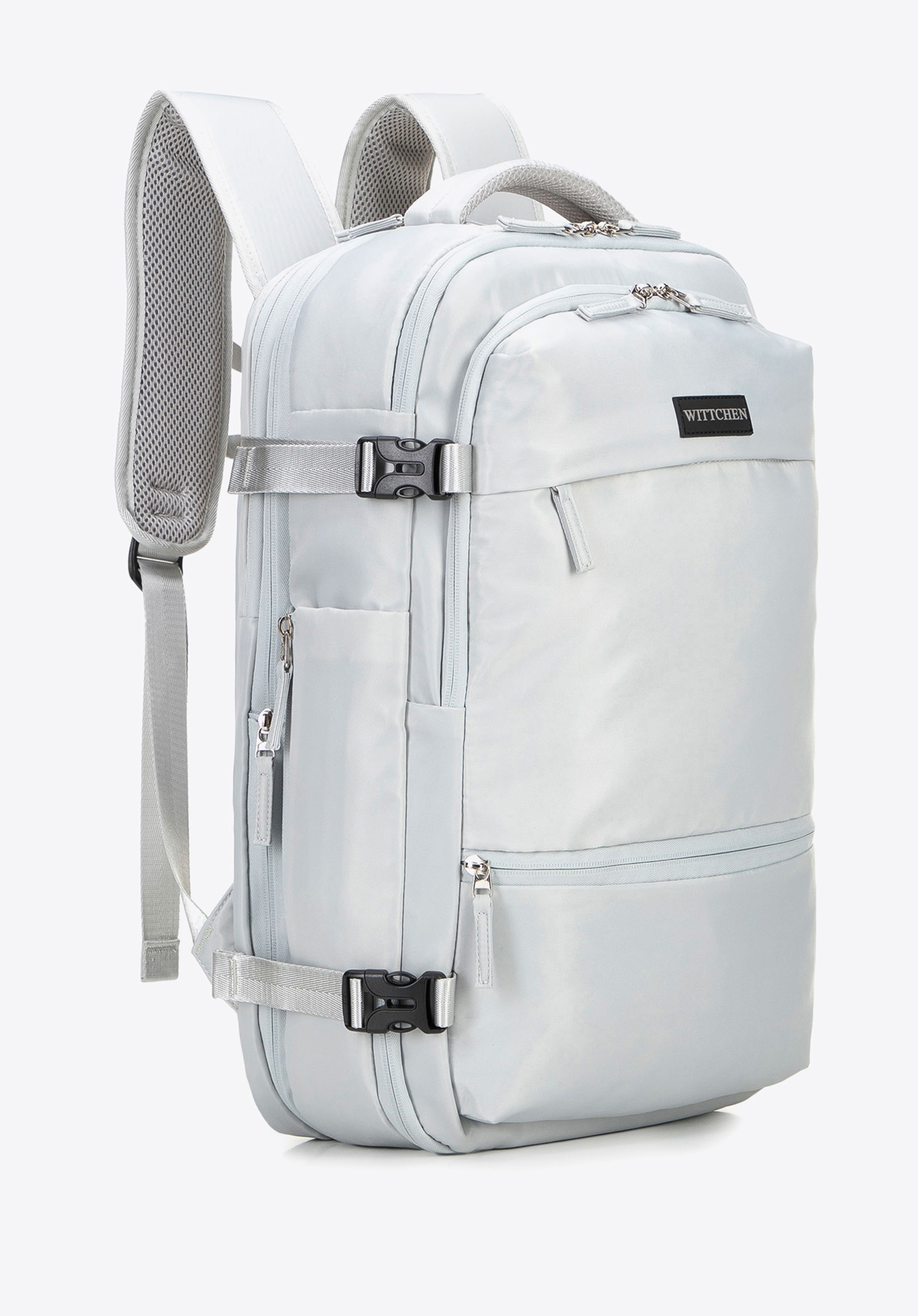 Rucsacul nostru rezistent la apă din poliester asigură confort și protecție în orice condiții. Are un design cu trei compartimente cu un buzunar căptușit pentru laptop de 17" (până la 36 × 27 cm). Acest rucsac îndeplinește cerințele de dimensiune ale companiilor aeriene populare ca bagaj de mână gratuit (Free on Board), făcându-l o alegere ideală pentru călătorii cu avionul.