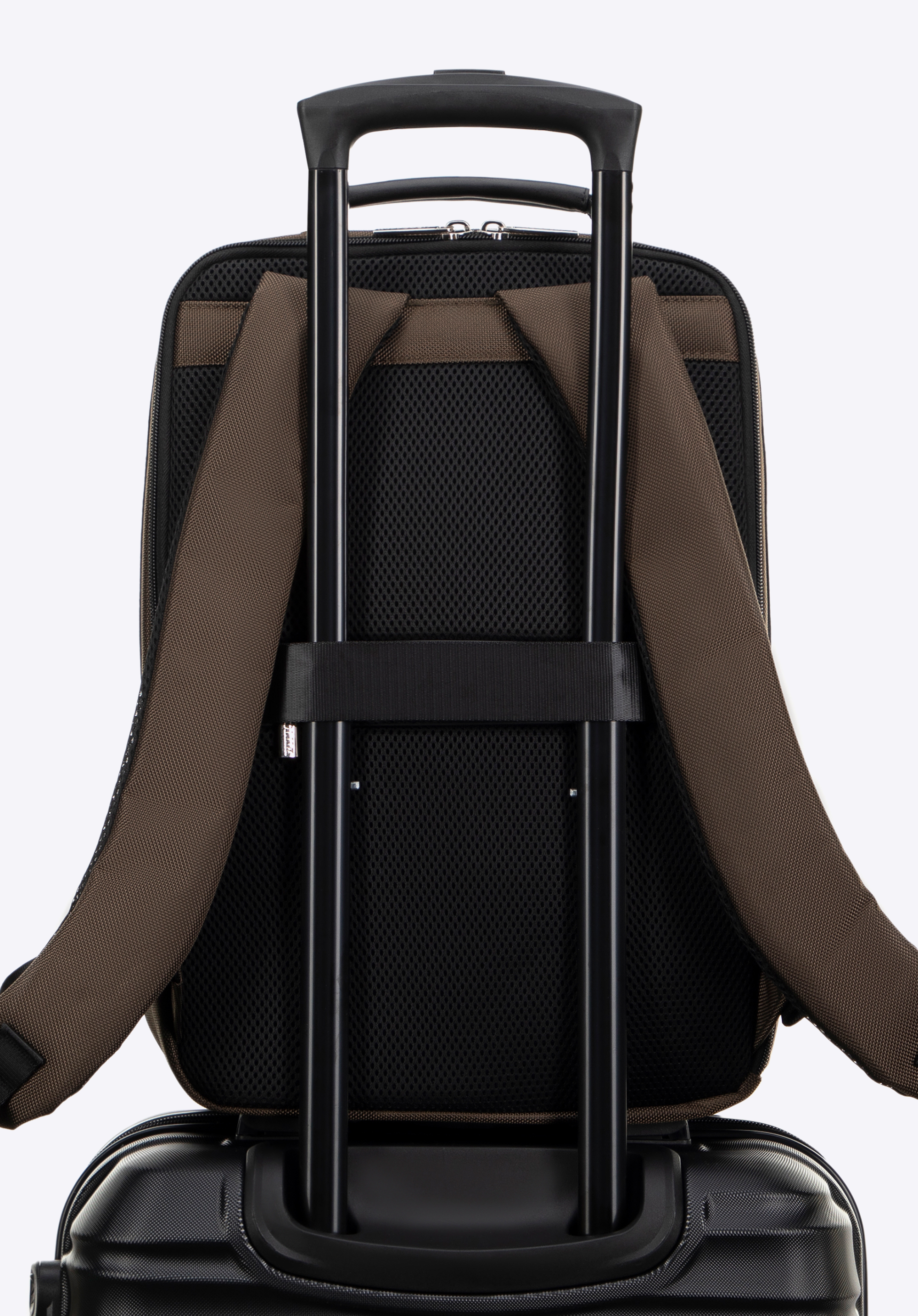 - Curea pentru spate: Îți permite să atașezi rapid și ușor rucsacul la mânerul valizei pentru un confort maxim în timp ce te deplasezi prin aeroport sau gară.