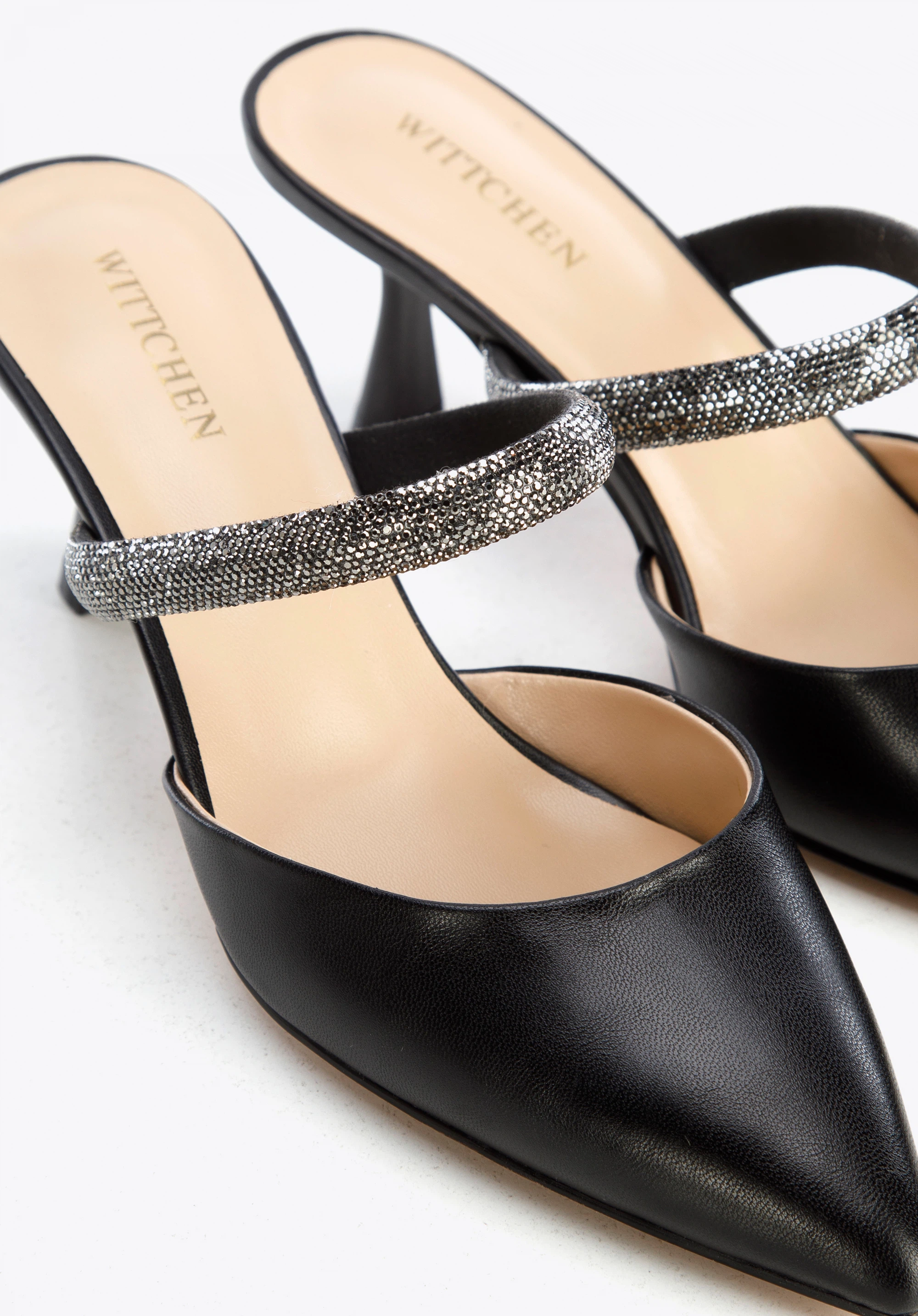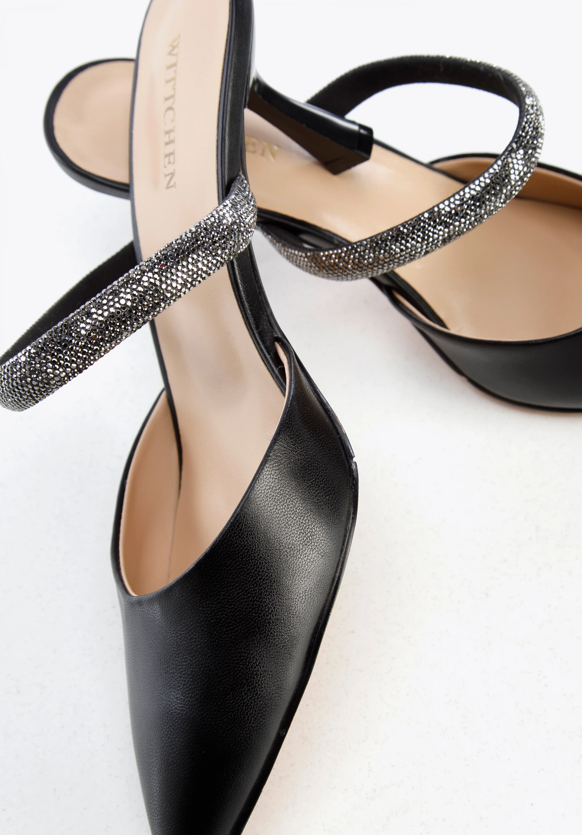 din piele naturală de înaltă calitate.O bandă de bijuterii din cristale mici și strălucitoare le conferă o notă unică.