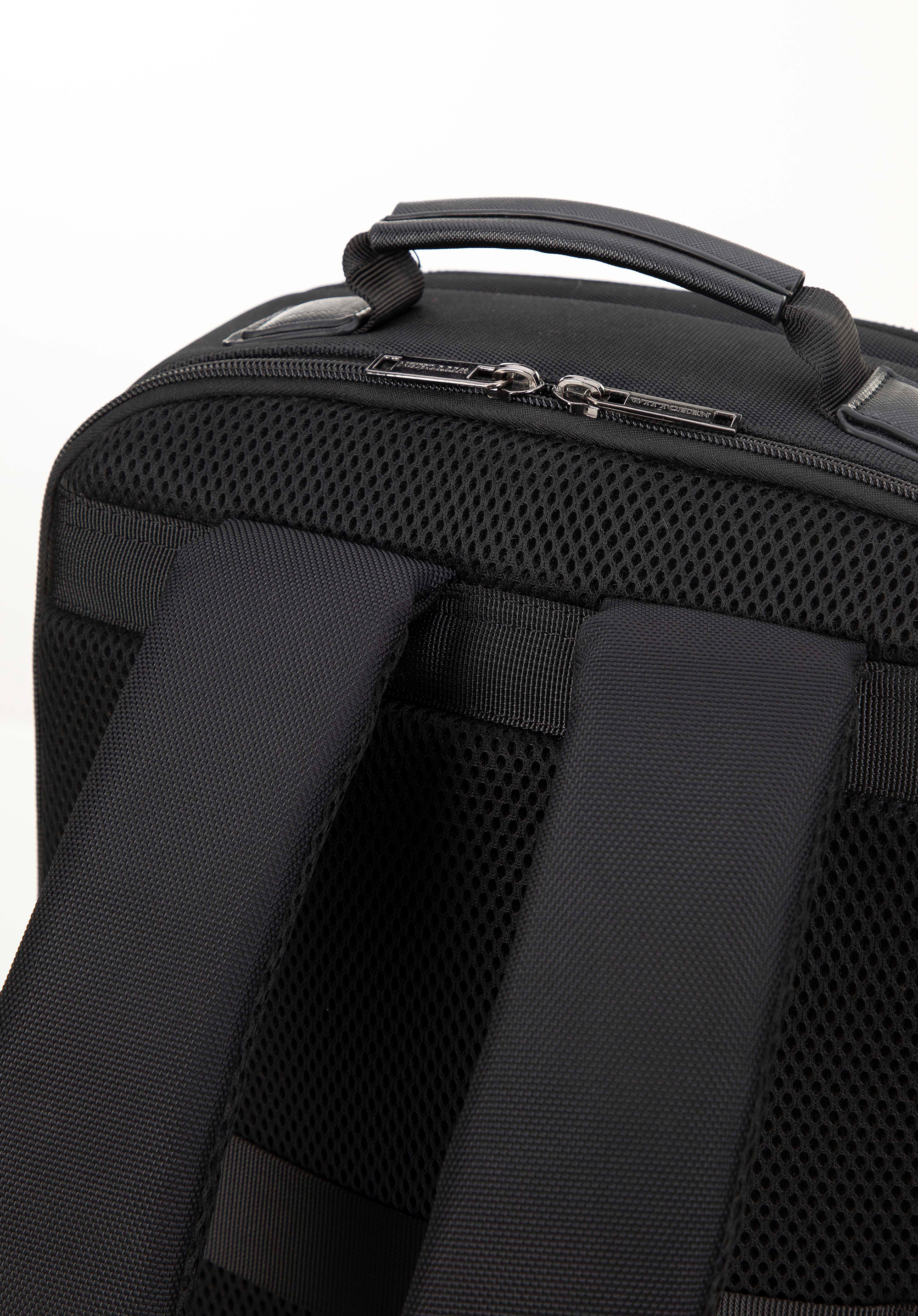 Acest rucsac de laptop pentru bărbați pentru laptopuri de 15 inchi este fabricat din materiale durabile și rezistente. Textura sa netedă , lucioasă, fără ornamente, îi conferă un aspect modern și elegant. Rucsacul este echipat cu bretele reglabile moi, asigurând confortul la purtare. Pe spatele ghiozdanului se află o curea care permite atașarea acestuia de o valiză, ceea ce este extrem de practic in timpul călătoriei.