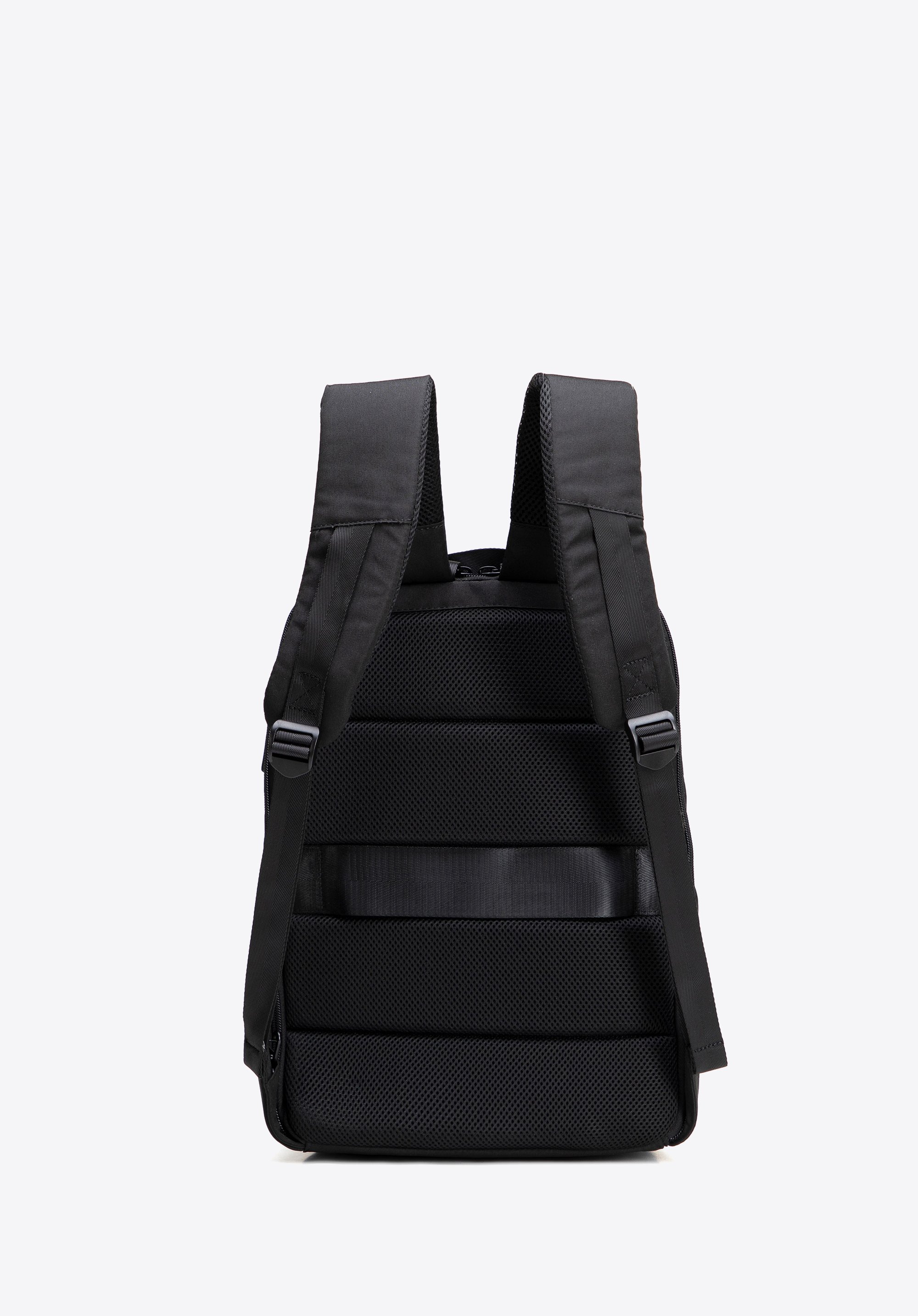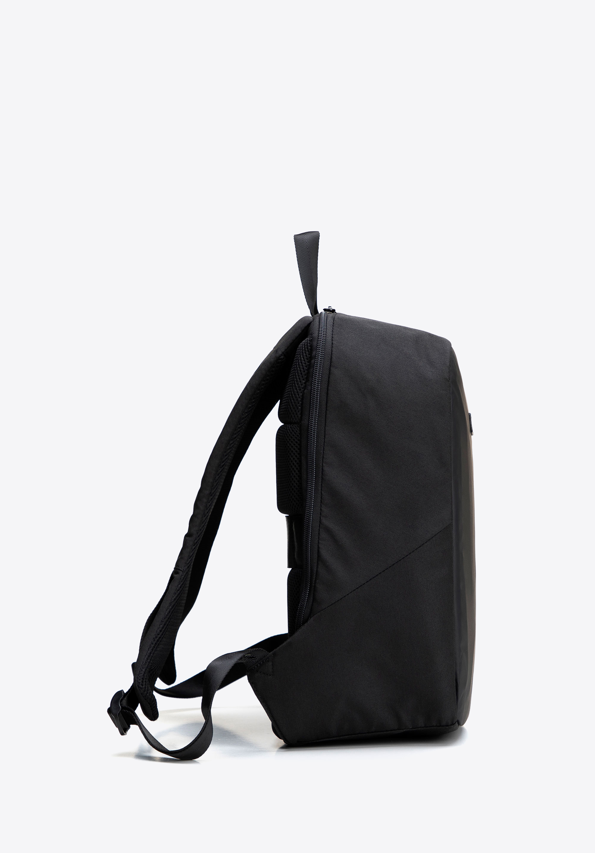 - Compartiment principal cu o dispunere practică a buzunarelor: o parte include patru buzunare (unul cu fermoar), în timp ce cealaltă are o secțiune pentru laptop și un buzunar mic pentru obiectele esențiale.