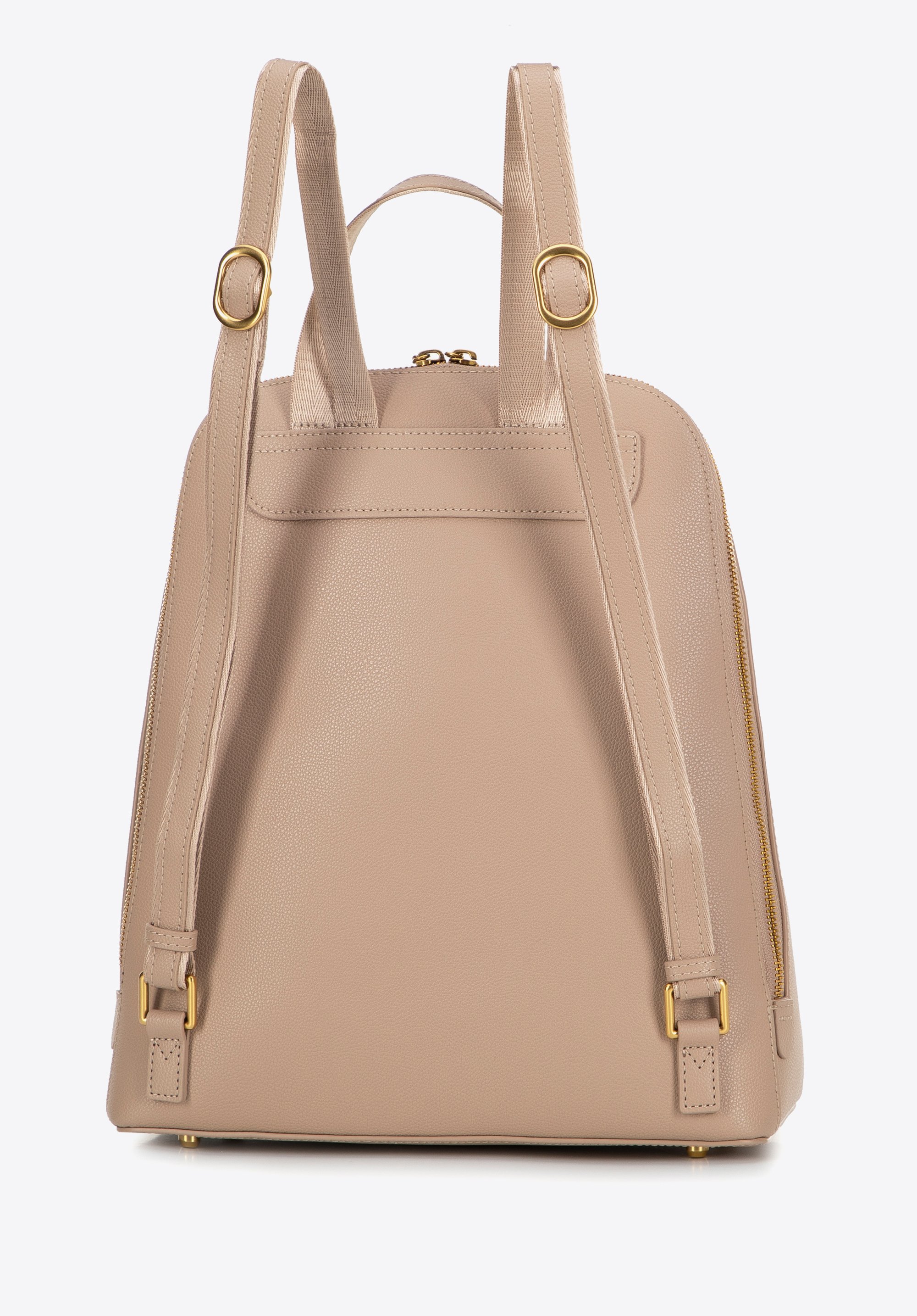 - Detalii elegante: Niturile metalice și o curea pe partea din față conferă caracter rucsacului, făcându-l un accent distinctiv pentru orice look.