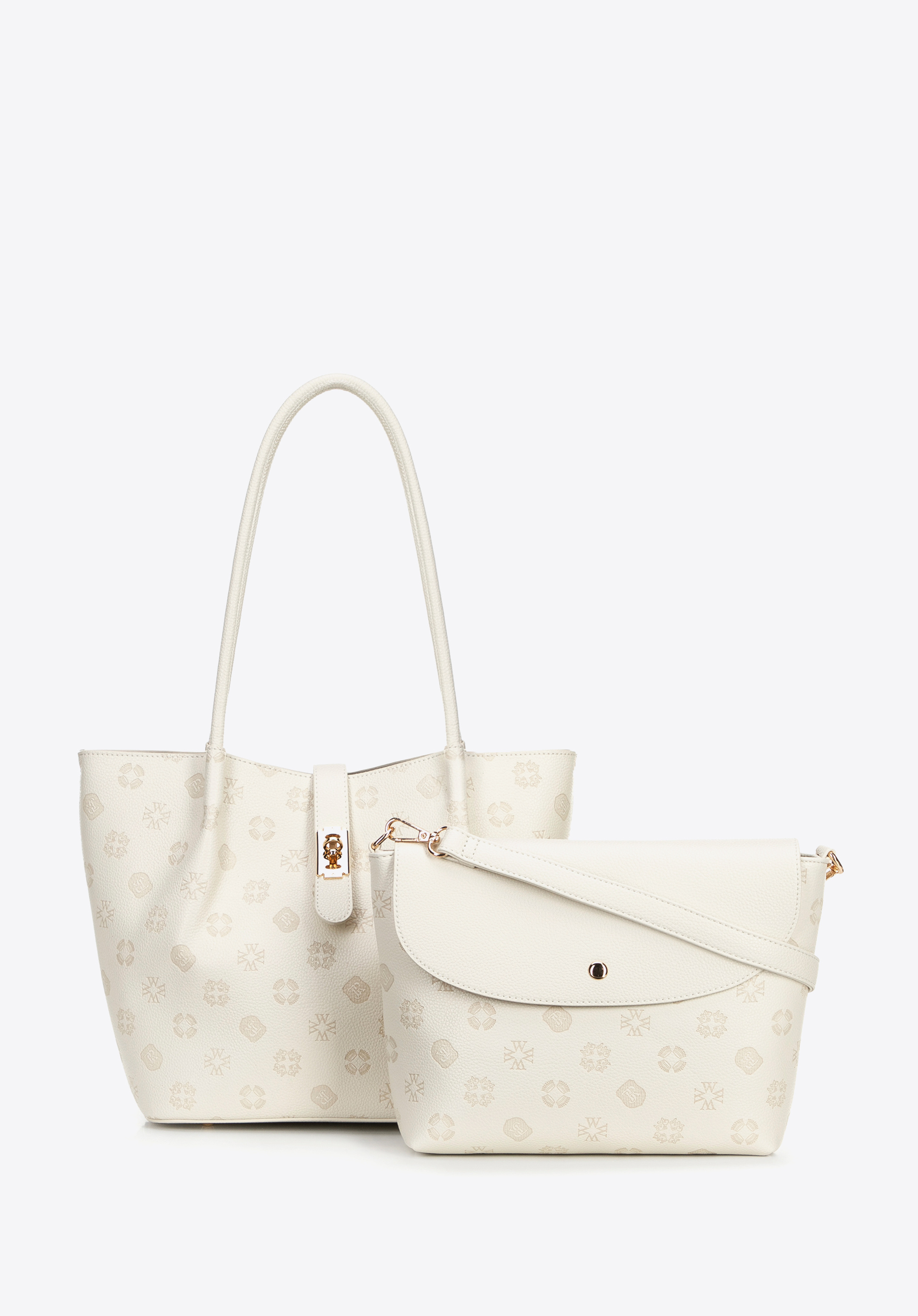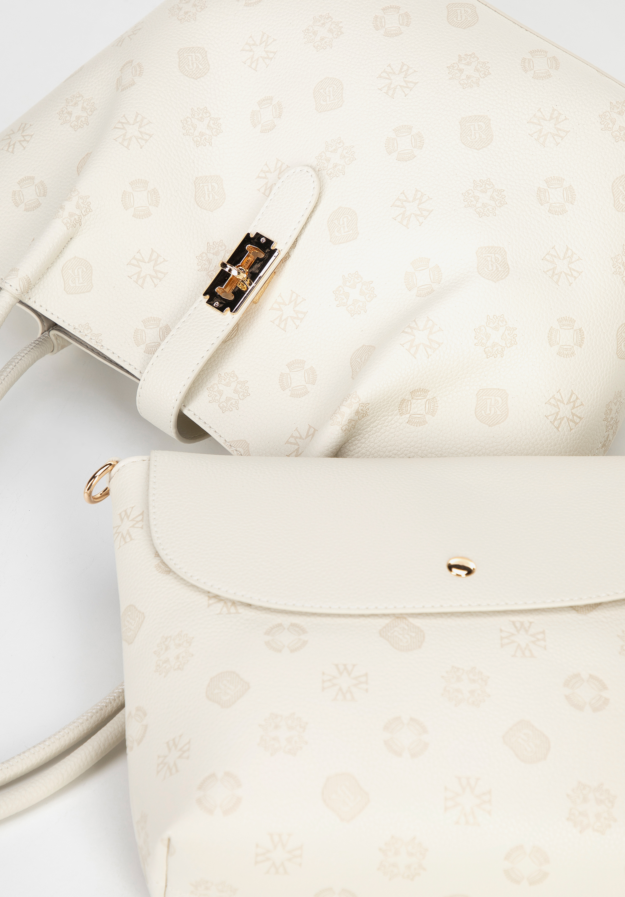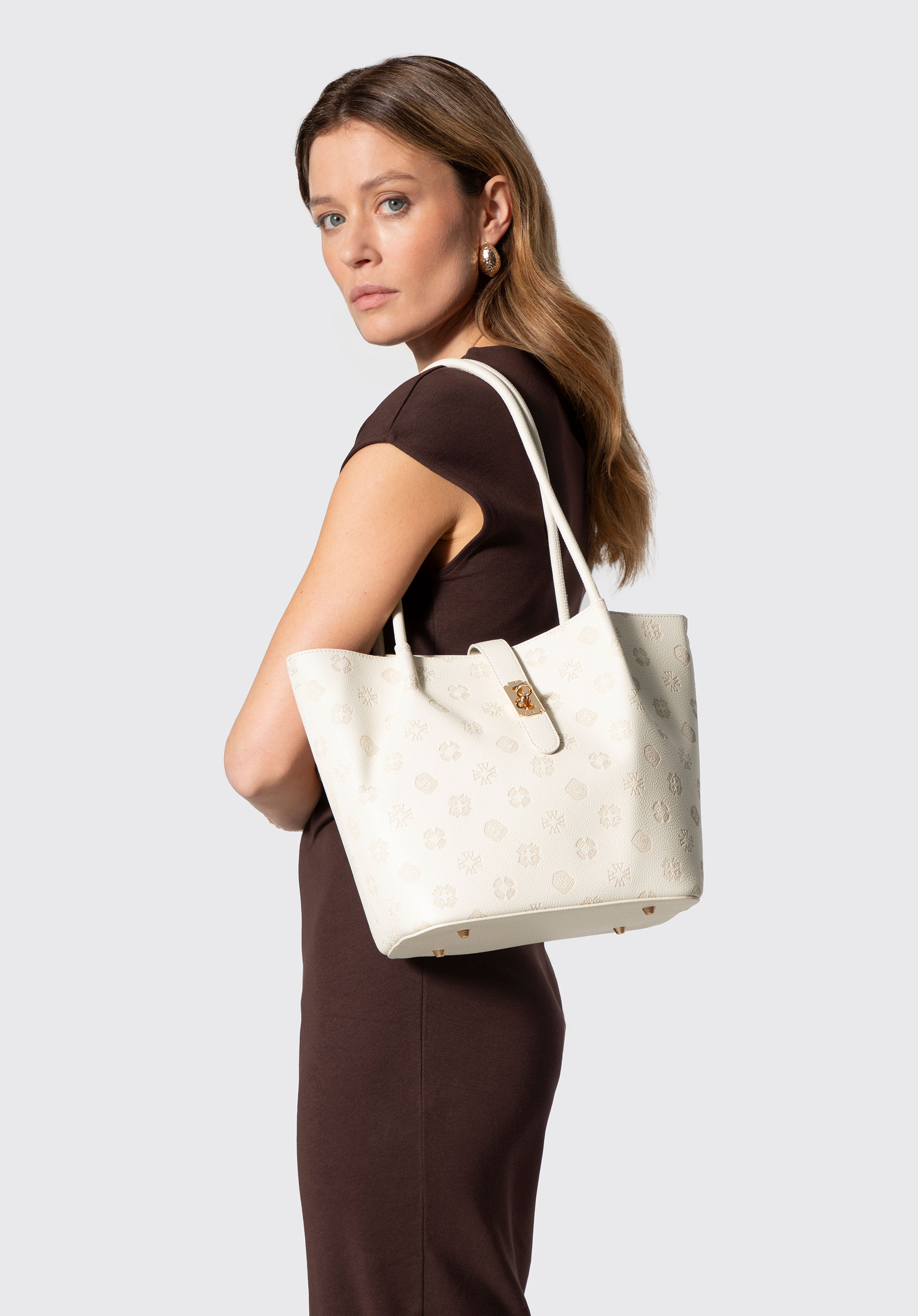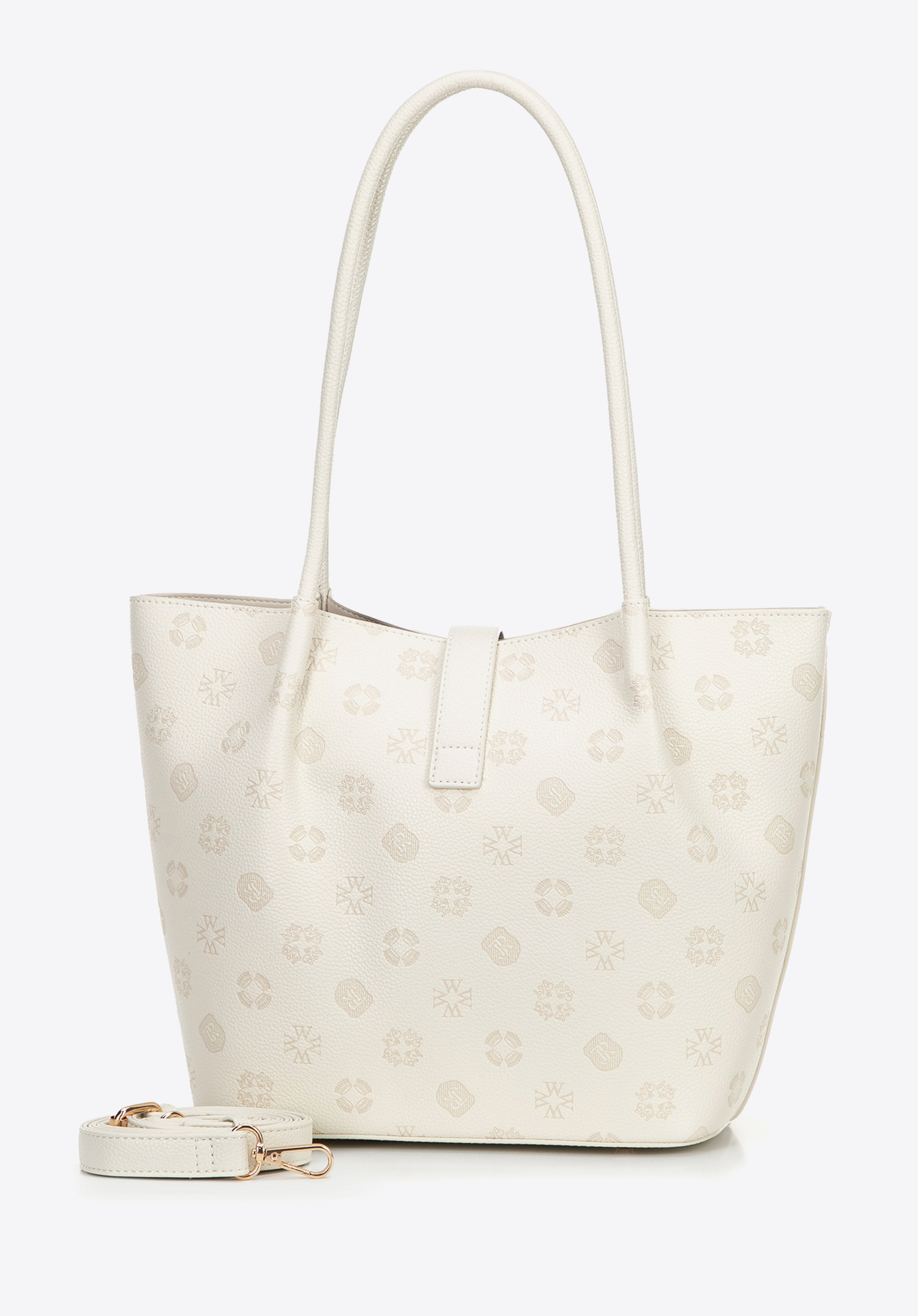 Dacă sunteți în căutarea unei geantă de mână care să atragă atenția și să fie totodată practică, această geantă tote cu textură embosată cu monogramă vă va satisface așteptările. Fabricată din piele ecologică de înaltă calitate, ușor de întreținut, impresionează prin silueta sa modernă și detaliile rafinate. Geanta se fixează cu o curea cu fermoar , adăugând eleganță și protejând conținutul. În interior, veți găsi o husă practică, detașabilă , cu fermoar și capsă - perfectă pentru telefon, chei sau cosmetice. Trei buzunare (dintre care unul cu fermoar) ajută la organizarea tuturor lucrurilor.