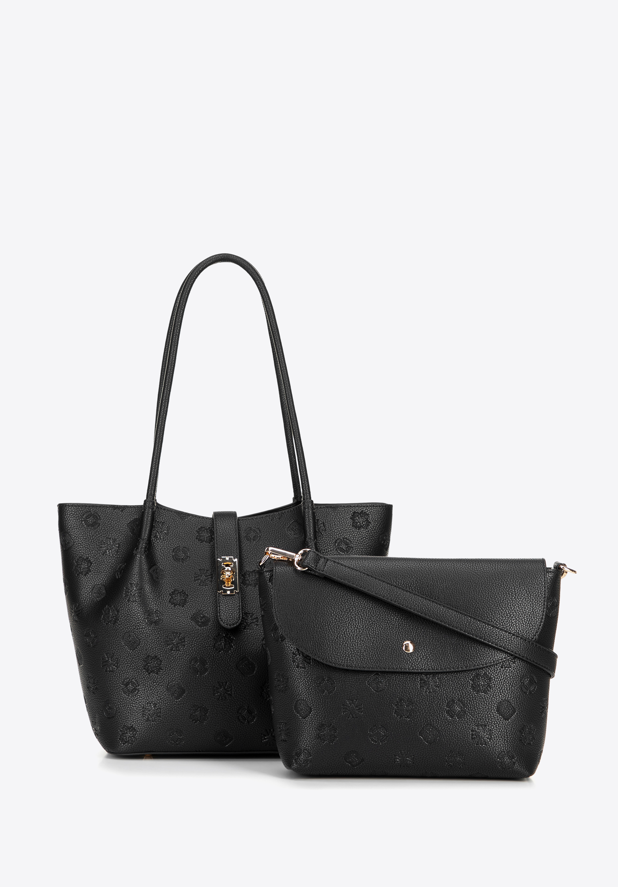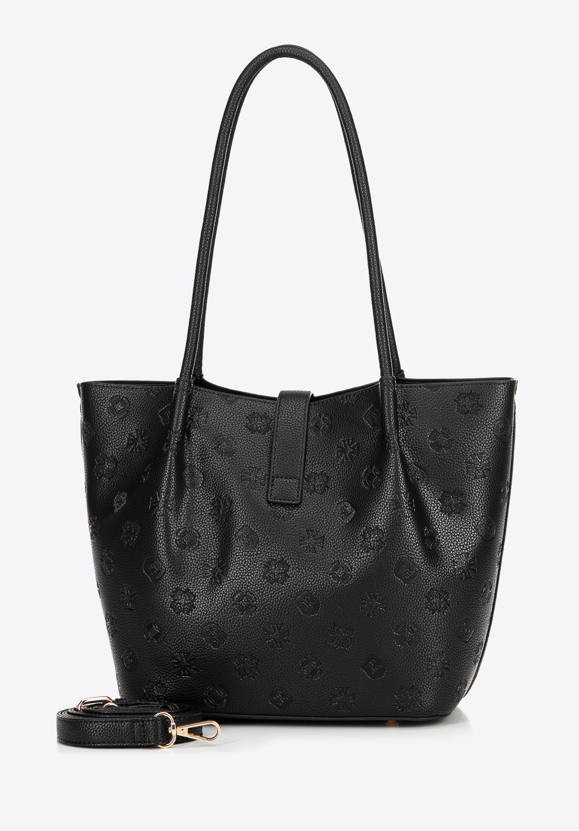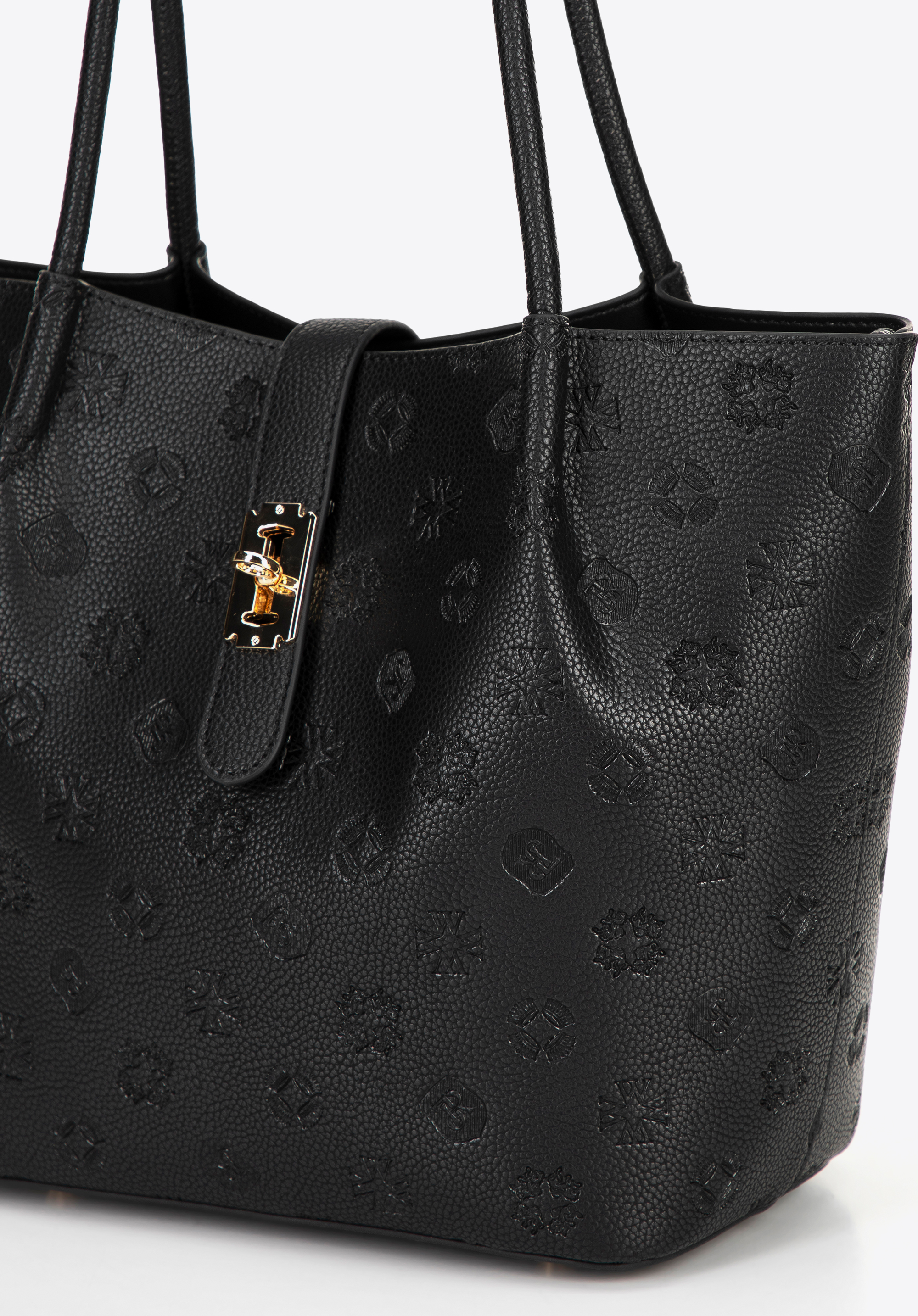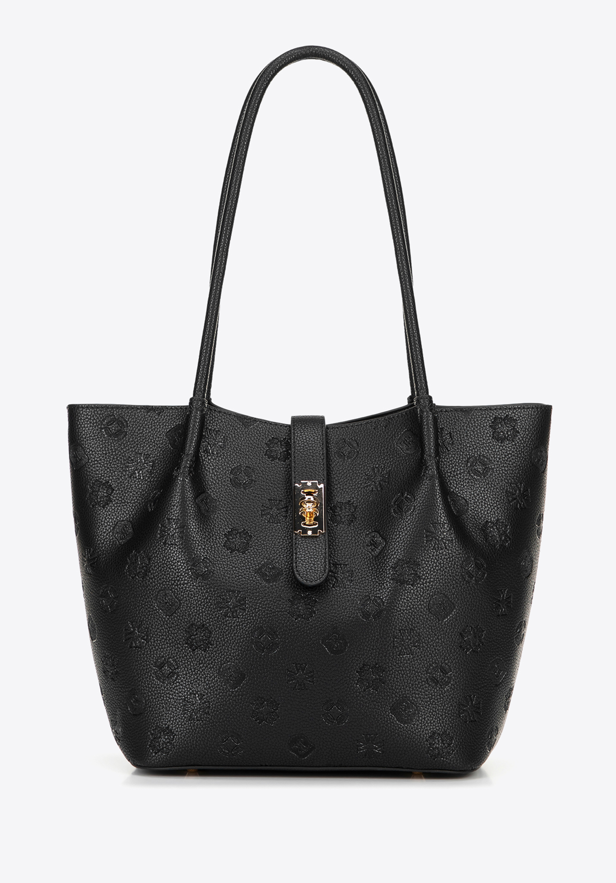 Dacă sunteți în căutarea unei geantă de mână care să atragă atenția și să fie totodată practică, această geantă tote cu textură embosată cu monogramă vă va satisface așteptările. Fabricată din piele ecologică de înaltă calitate, ușor de întreținut, impresionează prin silueta sa modernă și detaliile rafinate. Geanta se fixează cu o curea cu fermoar , adăugând eleganță și protejând conținutul. În interior, veți găsi o husă practică, detașabilă , cu fermoar și capsă - perfectă pentru telefon, chei sau cosmetice. Trei buzunare (dintre care unul cu fermoar) ajută la organizarea tuturor lucrurilor.