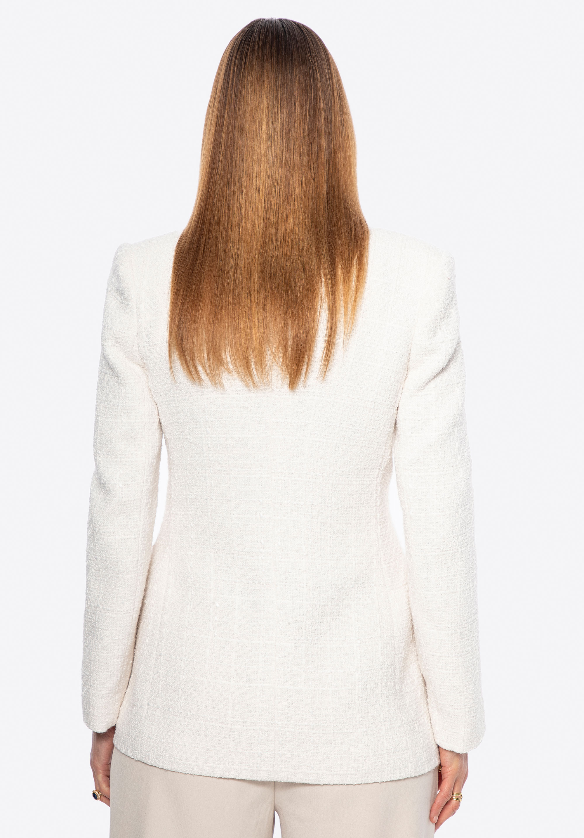 Sfatul nostru: Creează un look de seară impecabil, combinând sacoul cu o geantă crossbody delicată, cu lanț, și pantofi stiletto clasici. Pentru un stil mai casual, optează pentru o pereche simplă de pantofi cu toc plat și o geantă de umăr modernă – eleganță de zi cu zi în cea mai bună formă.