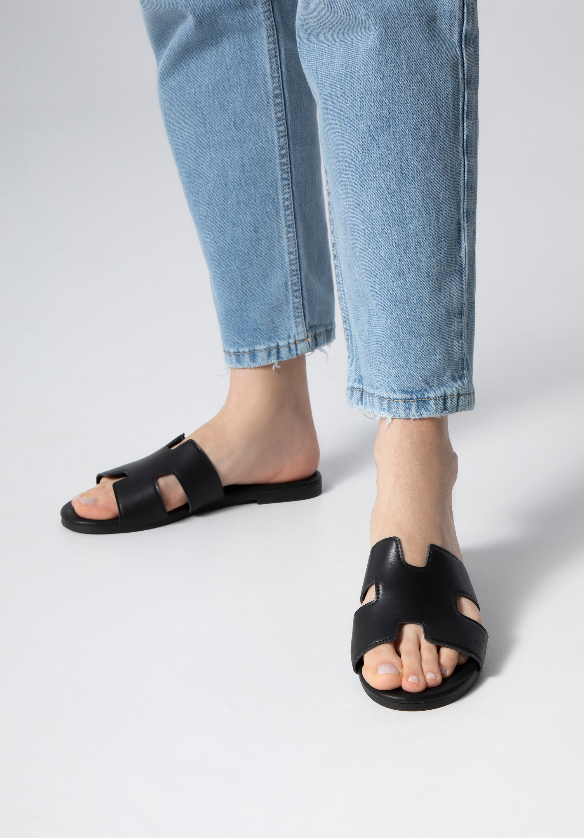 Aceste sandale de damă vor completa stilul tău de vară. Sunt confectionate din piele ecologică de înaltă calitate. Decuparea geometrică în forma literei „H” va ține piciorul stabil și îl va sublinia frumos. Șlapii sunt usori si îi poți încadra cu ușurință în valiza ta de vacanță. Vor arăta grozav cu o rochie de vară, pantaloni scurți și un tricou. Șlapii de damă cu decuparea geometrică sunt un accesoriu la modă care merită să fie în garderoba ta.