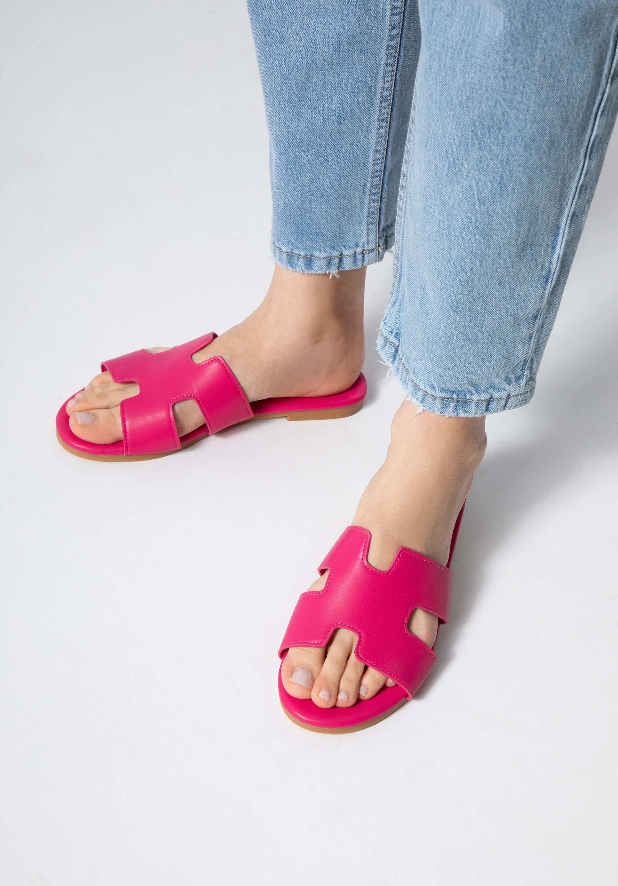 Aceste sandale de damă vor completa stilul tău de vară. Sunt confectionate din piele ecologică de înaltă calitate. Decuparea geometrică în forma literei „H” va ține piciorul stabil și îl va sublinia frumos. Șlapii sunt usori si îi poți încadra cu ușurință în valiza ta de vacanță. Vor arăta grozav cu o rochie de vară, pantaloni scurți și un tricou. Șlapii de damă cu decuparea geometrică sunt un accesoriu la modă care merită să fie în garderoba ta.