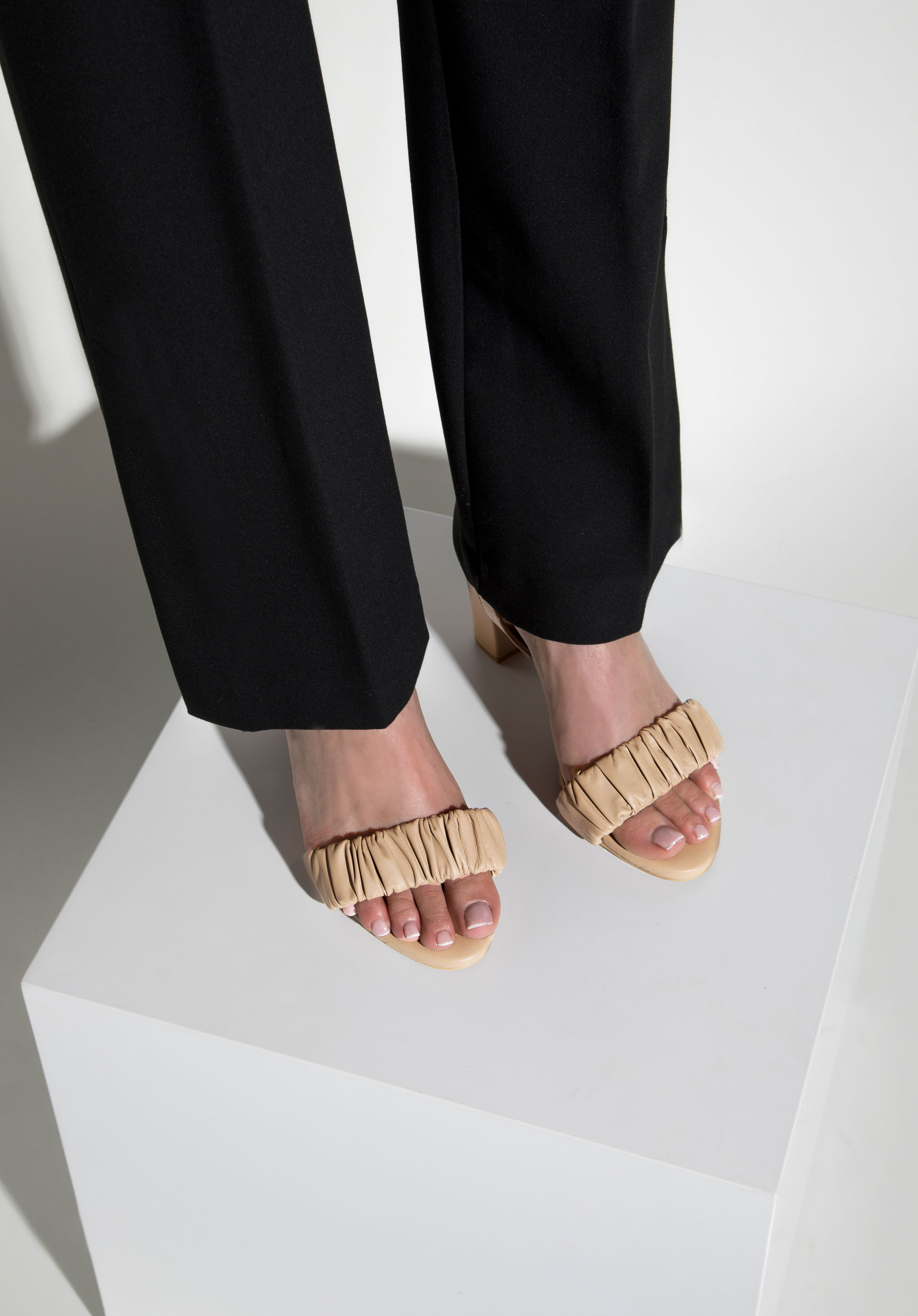 Aceste sandale elegante de dama sunt un accesoriu unic pentru orice ocazie festiva. Au fost fabricate în Polonia din piele naturală de înaltă calitate, datorită căreia vă vor servi mulți ani. Fața șifonată este un decor original și foarte la modă. Bretelele subțiri cu cataramă sunt practice și în același timp delicate, astfel încât îți vor menține confortabil piciorul pe loc. Tocul este destul de înalt , dar confortabil: îți va subțire silueta frumos și îți va permite să mergi în acești pantofi multe ore. Puteți purta acest model modelat cu o rochie aerisită și blugi cu jachetă. Sandalele de damă din piele șifonată cu stâlp sunt un accesoriu feminin pentru orice ocazie specială.