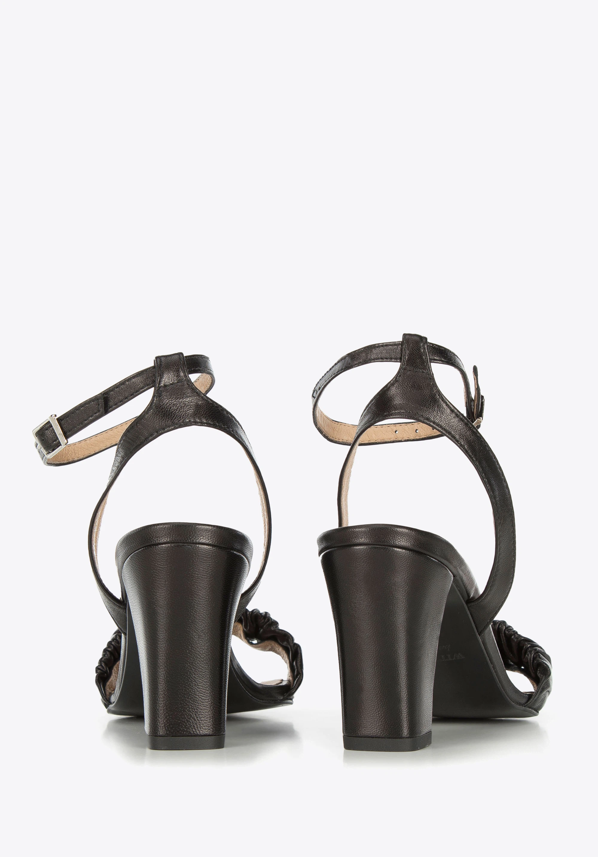 Aceste sandale elegante de dama sunt un accesoriu unic pentru orice ocazie festiva. Au fost fabricate în Polonia din piele naturală de înaltă calitate, datorită căreia vă vor servi mulți ani. Fața șifonată este un decor original și foarte la modă. Bretelele subțiri cu cataramă sunt practice și în același timp delicate, astfel încât îți vor menține confortabil piciorul pe loc. Tocul este destul de înalt , dar confortabil: îți va subțire silueta frumos și îți va permite să mergi în acești pantofi multe ore. Puteți purta acest model modelat cu o rochie aerisită și blugi cu jachetă. Sandalele de damă din piele șifonată cu stâlp sunt un accesoriu feminin pentru orice ocazie specială.