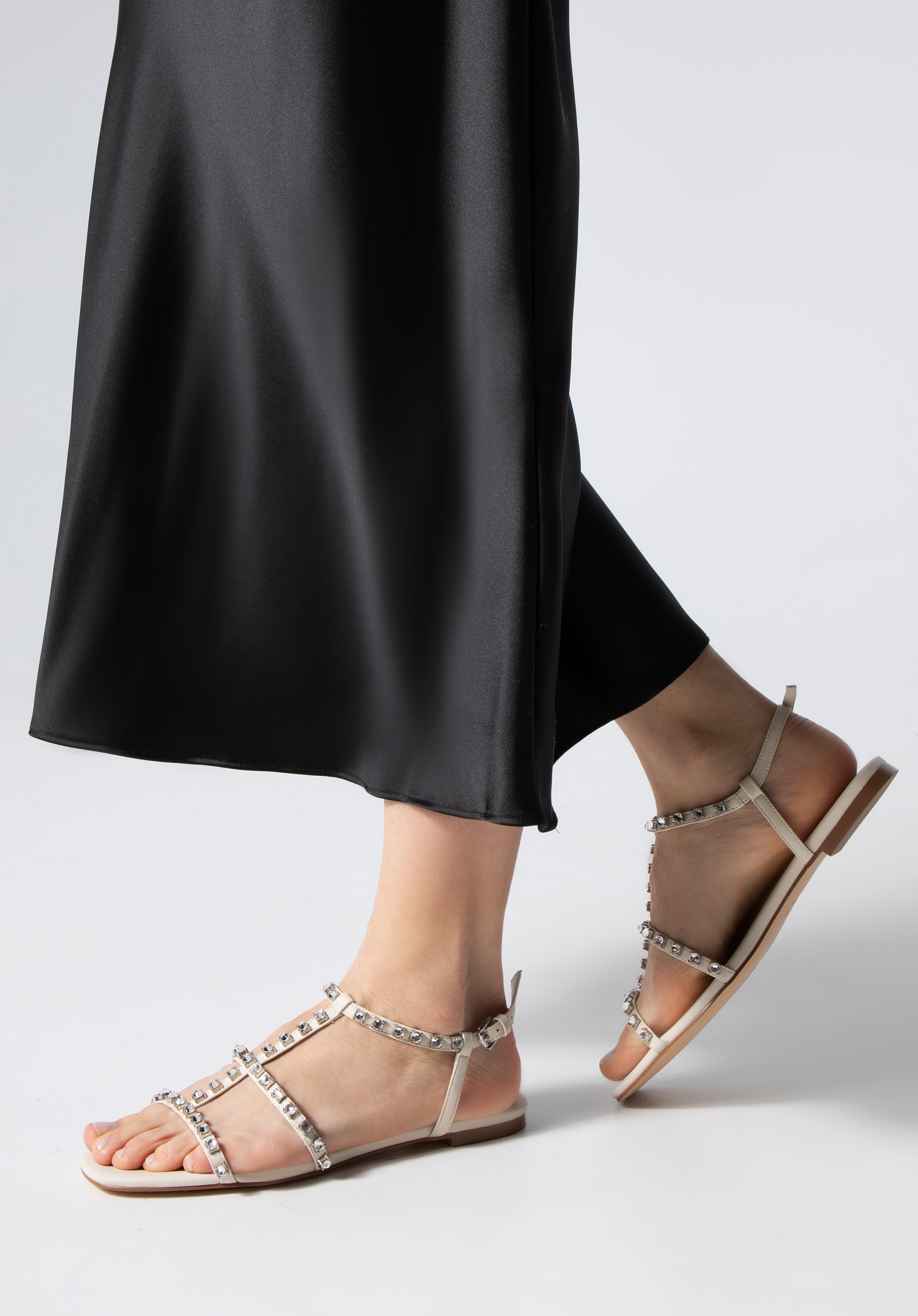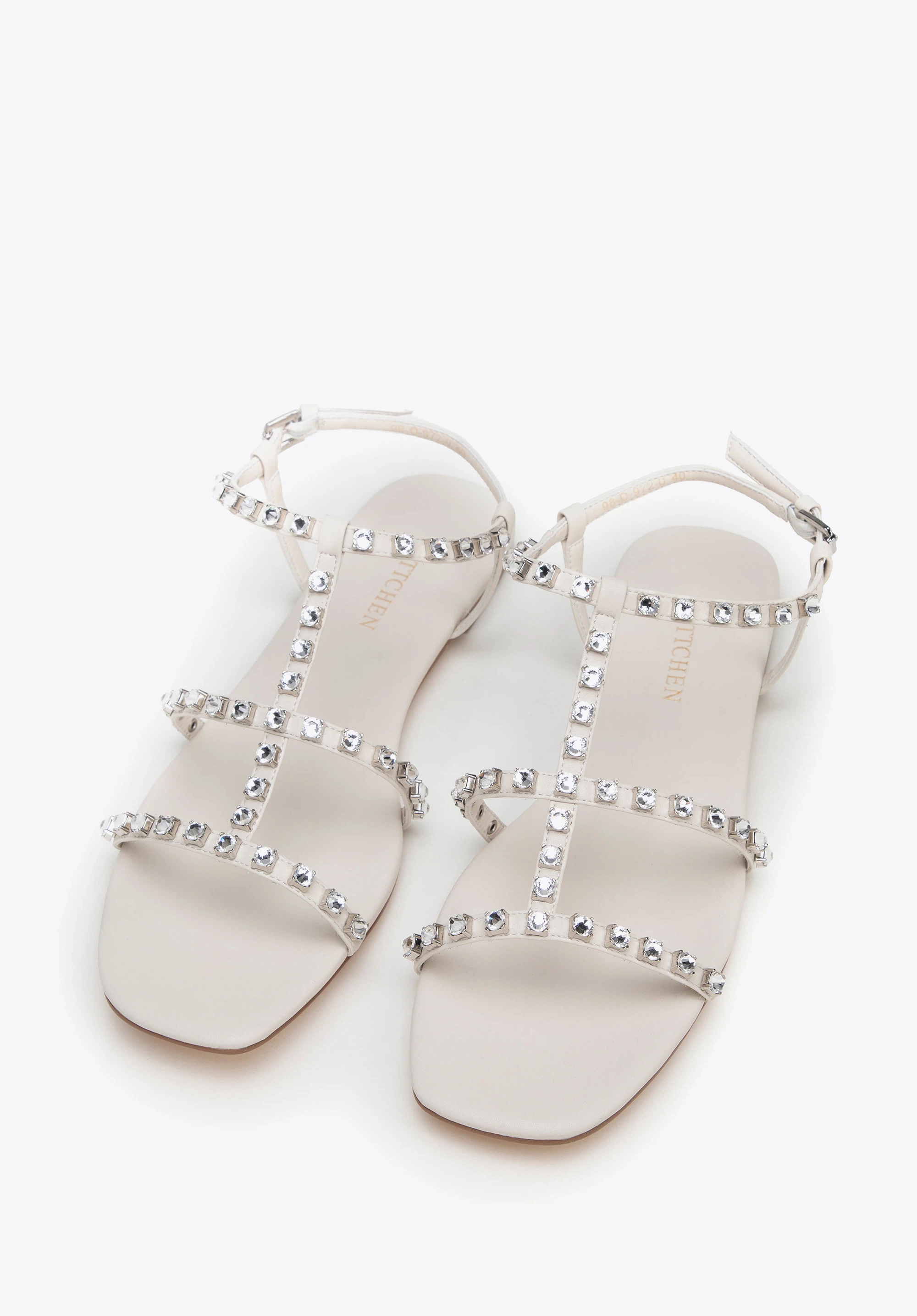 Sandale de dama impodobite cu cristale Culoare: crem