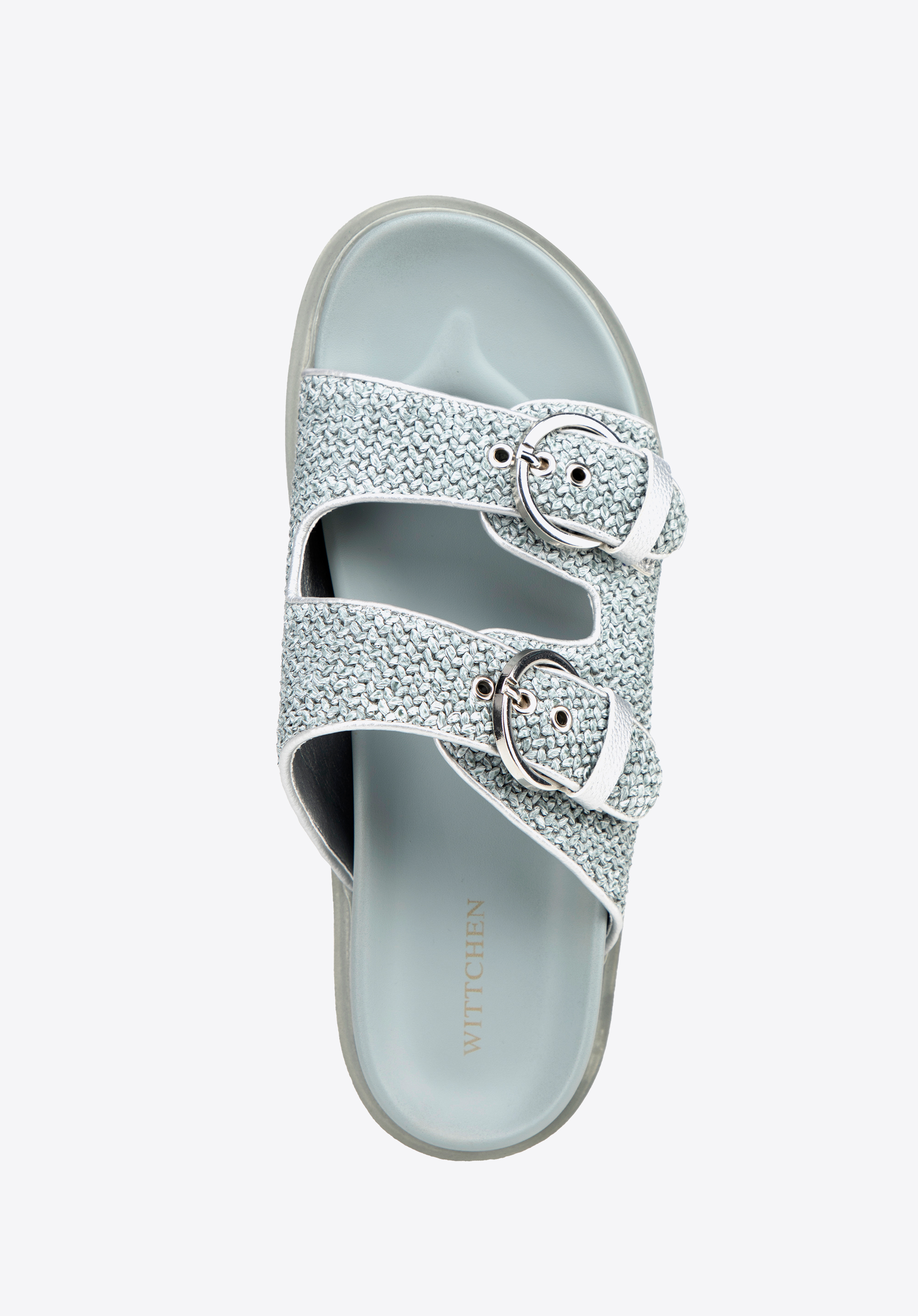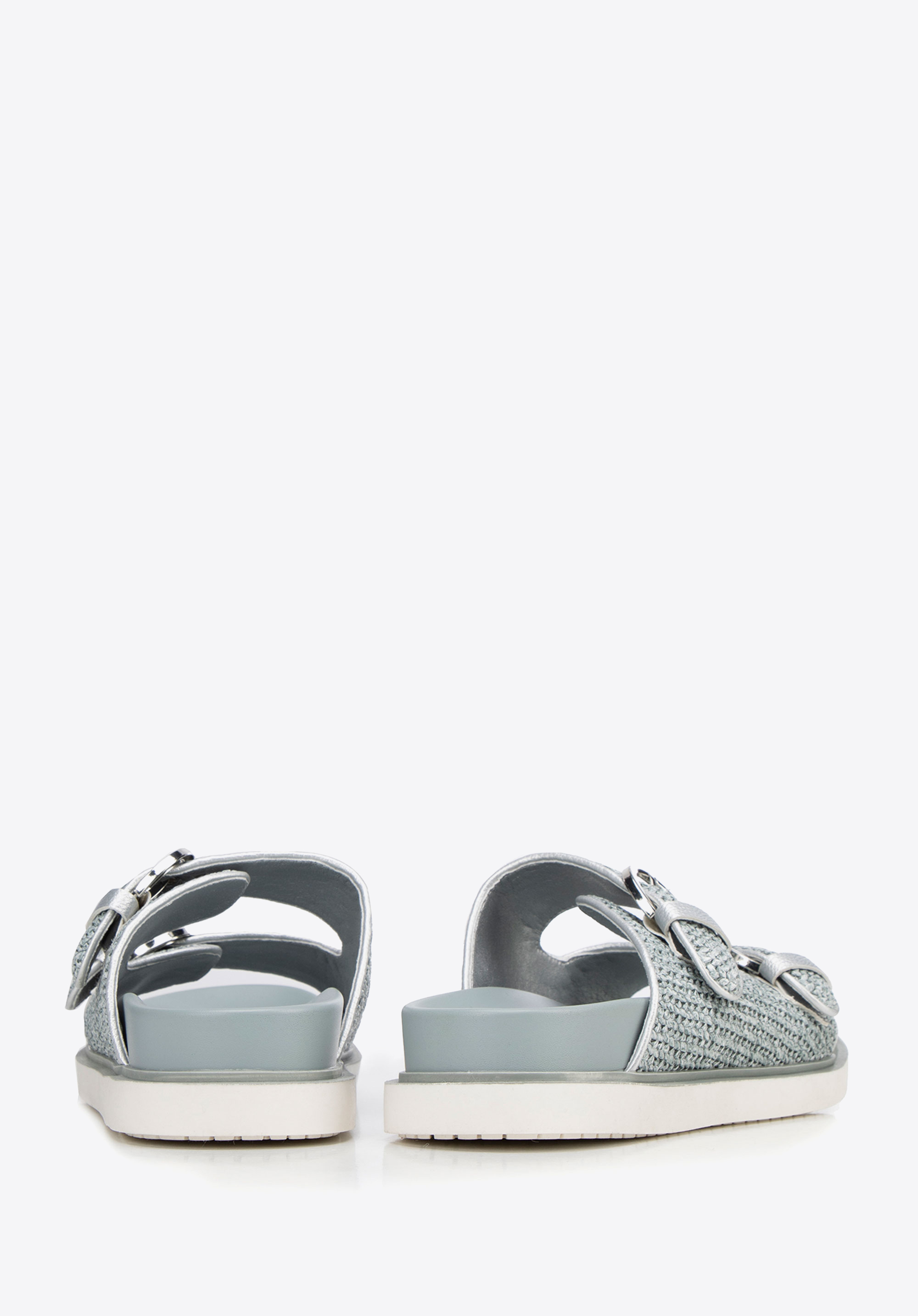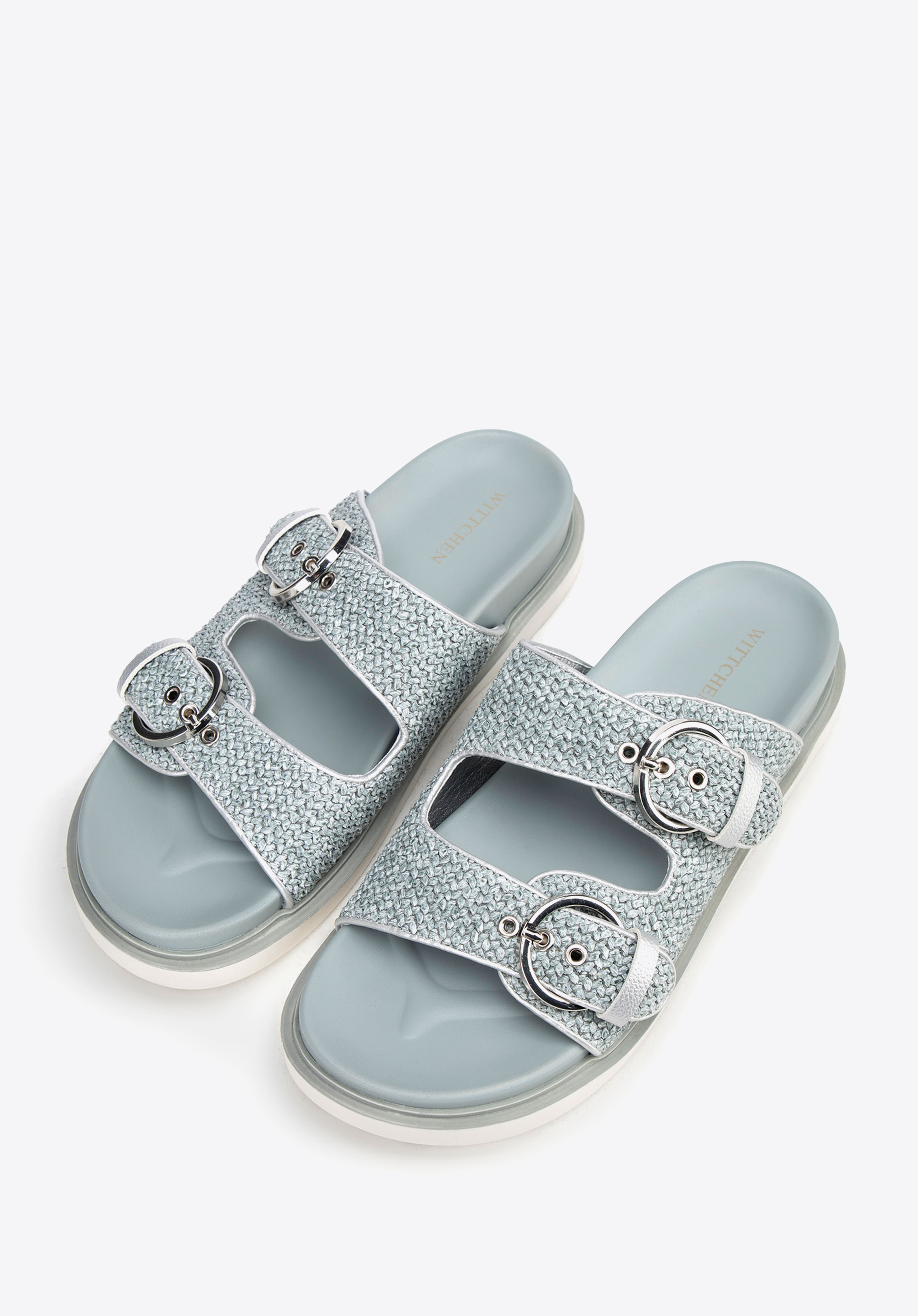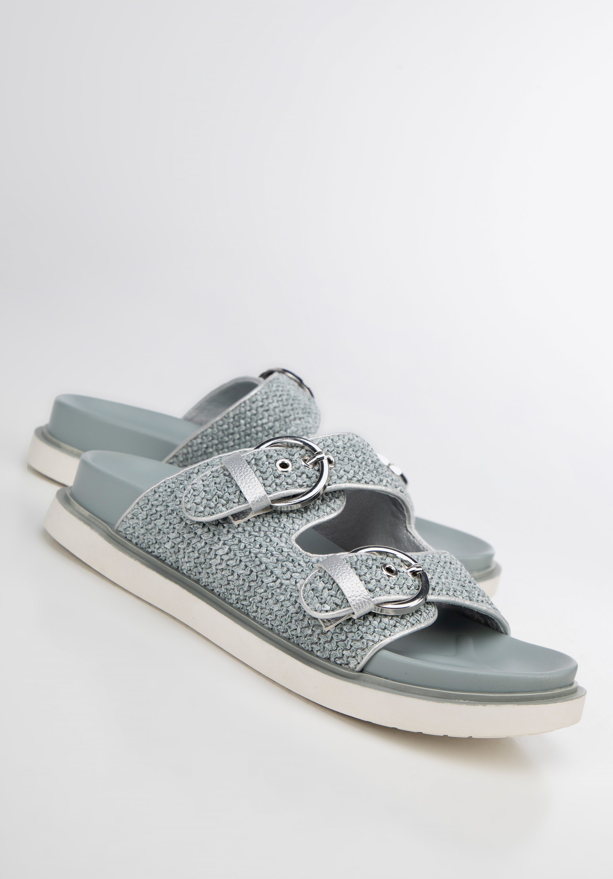 Aceste sandale de damă sunt alegerea perfectă pentru zilele caniculare în care confortul şi stilul contează cel mai mult. Fabricate din țesătură de paie artificială, oferă o senzație de ușurință și un farmec boho unic. Două curele reglabile cu catarame permit o potrivire perfectă, iar vârful în formă de migdală adaugă libertate de mișcare. Căptușeala moale și branțul din imitație de piele asigură confort la fiecare pas.