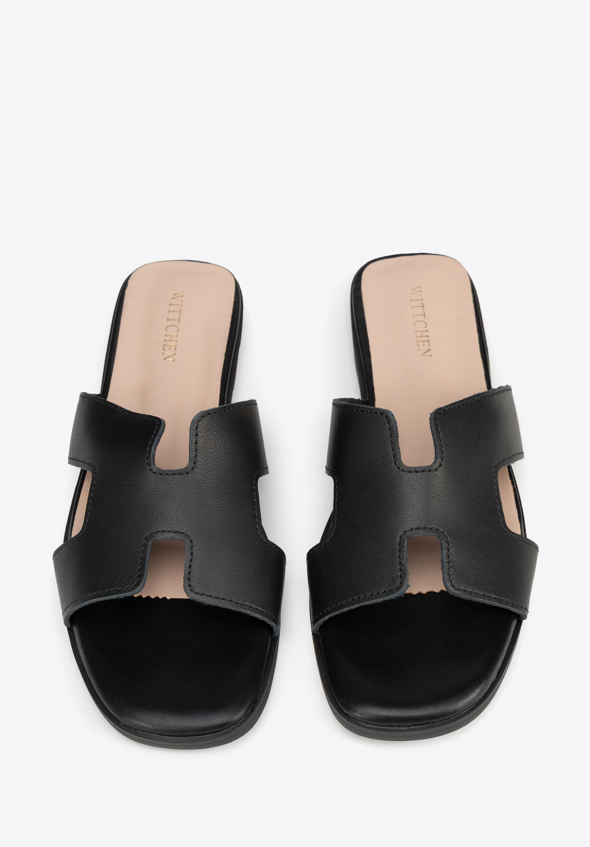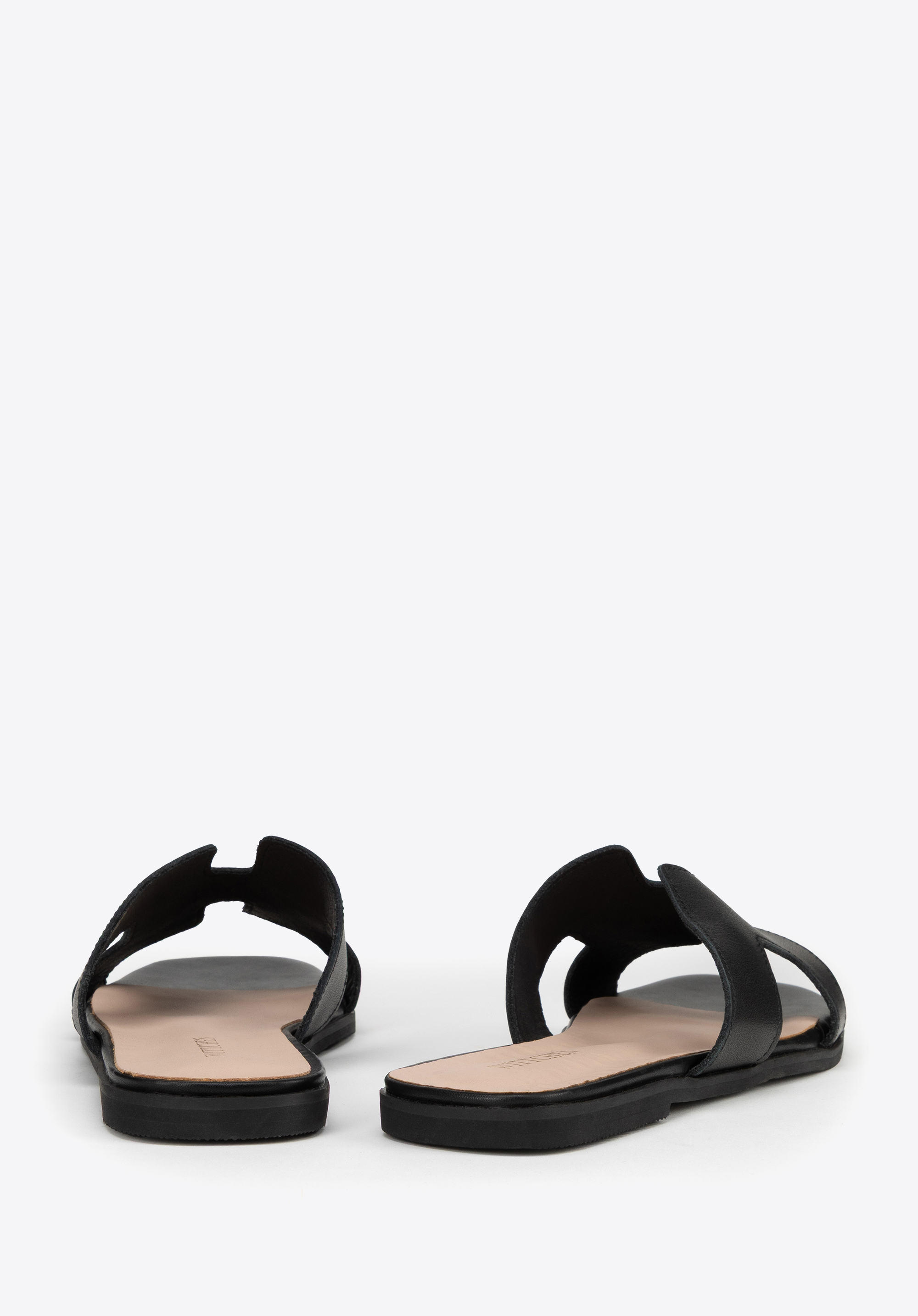 Lux pur și confort. Acești papuci excepționali, confecționați din cea mai bună piele naturală , combină eleganța atemporală cu designul modern. Decupajul distinctiv în formă de H adaugă o notă elegantă, expunând subtil piciorul și creând un efect de slăbire. Pielea moale, dar durabilă, învăluie picioarele în confort, asigurând o experiență de purtare de neegalat, în timp ce măiestria meticuloasă evidențiază atractivitatea lor exclusivă.