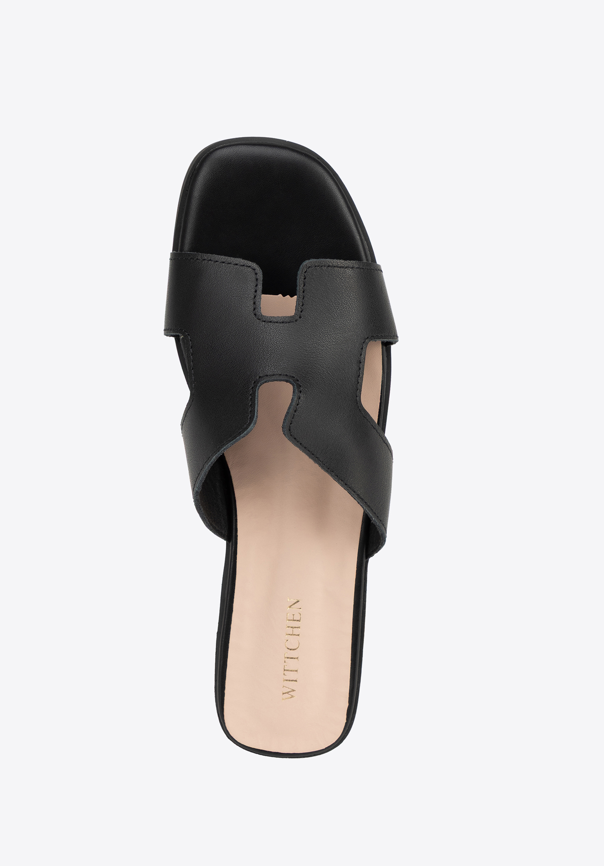- Decupaj în formă de H: un detaliu geometric care atrage atenția și adaugă o notă modernă pantofilor.