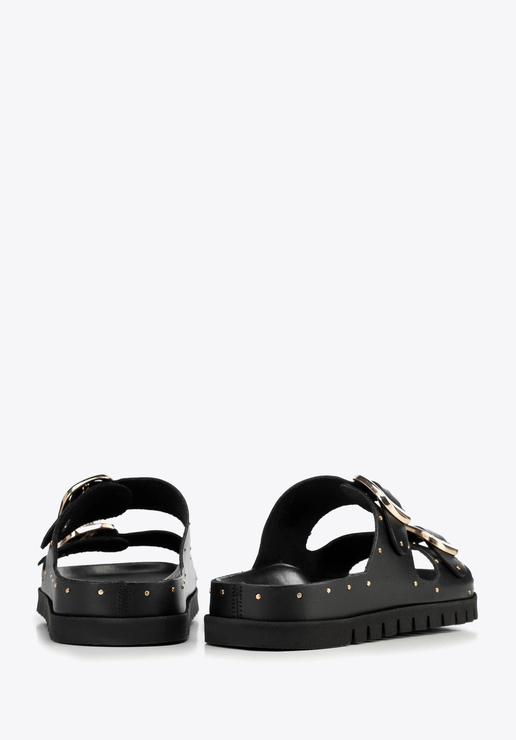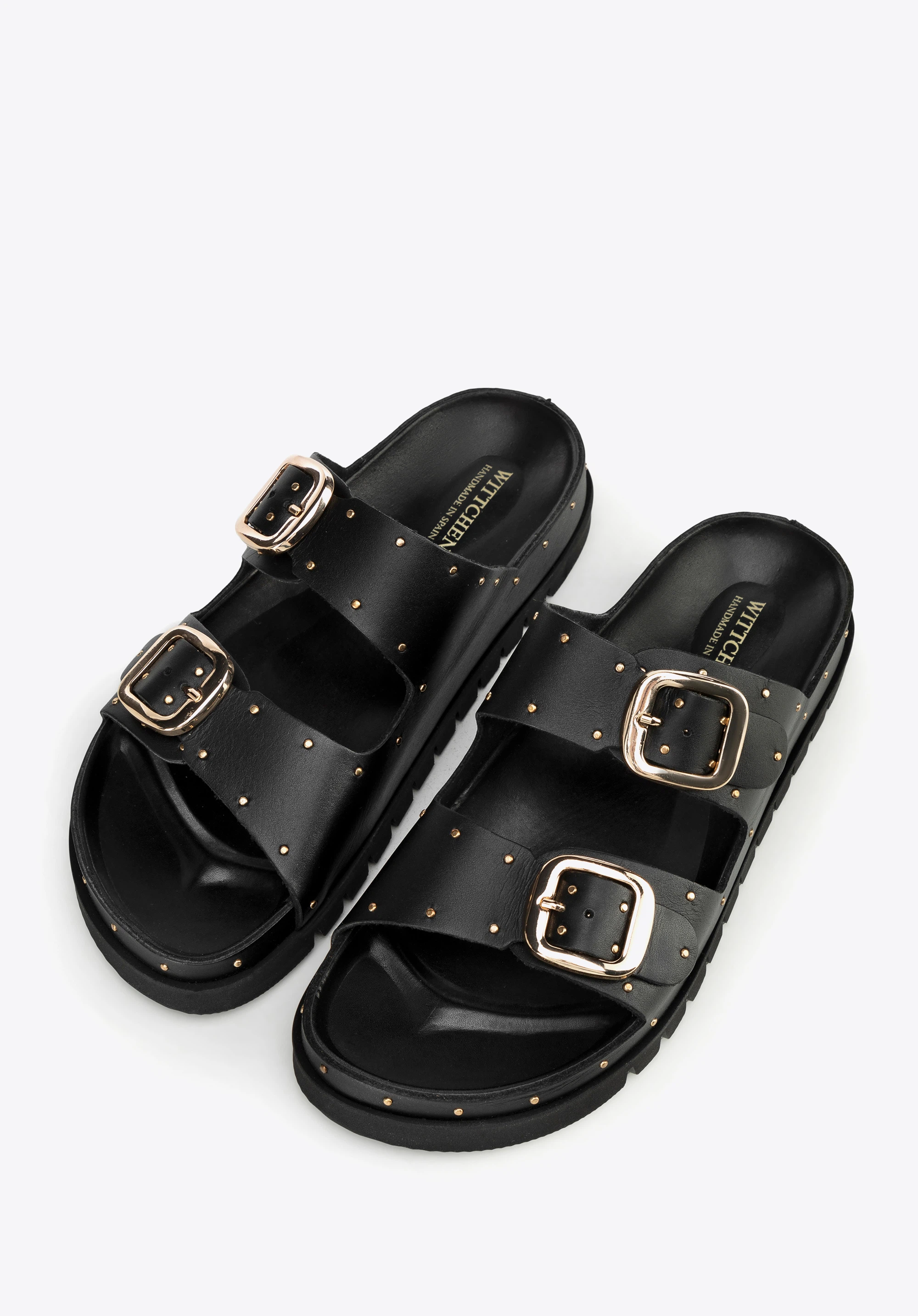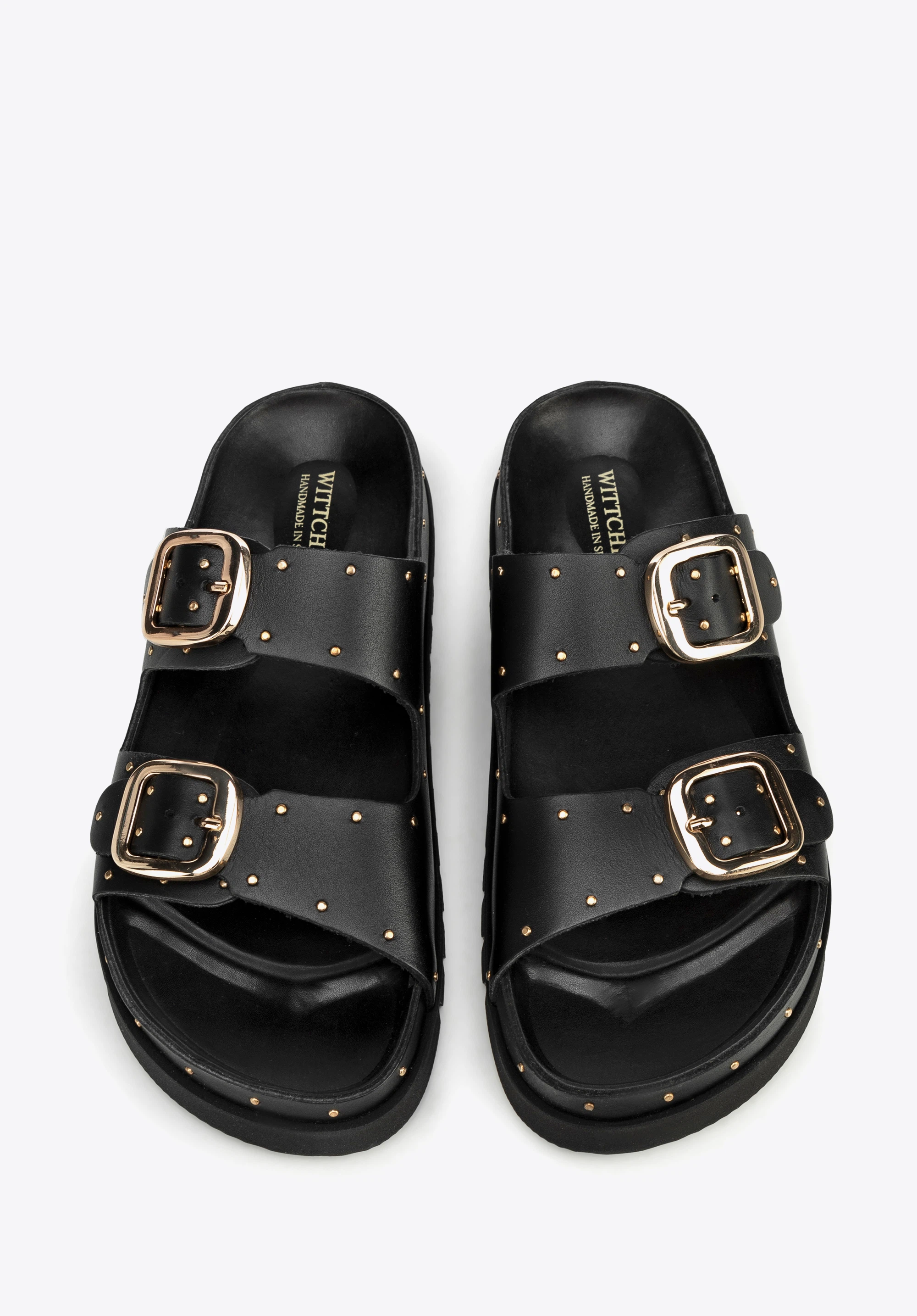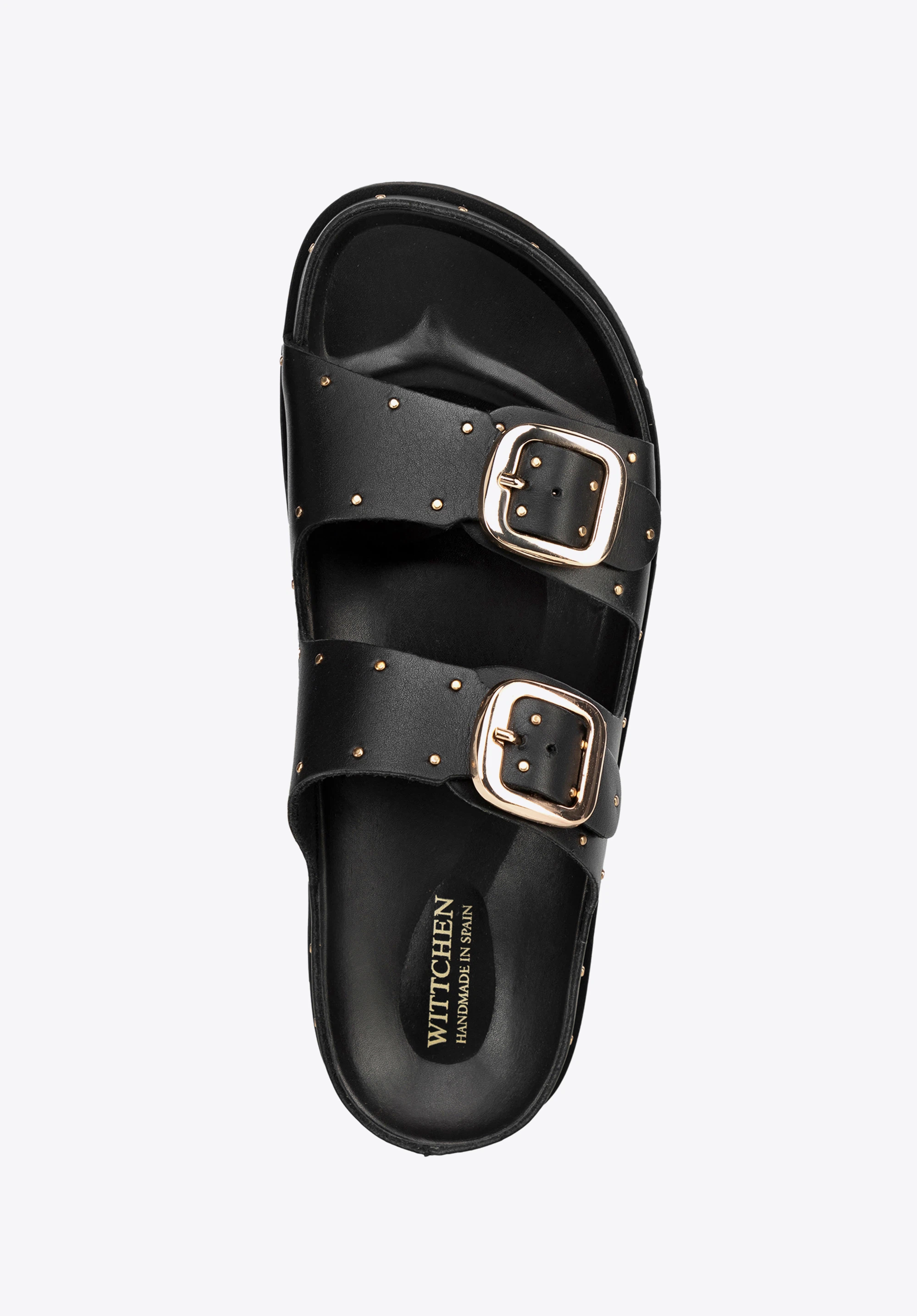 Ușoare, feminine și pline de caracter – aceste sandale de damă sunt alegerea perfectă pentru vară. Fabricate în Spania din piele naturală netedă , combină eleganța subtilă cu o senzație relaxată de vară. Designul lor unic este evidențiat de două bretele largi cu detalii metalice , adăugând o notă îndrăzneață. Cataramele reglabile asigură o potrivire perfectă, în timp ce construcția slip-on le face ușor de purtat.Vârful lîn formă de migdală creează o siluetă măgulitoare, iar căptușeala moale și branțul garantează confort pe tot parcursul zilei.
