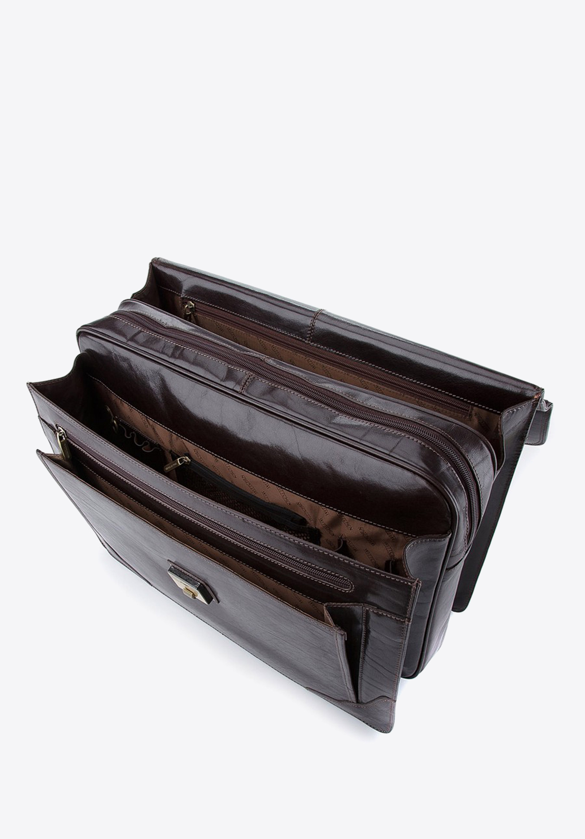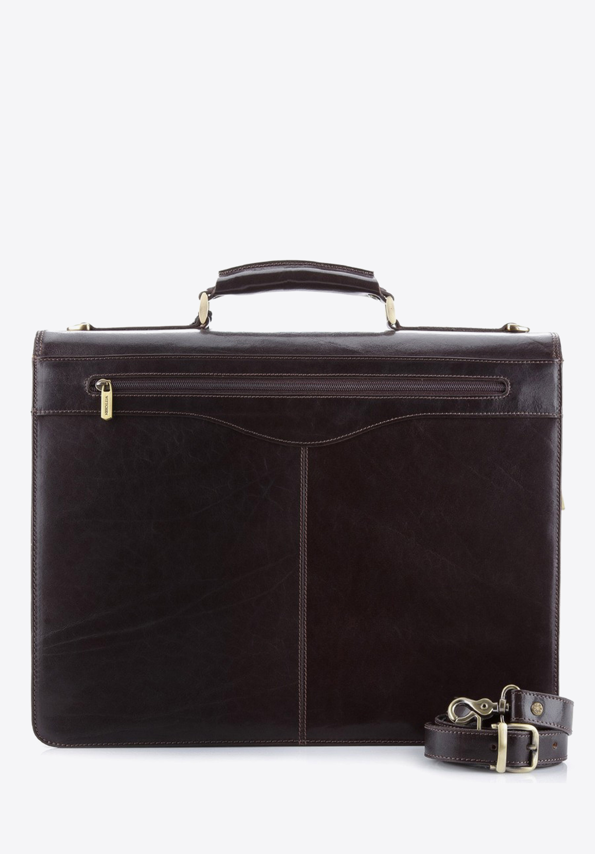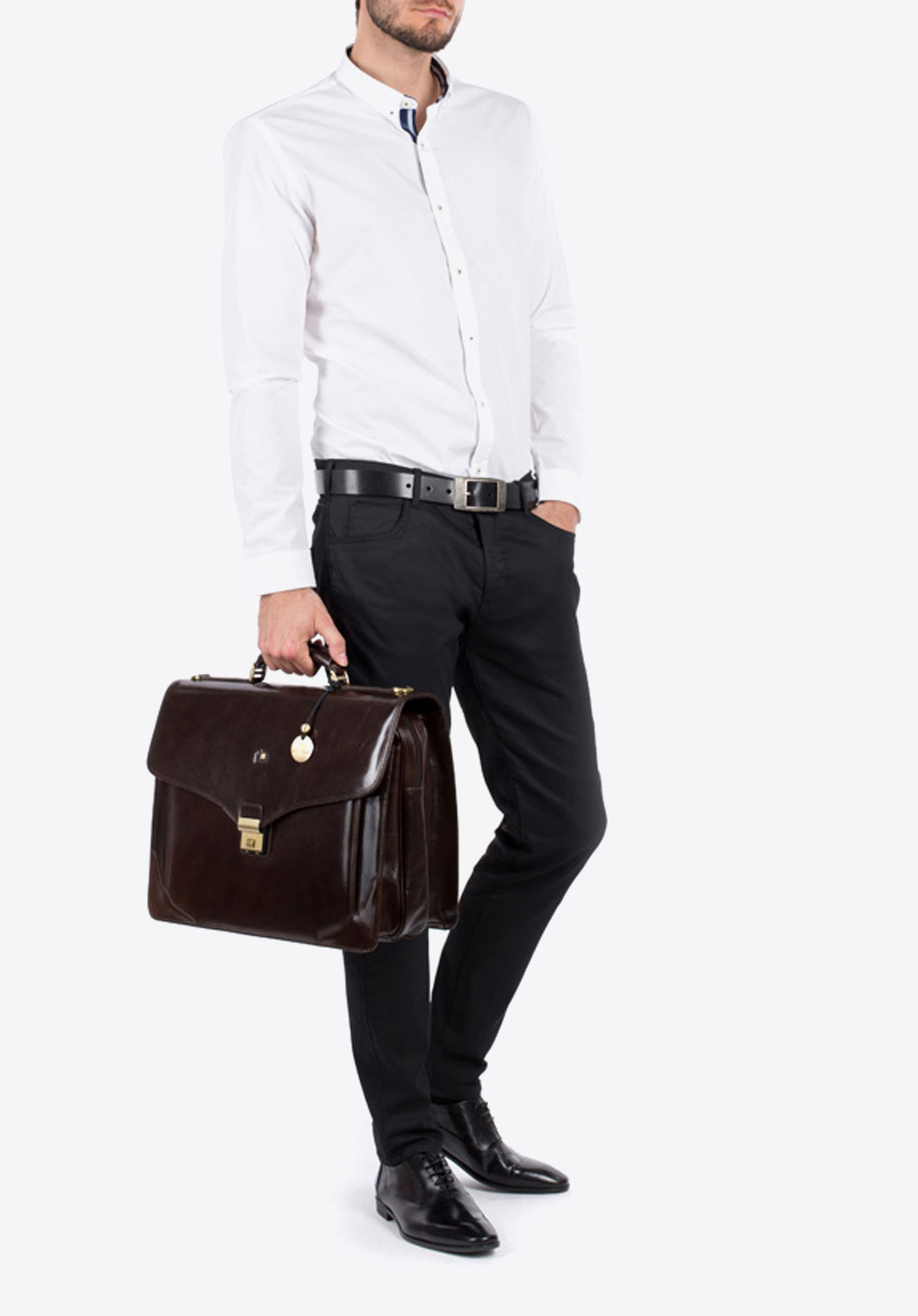 Servieta încăpătoare, fabricată dinpiele de vițel de cea mai înaltă calitate și caracterizată printr-o rezistență deosebită este un accesoriu elegant și plin de stil. Designul clasic al modelului combinat cu soluții inovatoare va satisface gusturile celor mai pretențioși bărbați.