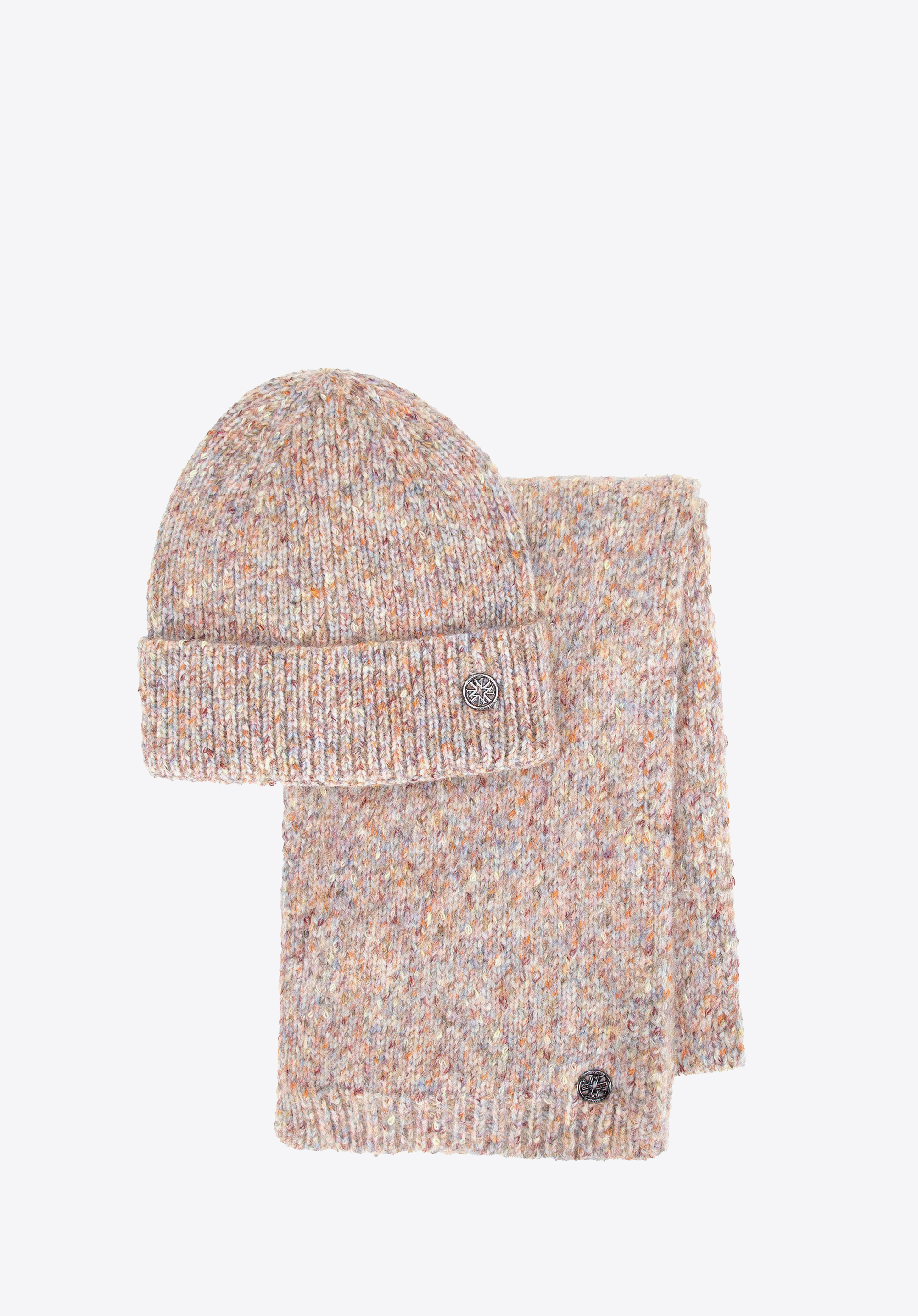 Cald, moale și multitonal – set de căciulă și eșarfă de iarnă cu branding subtil