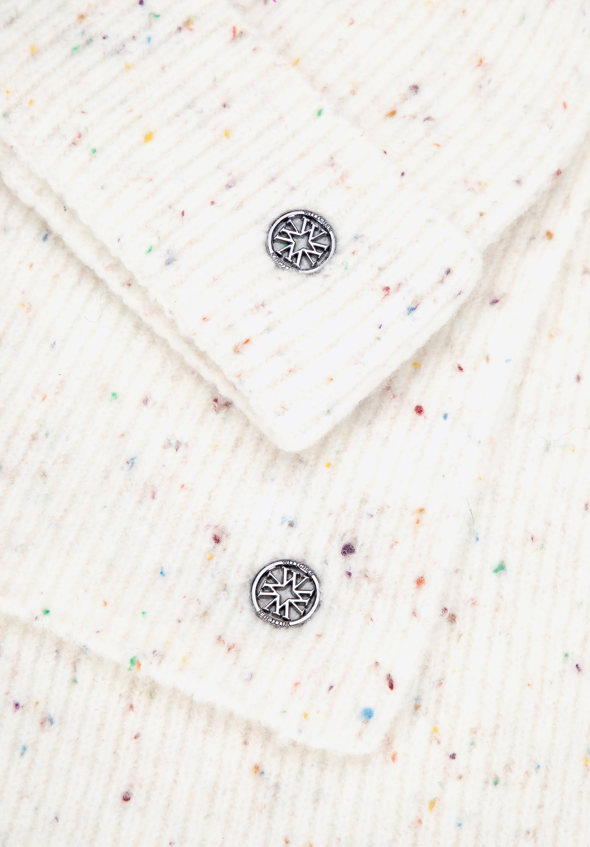 - Detalii subtile: Un mic logo al mărcii, atât pe pălărie, cât și pe eșarfă, adaugă un accent rafinat și discret.