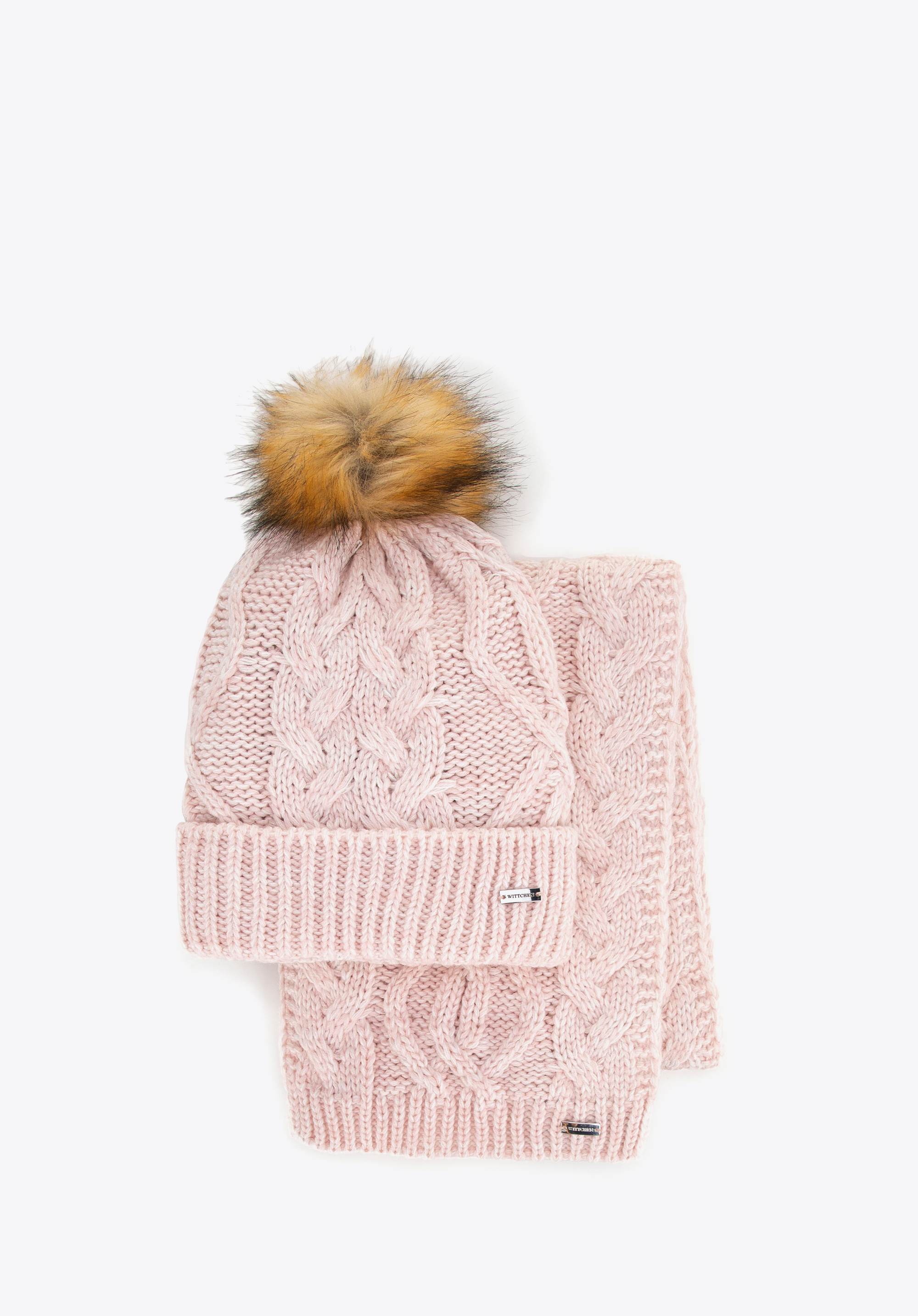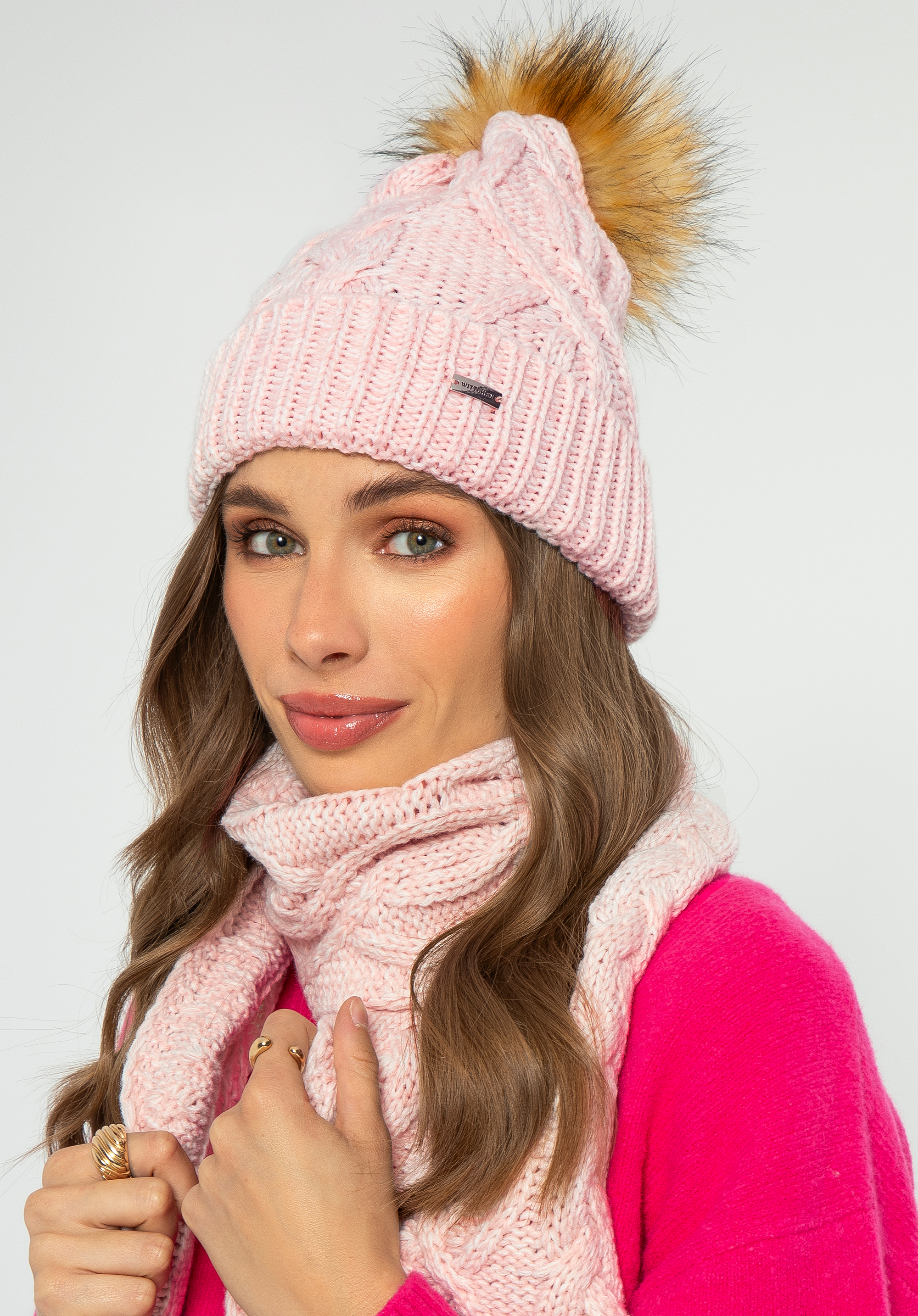Set de iarnă pentru femei cu țesătură în carouri Culoare: roz