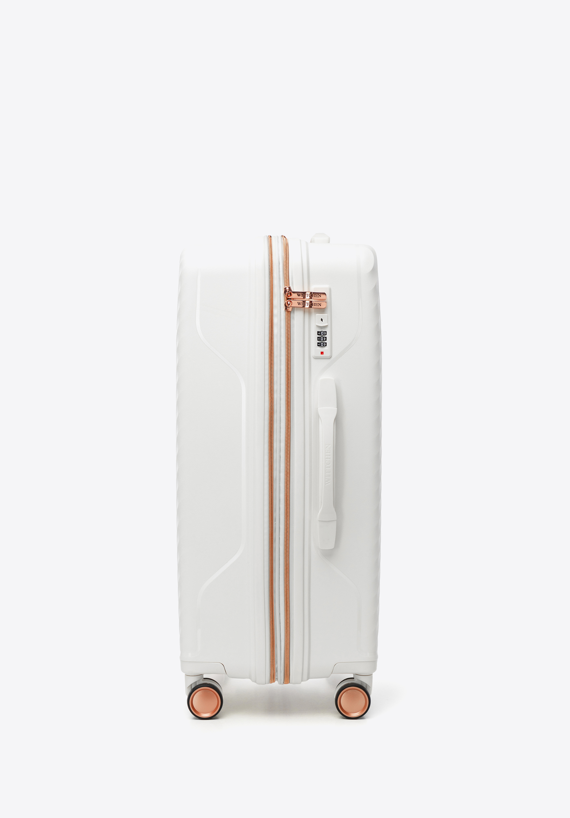 - Funcție extensibilă: Valizele medii și mari dispun de o extensie de 4 cm pentru spațiu suplimentar de ambalare.