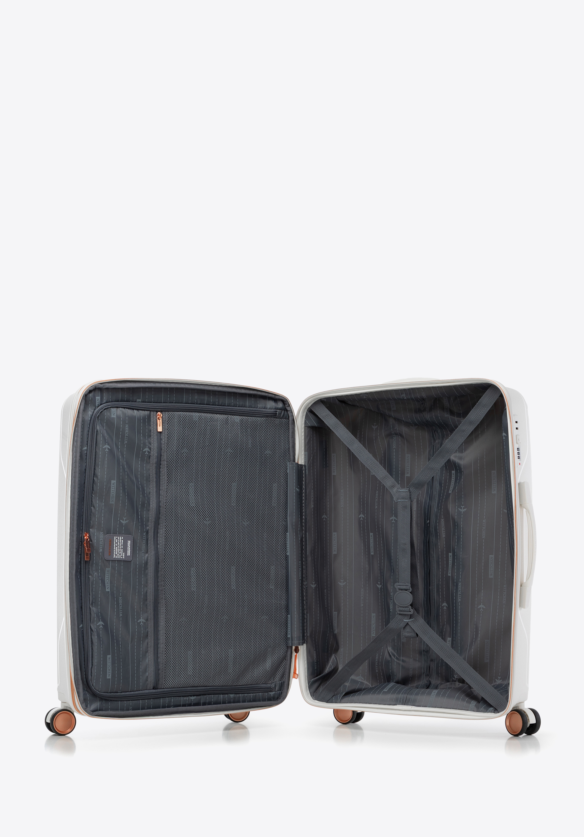 Indiferent de scopul călătoriei – escapadă de weekend, deplasare de afaceri sau vacanțe lungi – acest set de valize WITTCHEN din colecția WIN LINE se va descurca perfect. Trei dimensiuni (de cabină, medie și mare), construcție ușoară din polipropilenă, design elegant cu gravuri diagonale și interior practic cu funcție de extindere vor asigura confort și stil în orice călătorie.