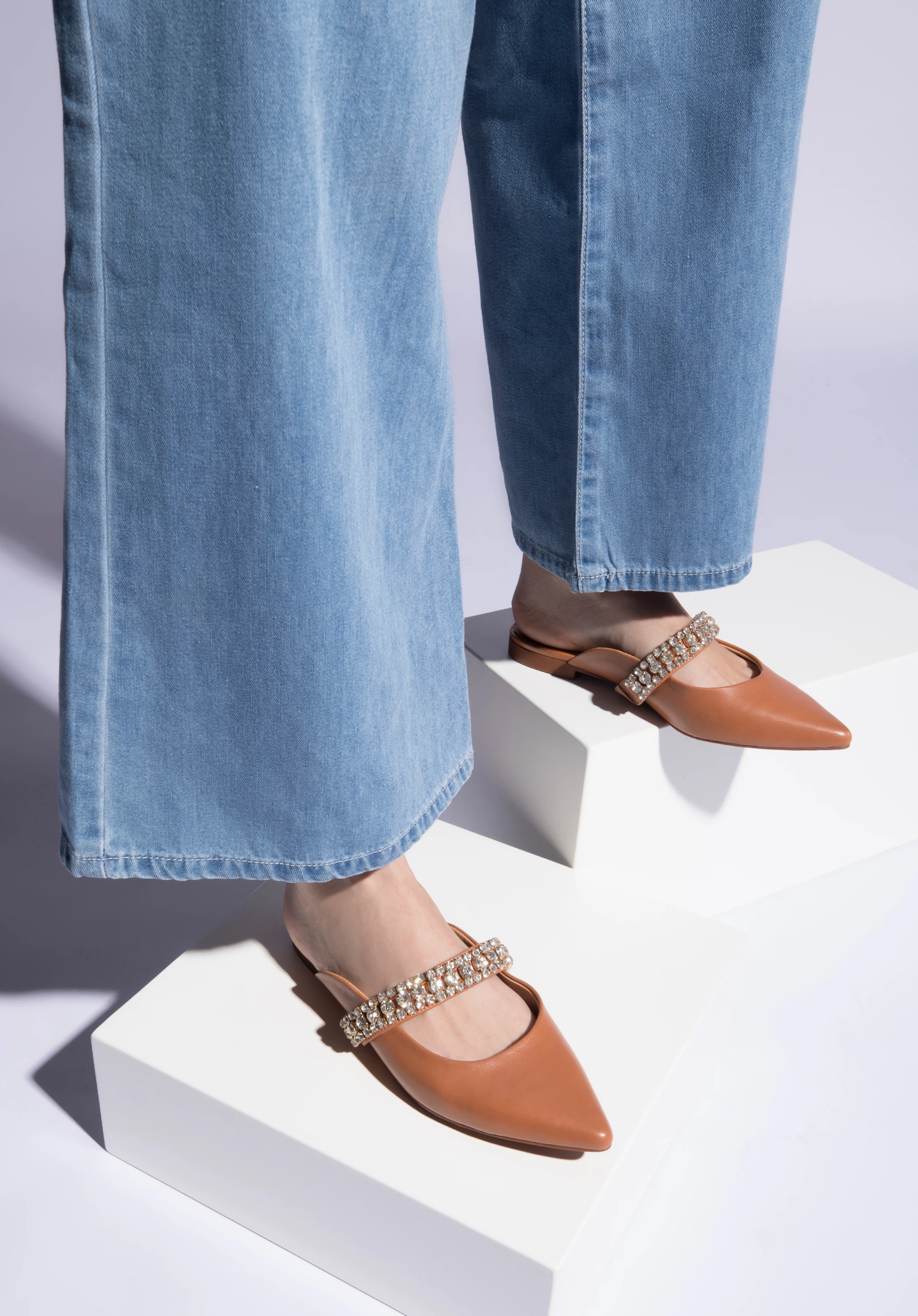 Șlapii de damă din piele turnată cu o curea lucioasă sunt un accesoriu deloc evident care va atrage mai mult de o privire.Vor arăta grozav cu rochie aerisită de vară, precum și cu o cămașă și pantaloni largi.