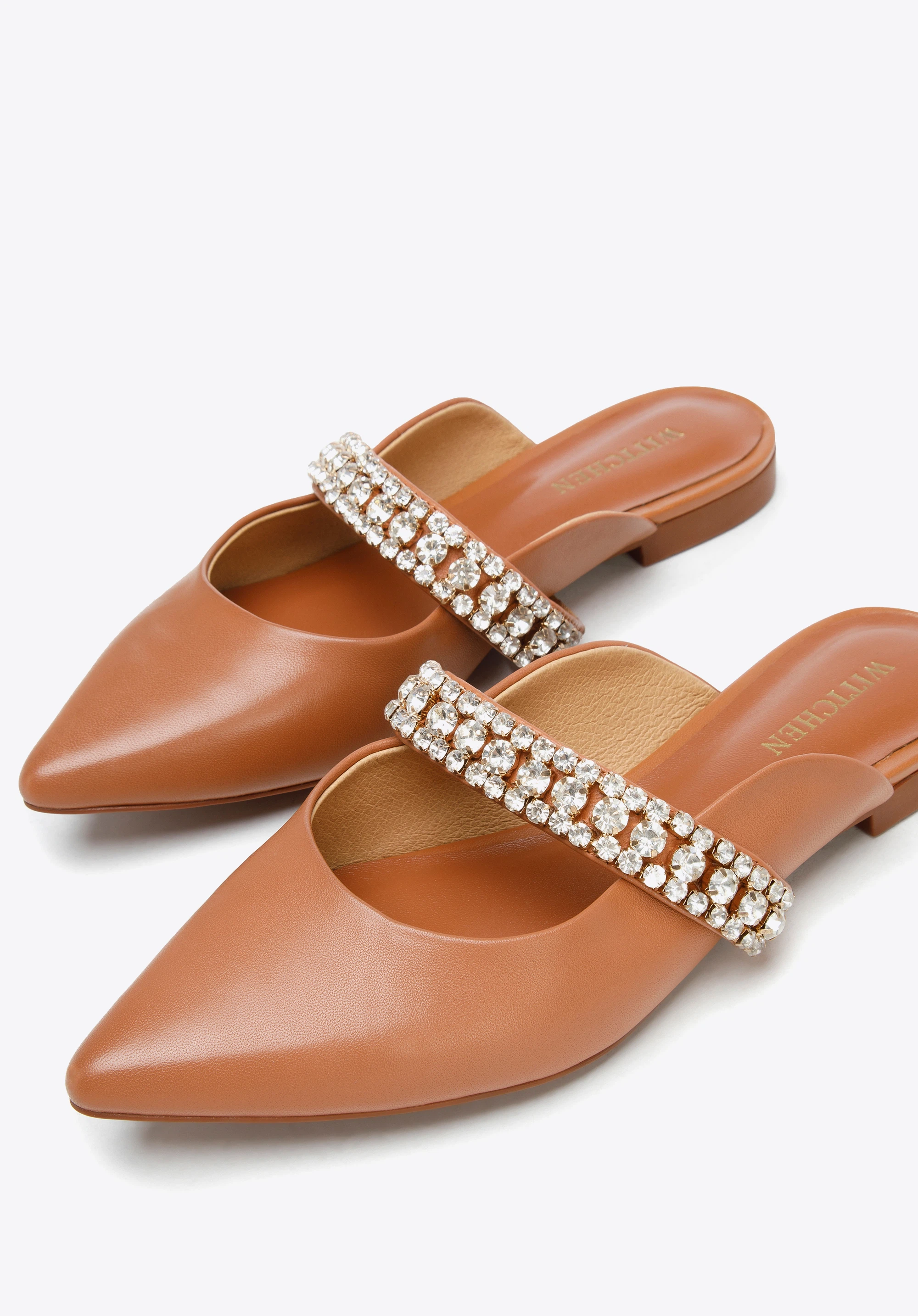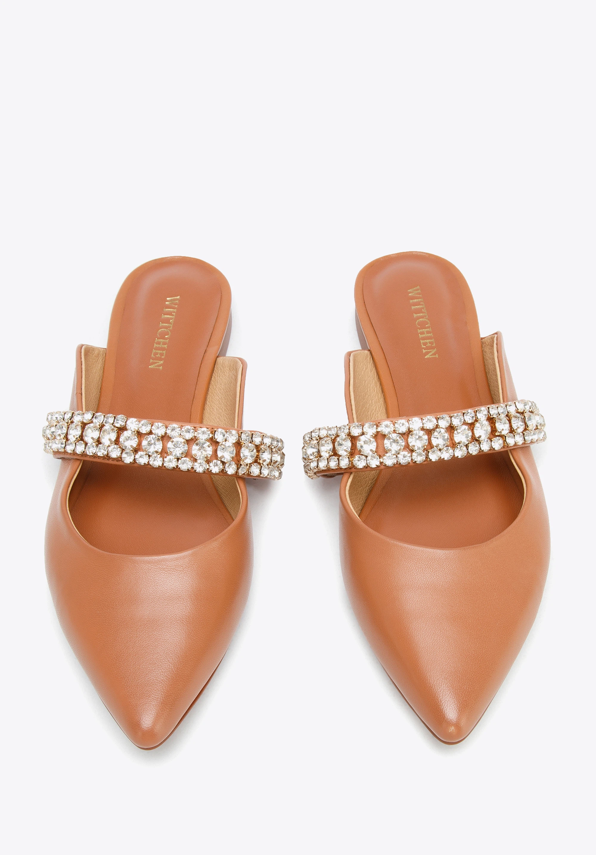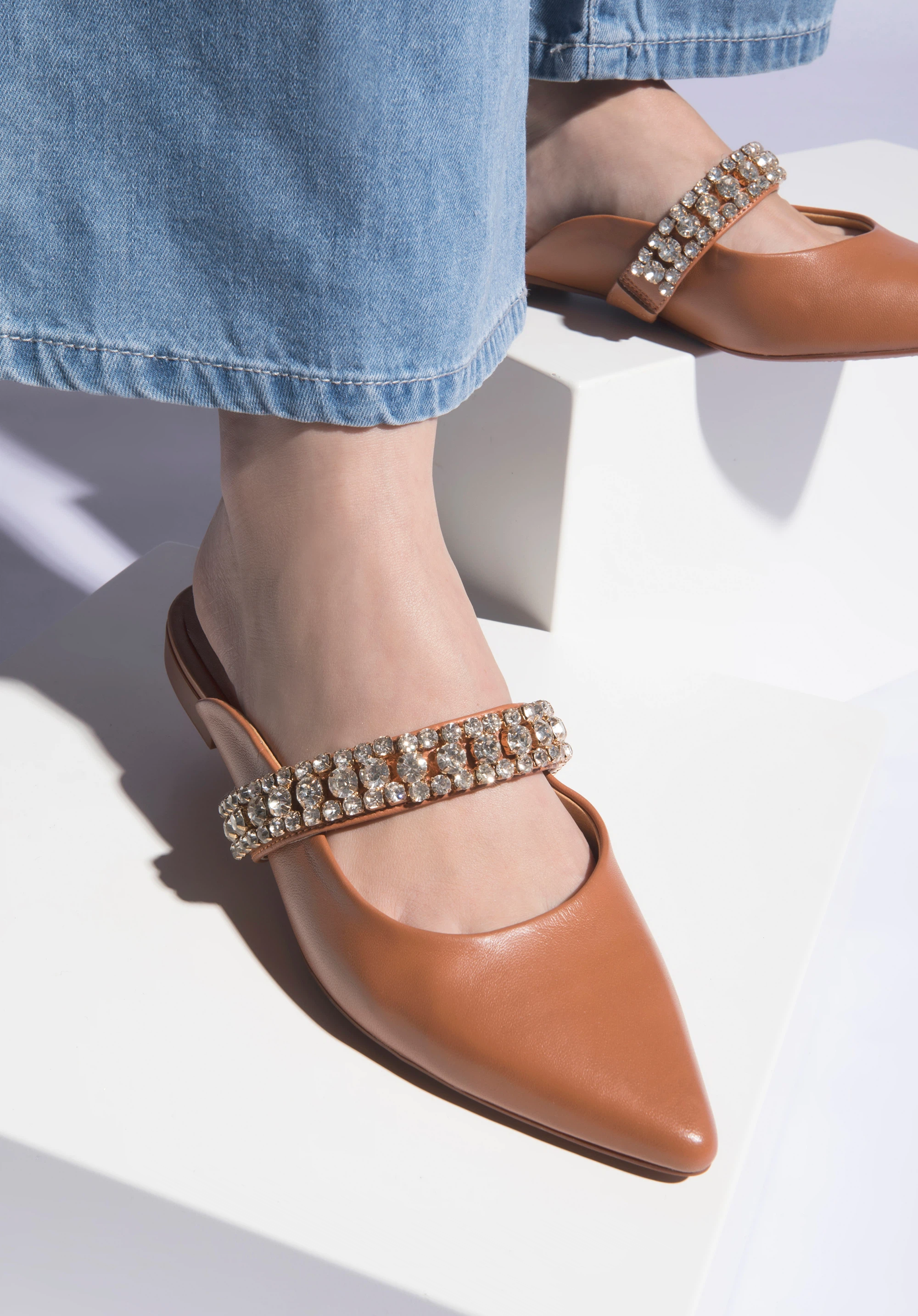 confecționat din piele naturală de înaltă calitate.Sunt împodobite cu o bandă de bijuterii din cristale mici, strălucitoare.