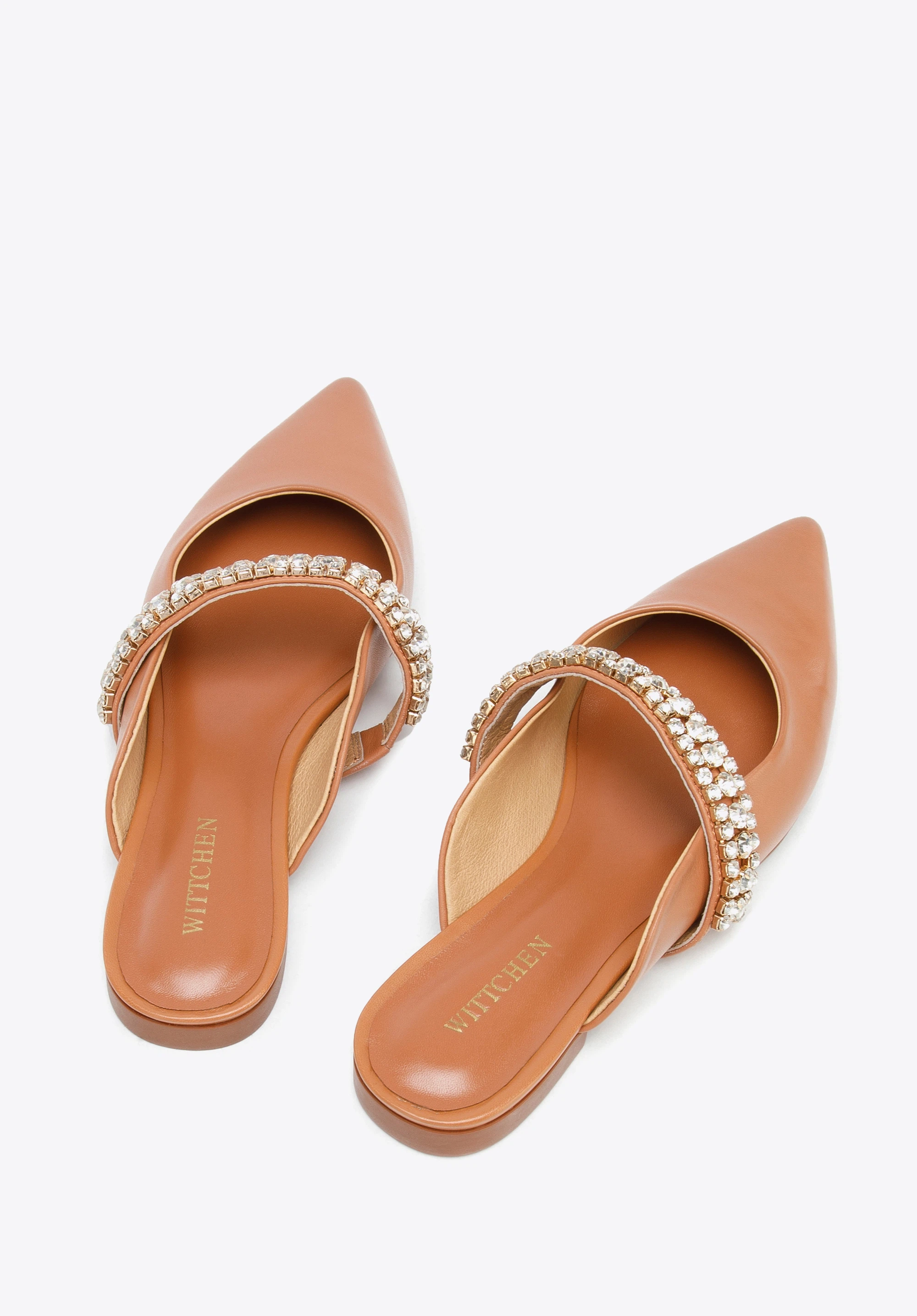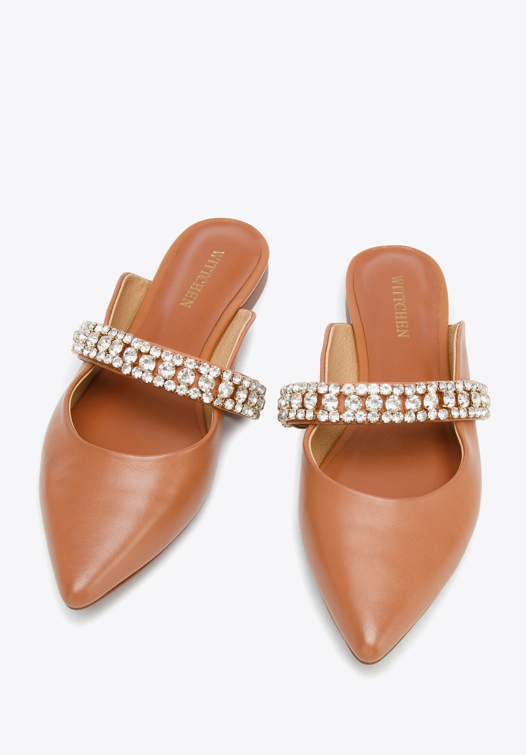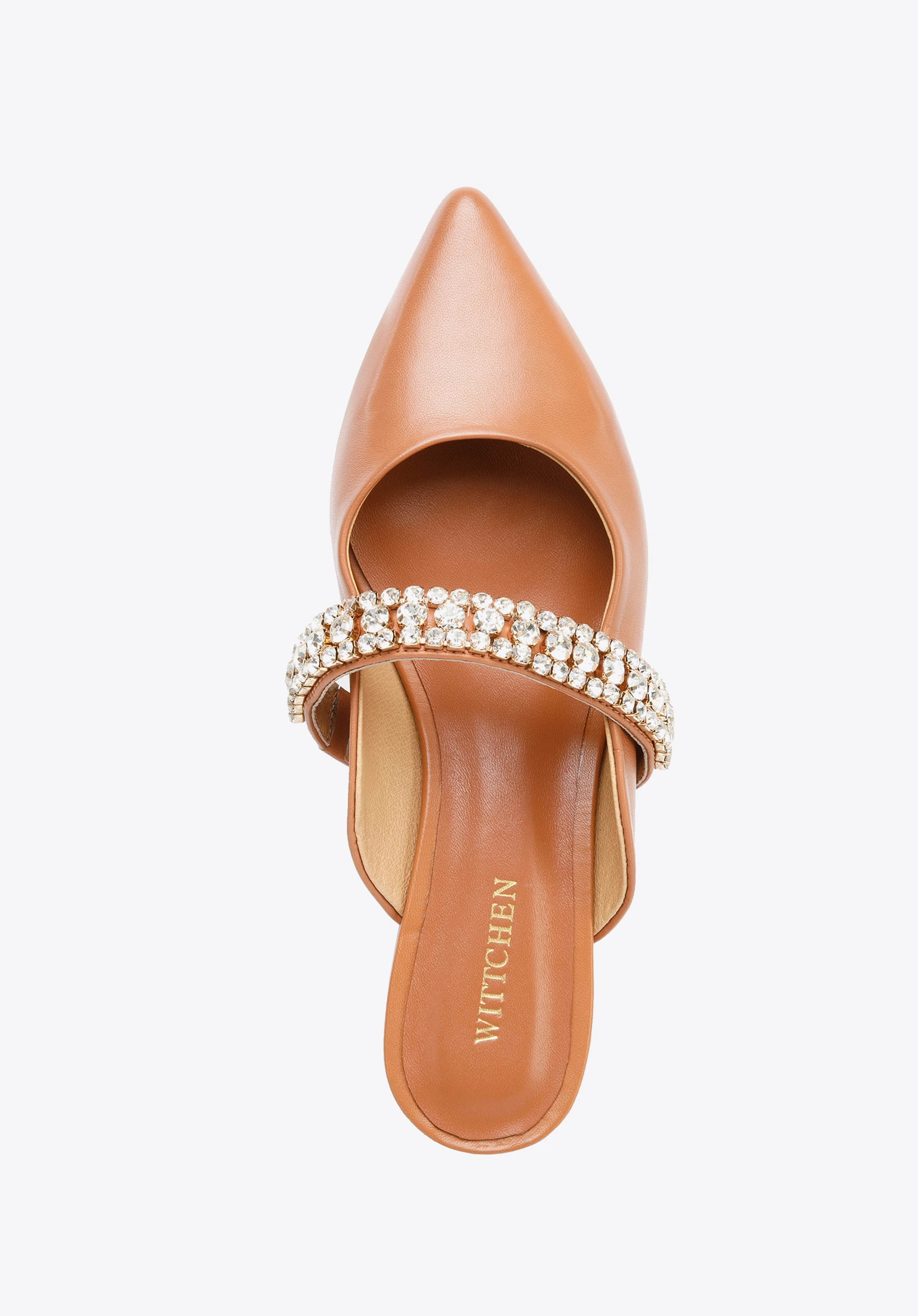 confecționat din piele naturală de înaltă calitate.Sunt împodobite cu o bandă de bijuterii din cristale mici, strălucitoare.