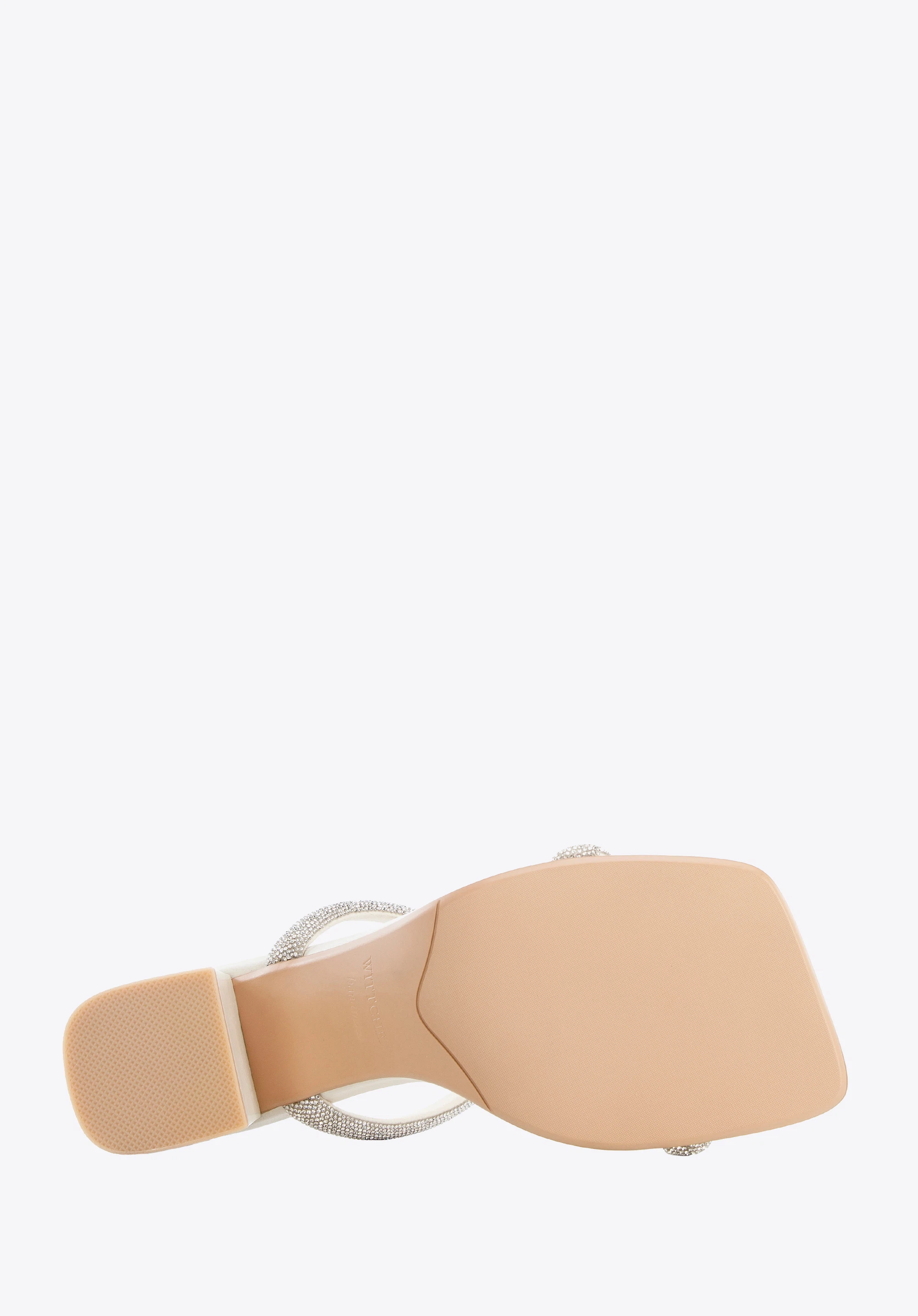 Șlapii de damăpiele turnată cu curele lucioase sunt un accesoriu original care va atrage mai mult de o privire.