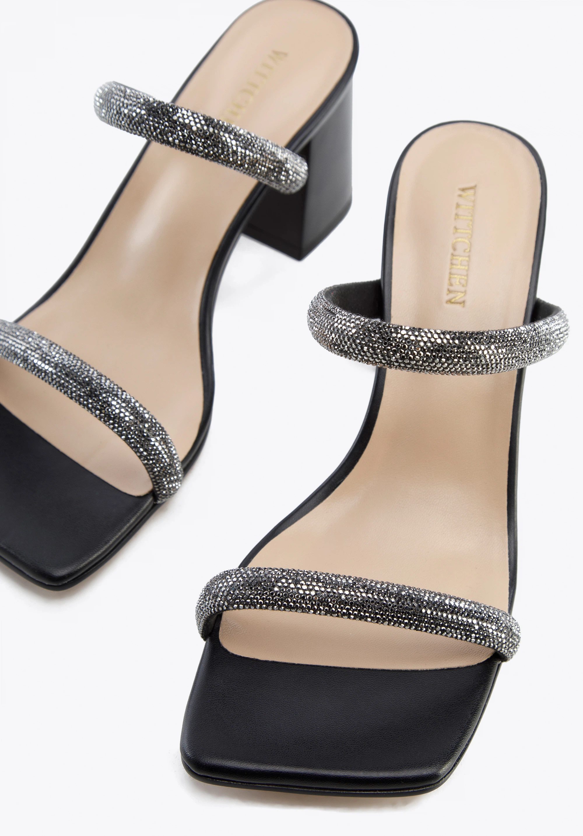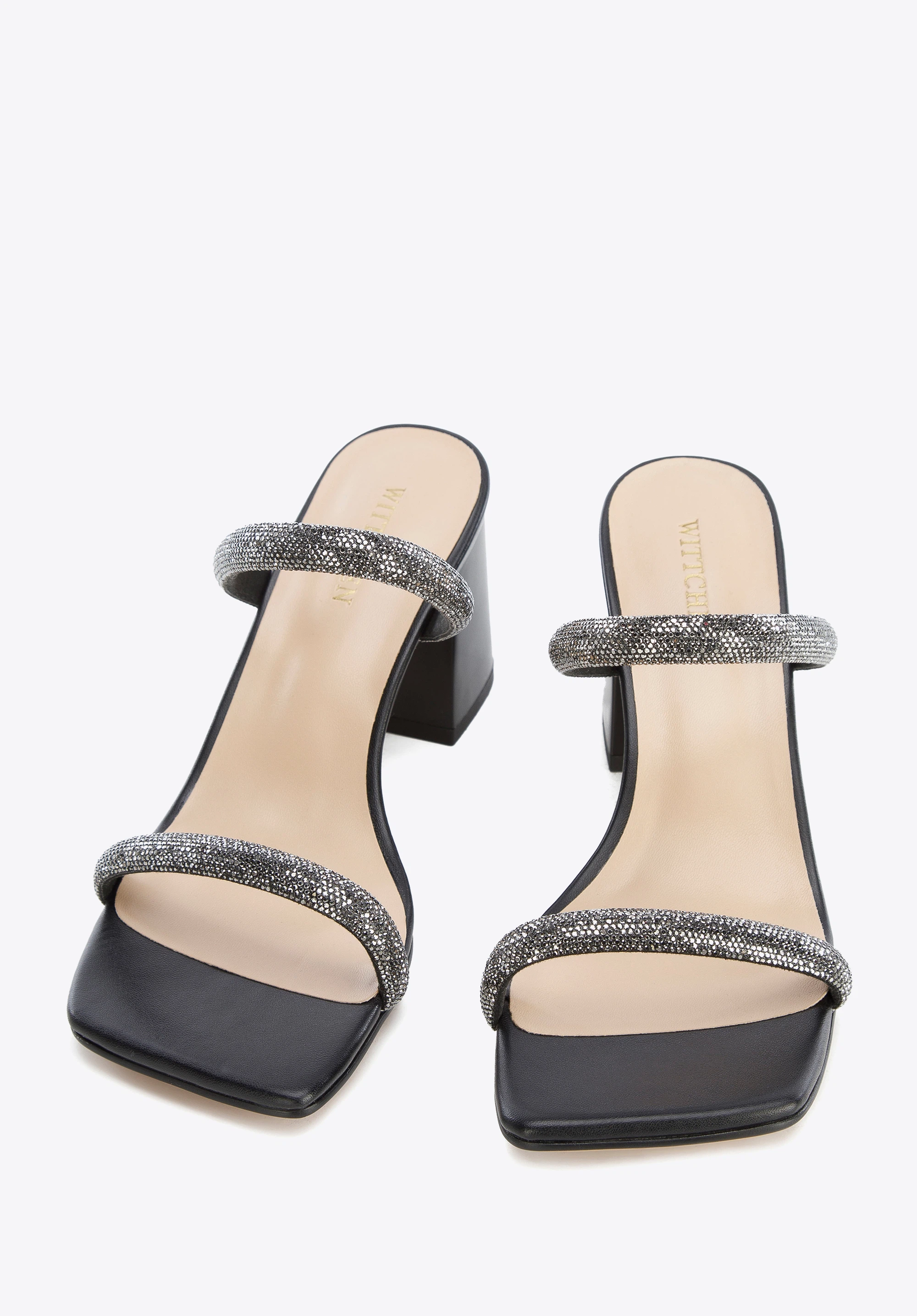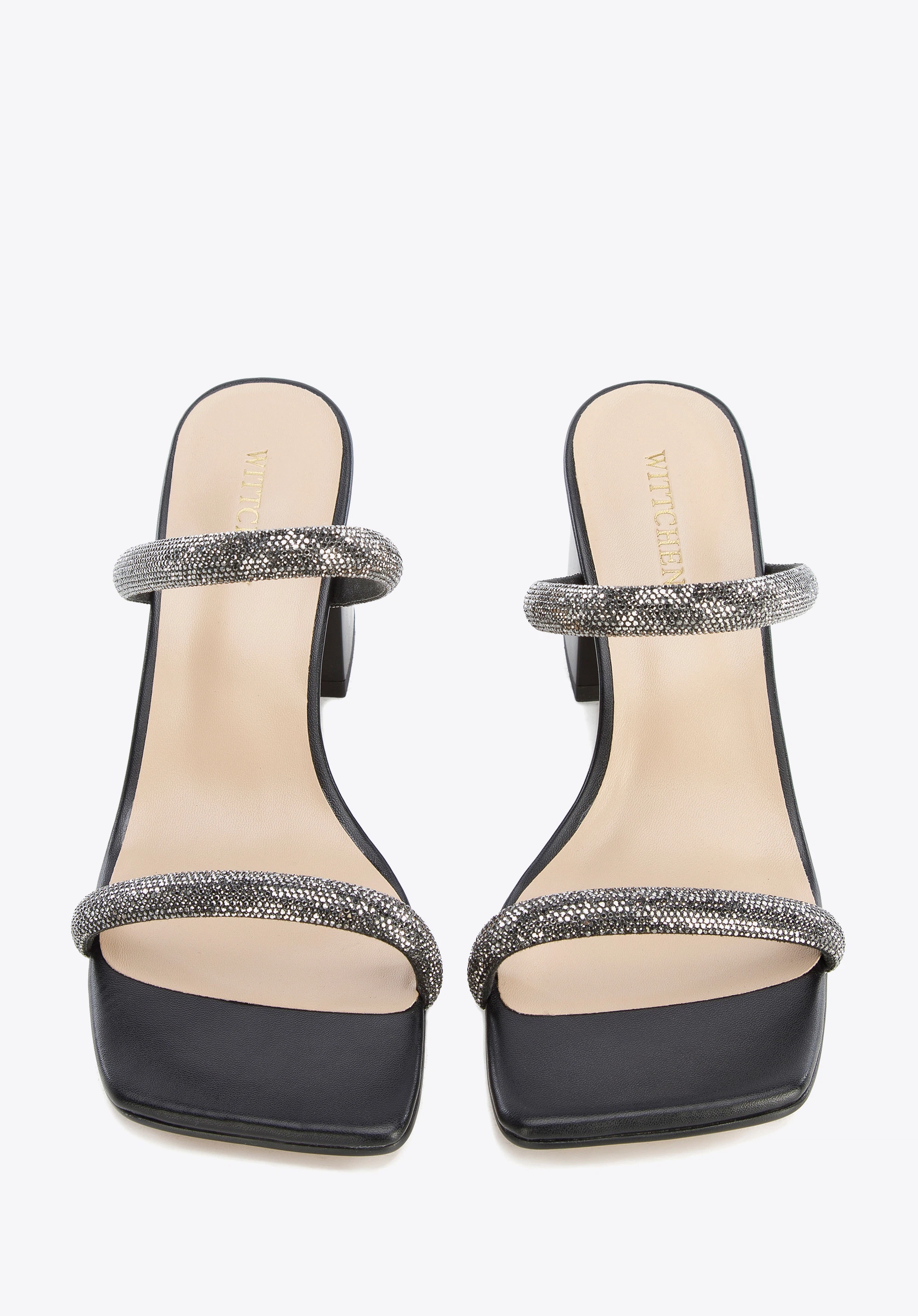 Șlapii de damăpiele turnată cu curele lucioase sunt un accesoriu original care va atrage mai mult de o privire.