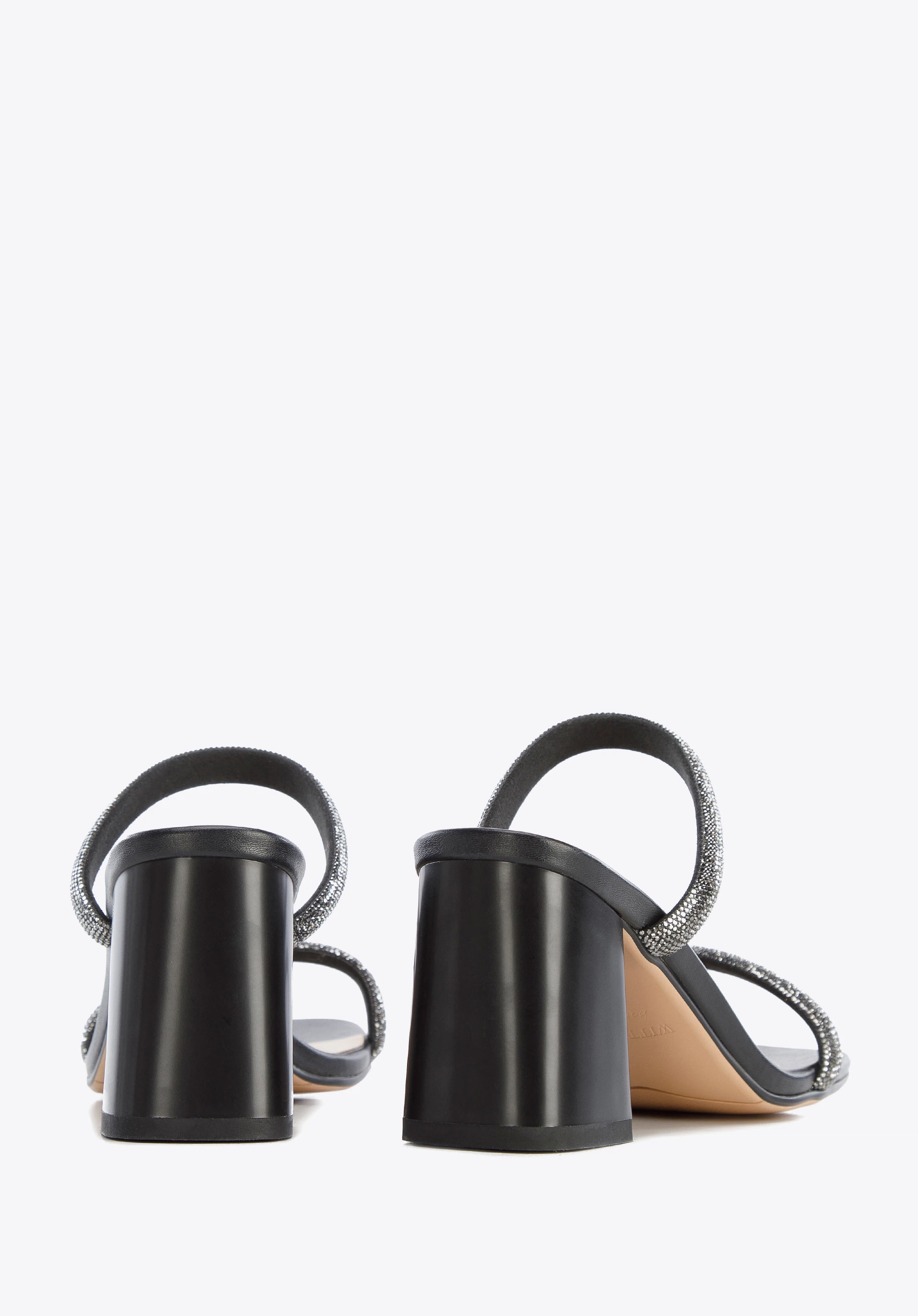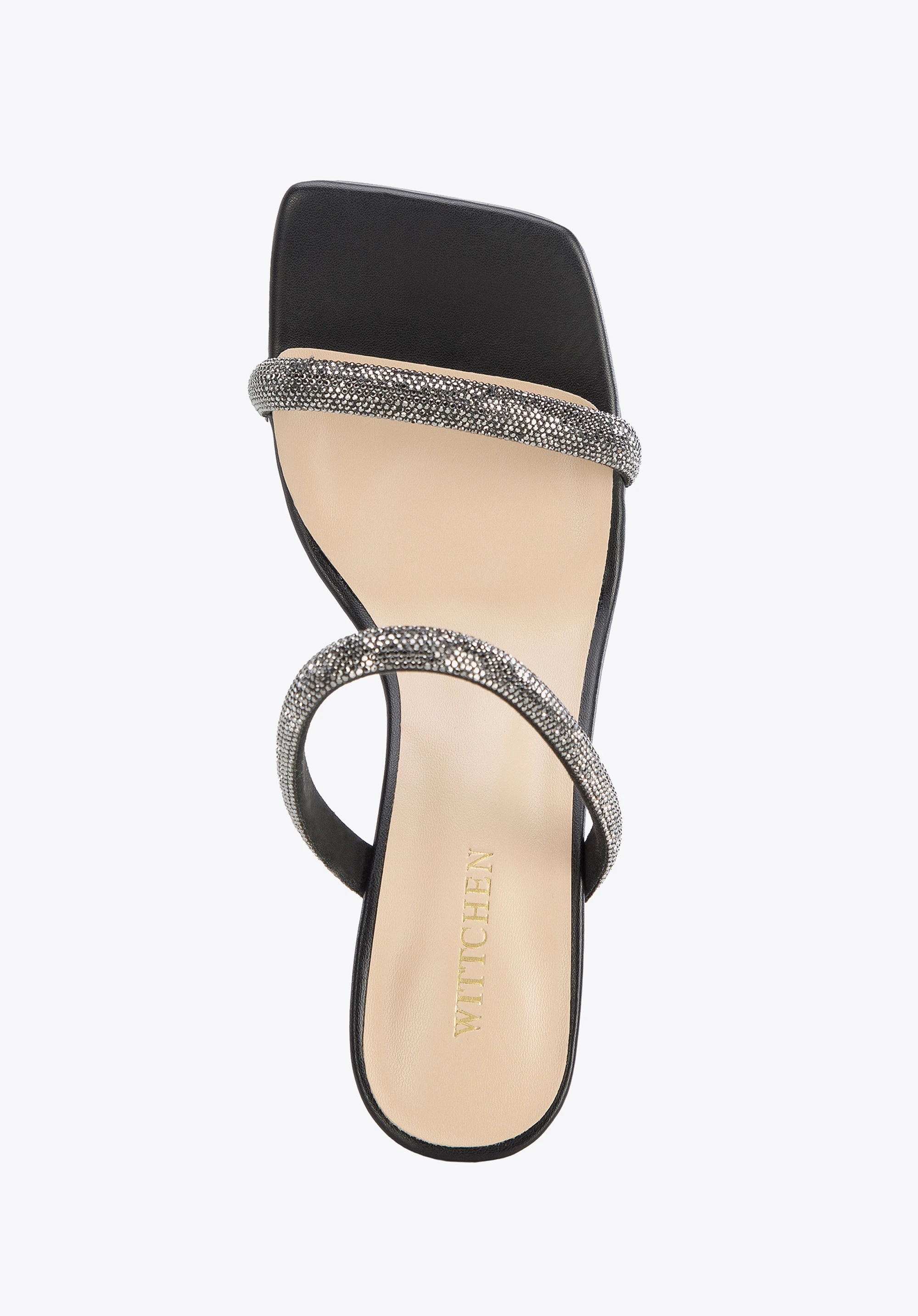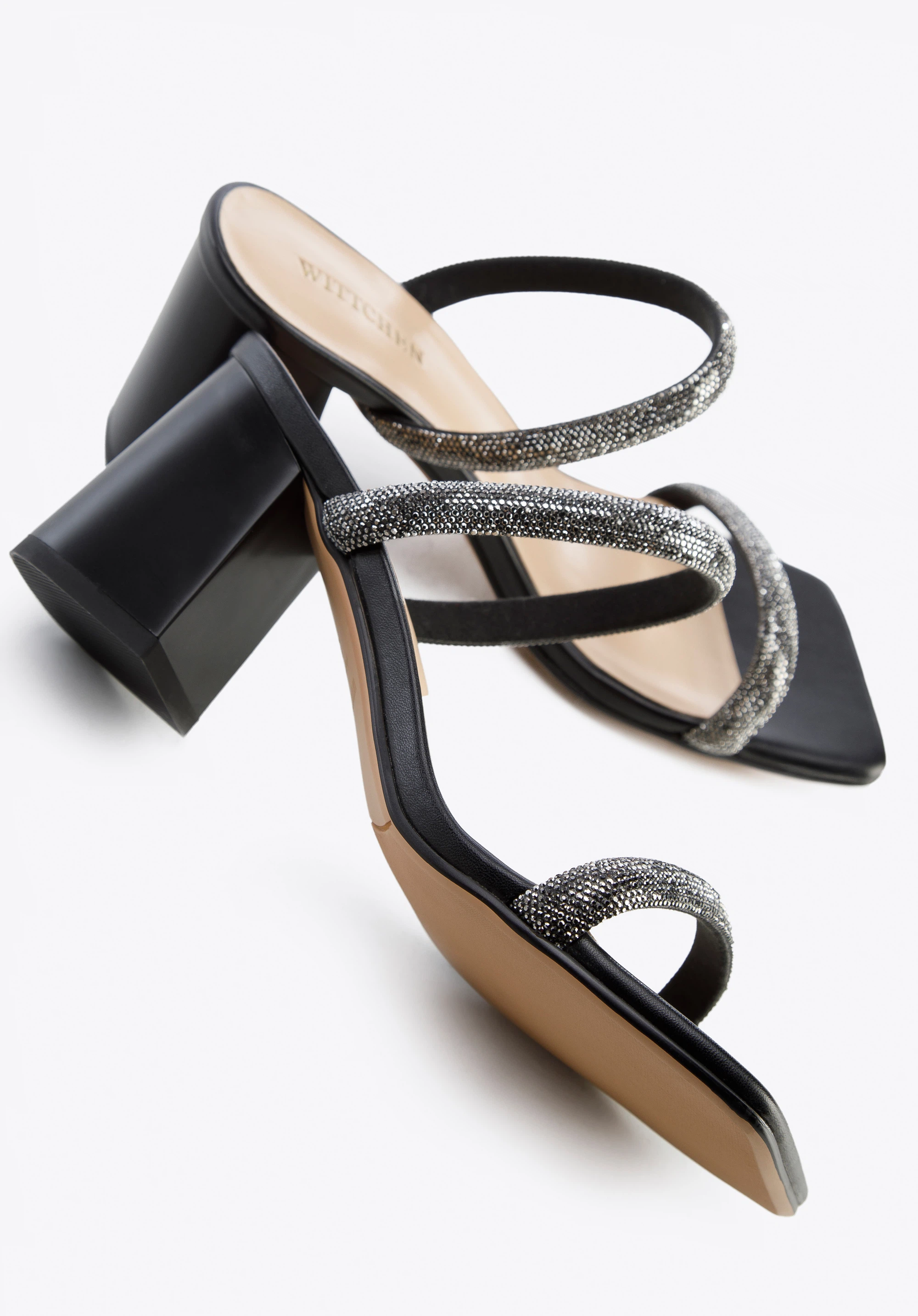 Șlapii de damăpiele turnată cu curele lucioase sunt un accesoriu original care va atrage mai mult de o privire.