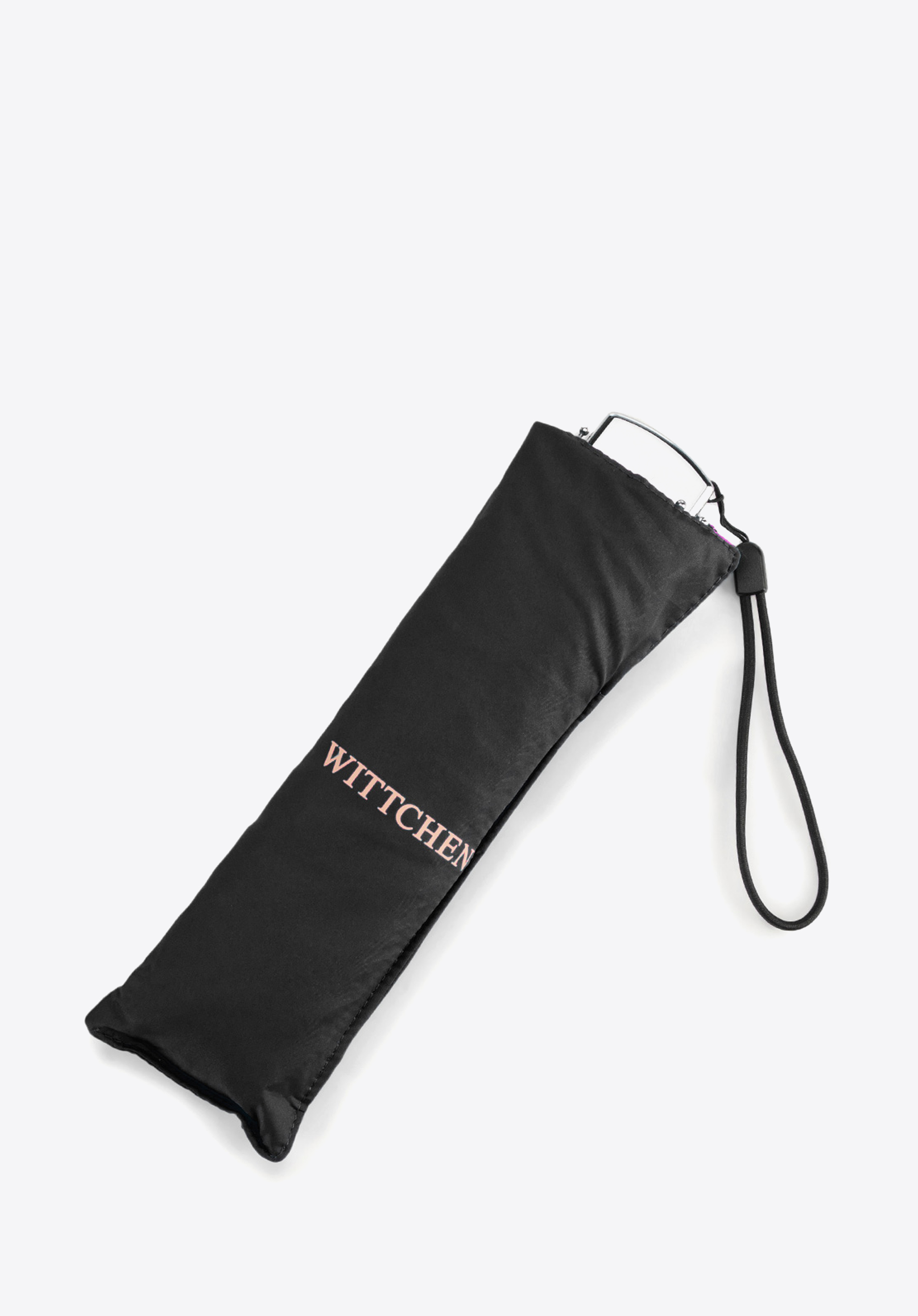 Umbrelă de damă cu curea pentru purtare comodă la încheietura mâinii și husă cu sigla WITTCHEN.Umbrela este plată și ușoară, astfel încât poate încăpea chiar și într-o geantă mai mică.Grajd