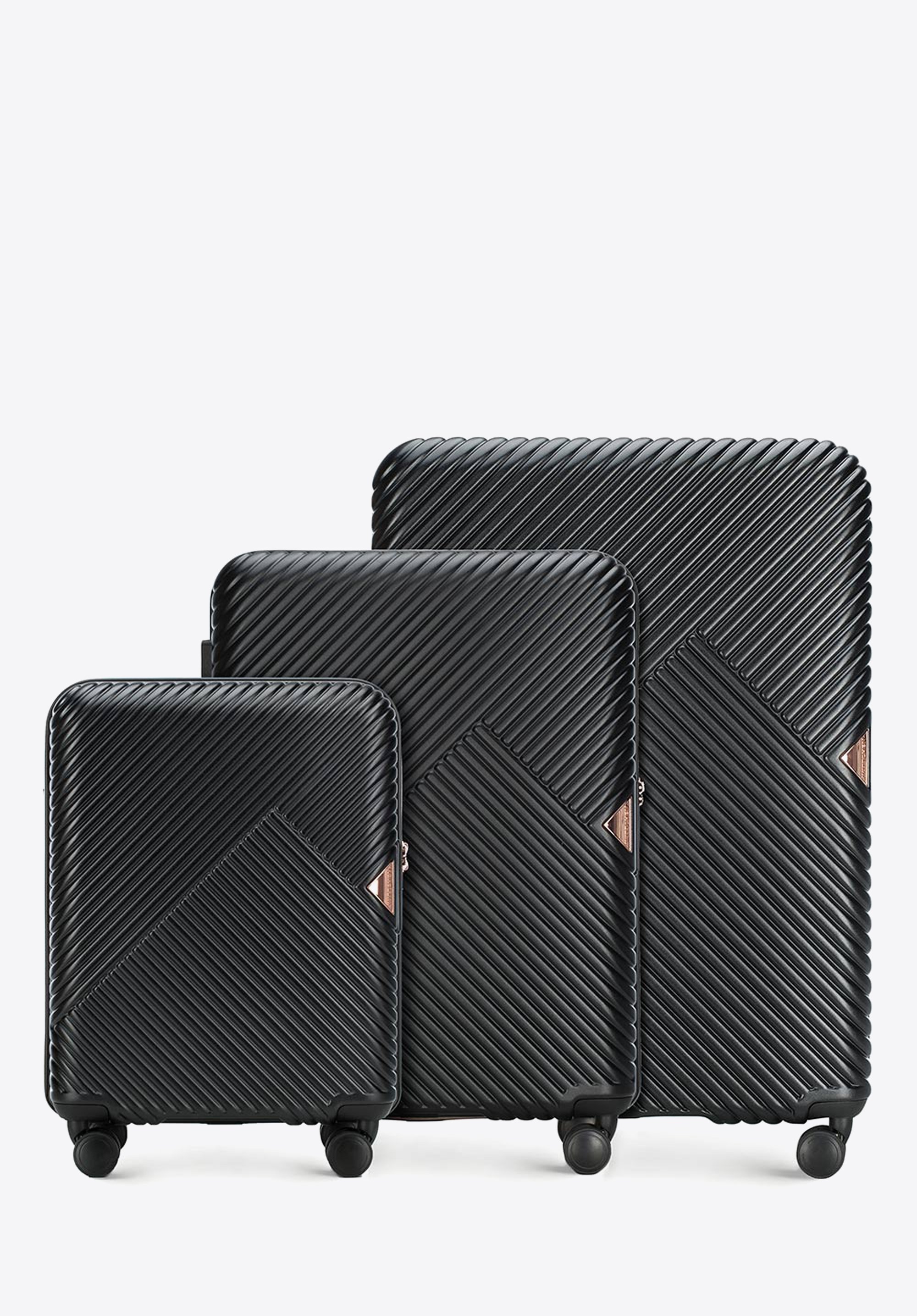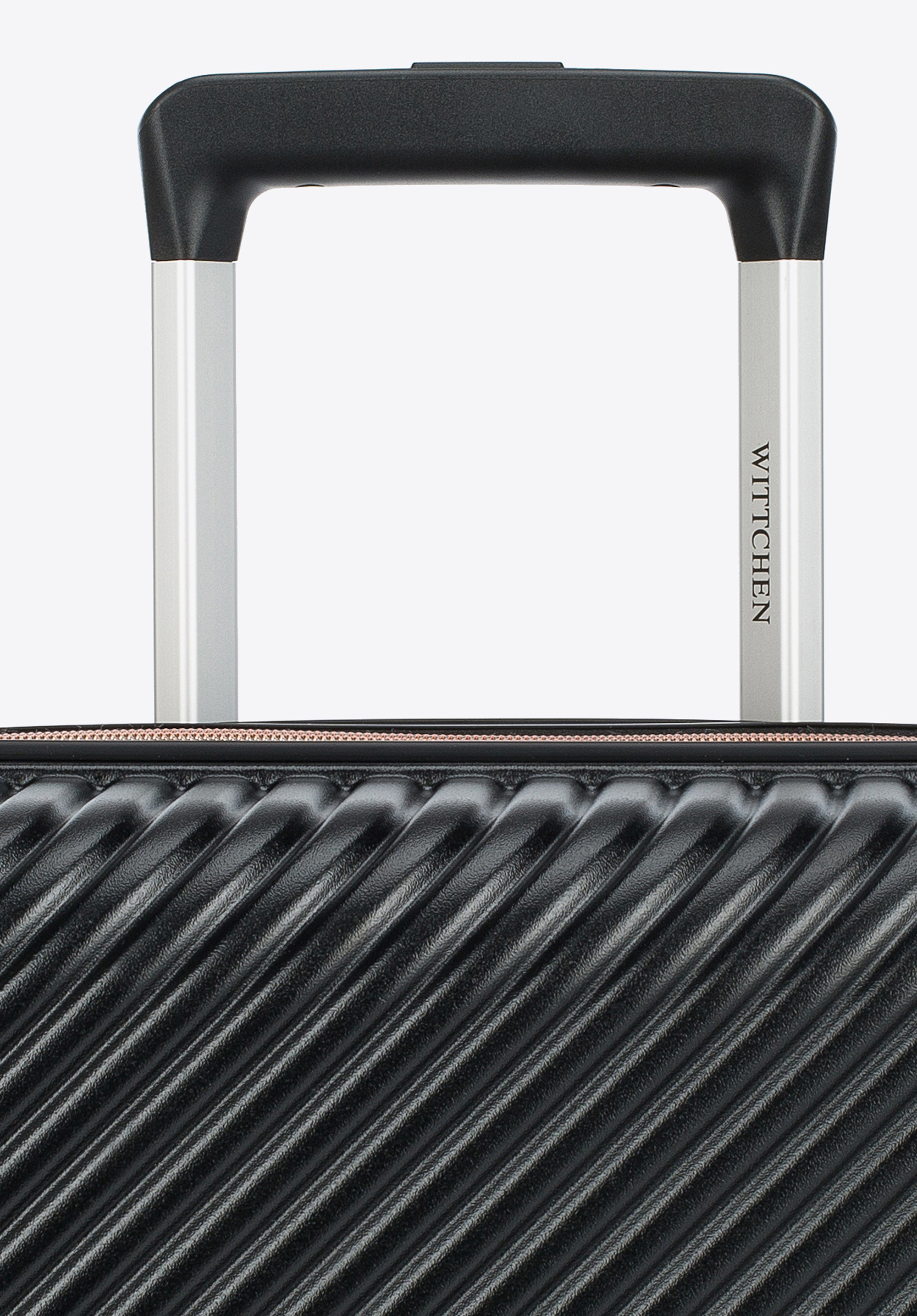 Valize din policarbonat cu un finisaj mat.Este un proiect de designer cu accesorii strălucitoare în aur roz.Roți din plastic ABS cu acoperire flexibilă.Interiorul bagajului este acoperit cu o căptușeală bej cu sigla WITTCHEN.Modelul este disponibil în trei nuanțe: alb , negru și roz .