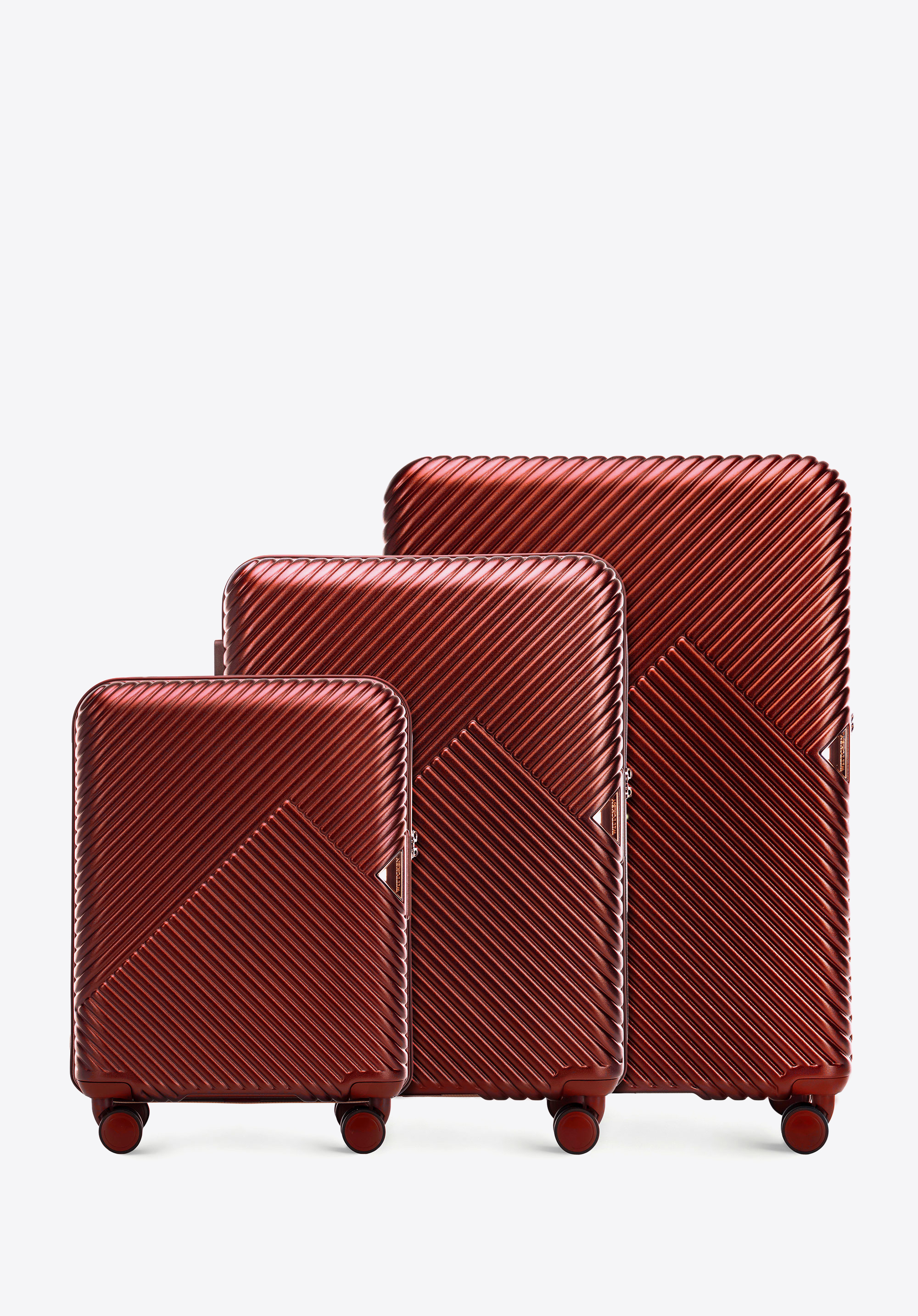 Valize din policarbonat cu un finisaj mat.Este un proiect de designer cu accesorii strălucitoare în aur roz.Roți din plastic ABS cu acoperire flexibilă.Interiorul bagajului este acoperit cu o căptușeală bej cu sigla WITTCHEN.Modelul este disponibil în trei nuanțe: alb , negru și roz .