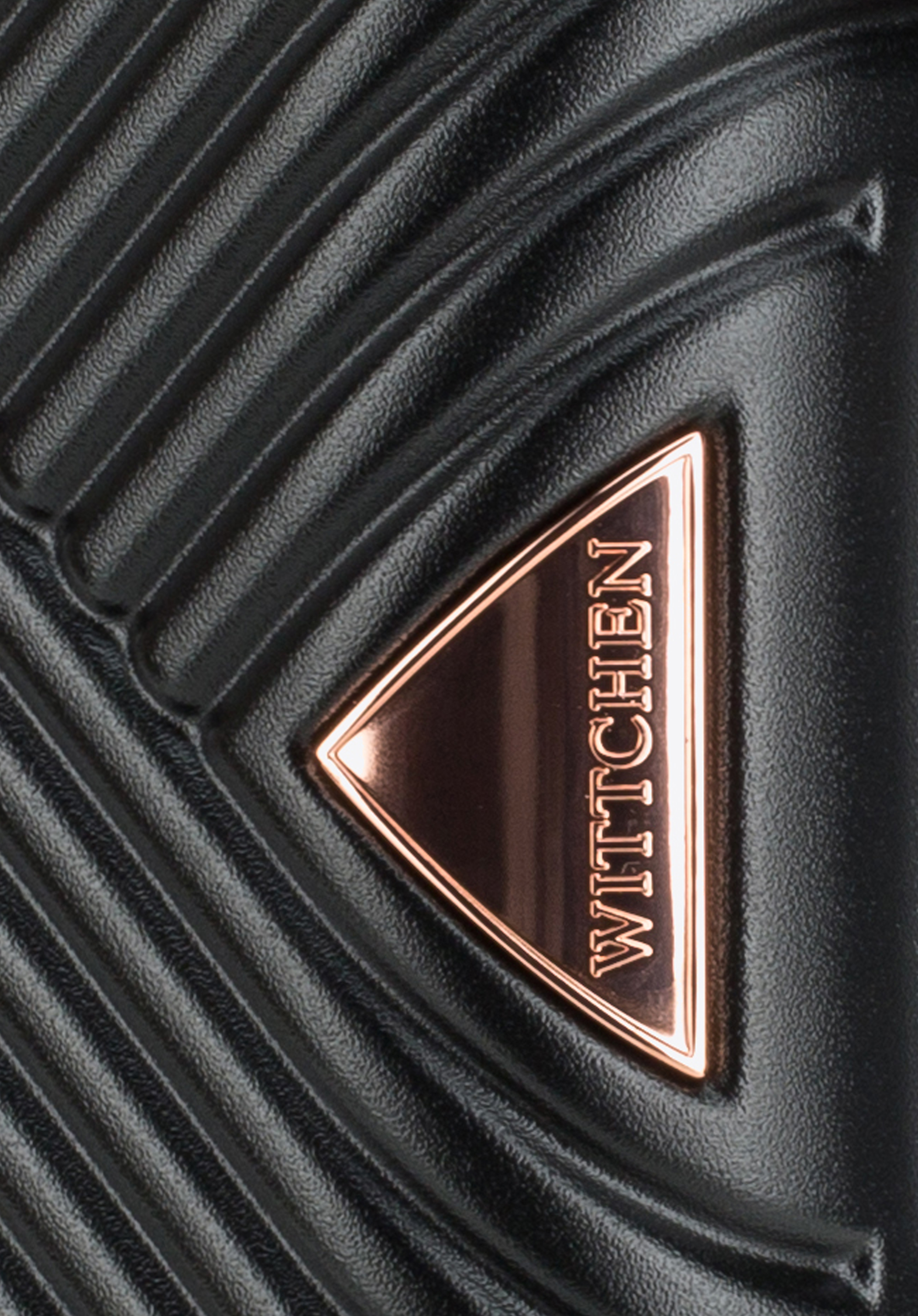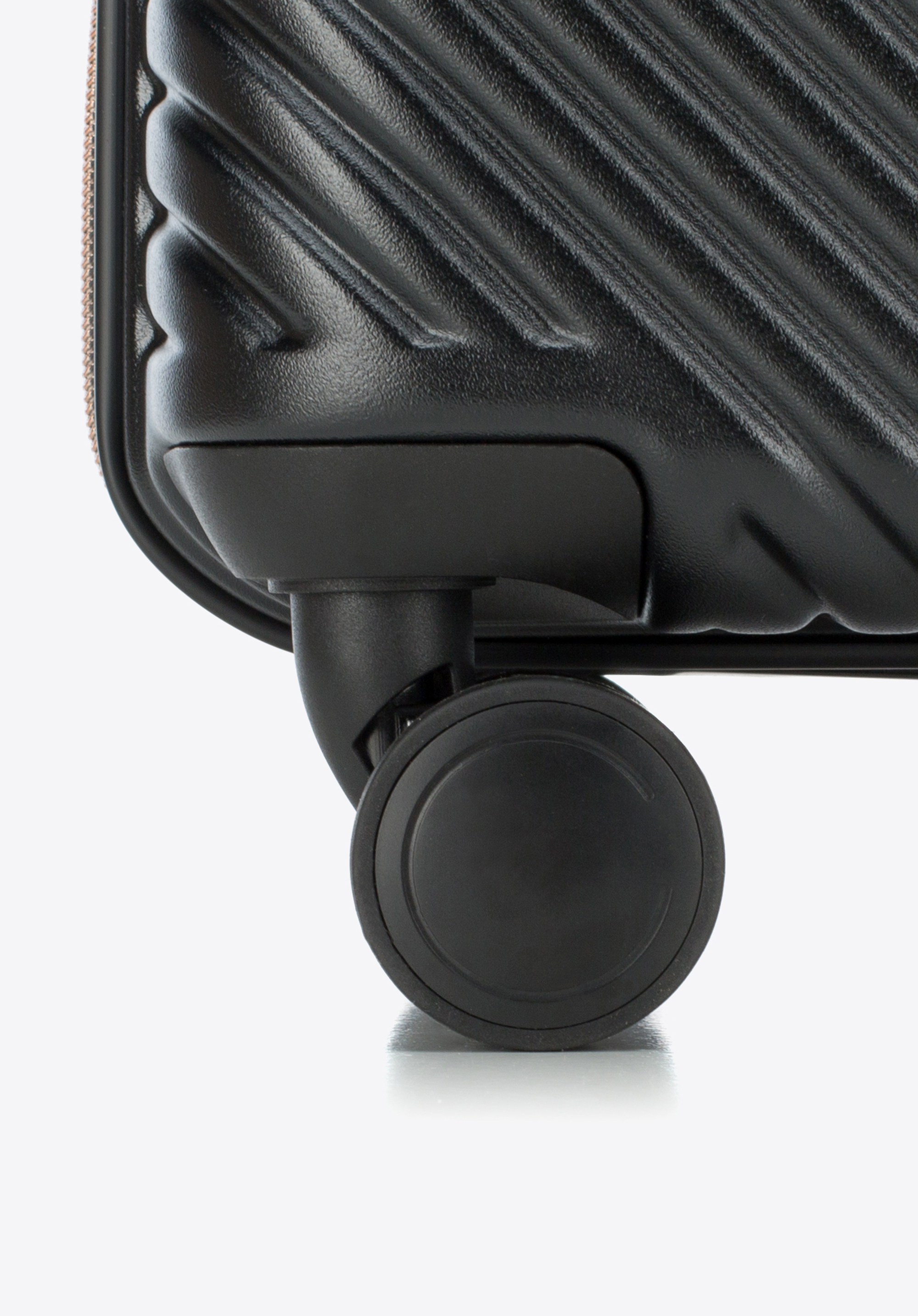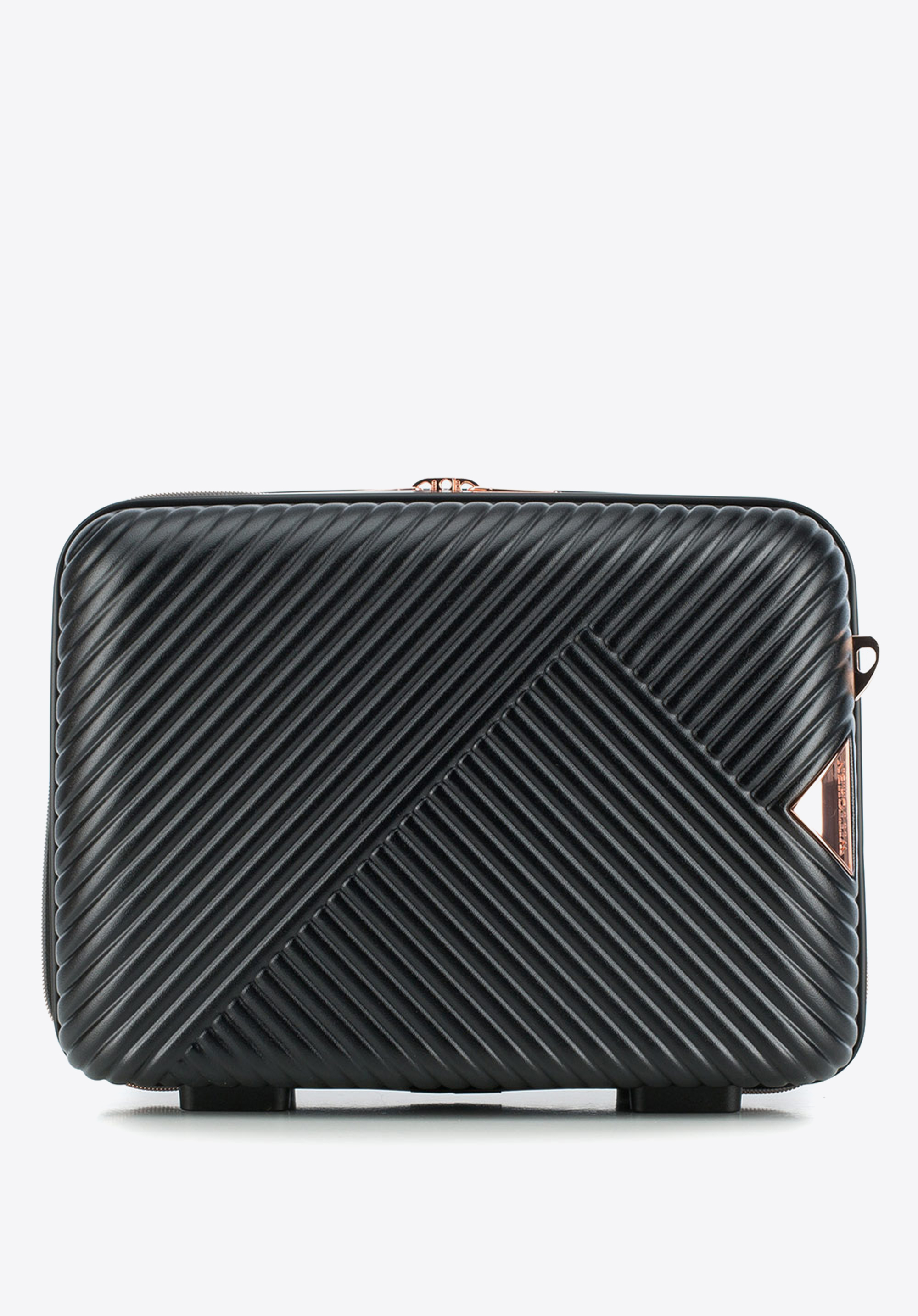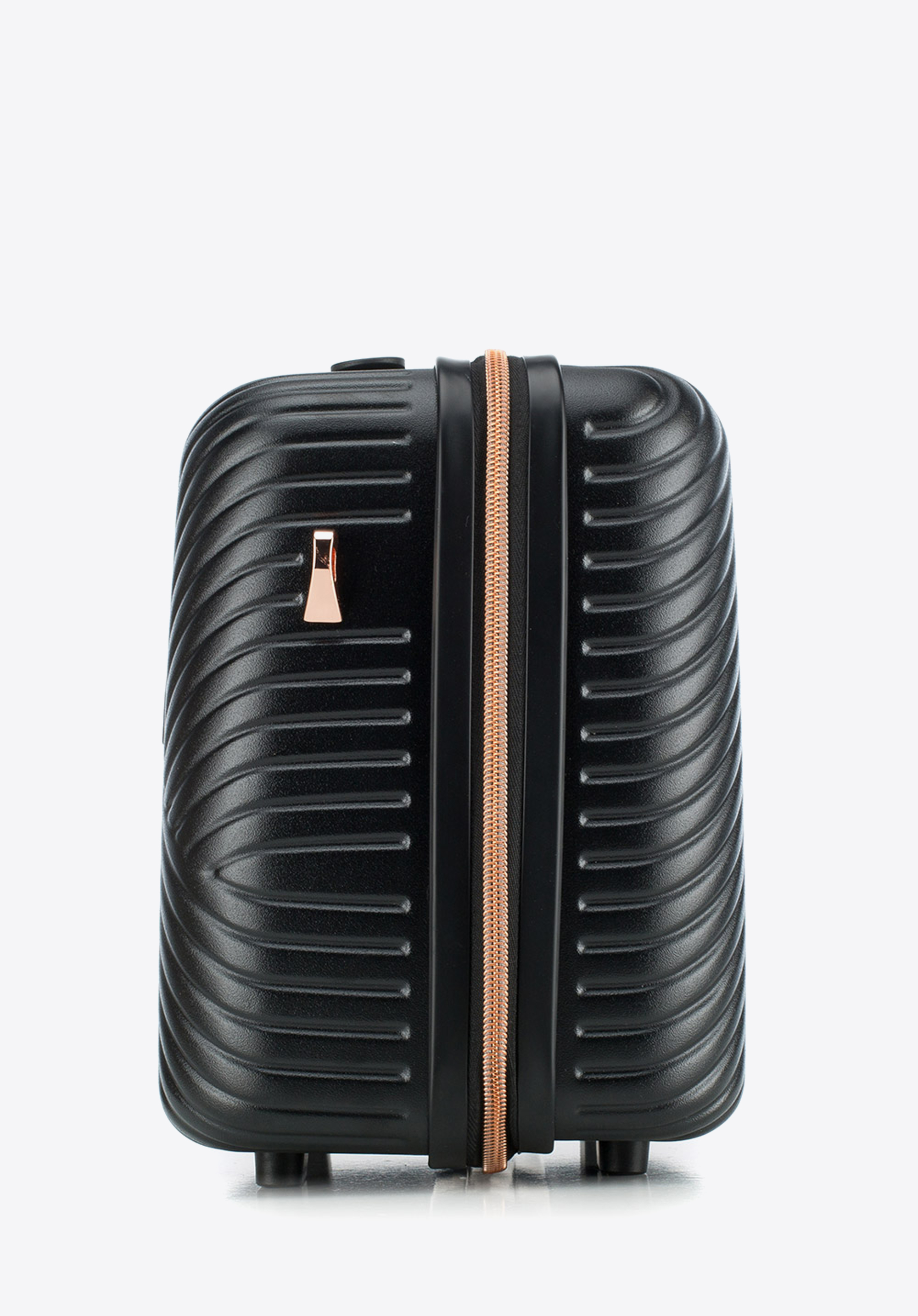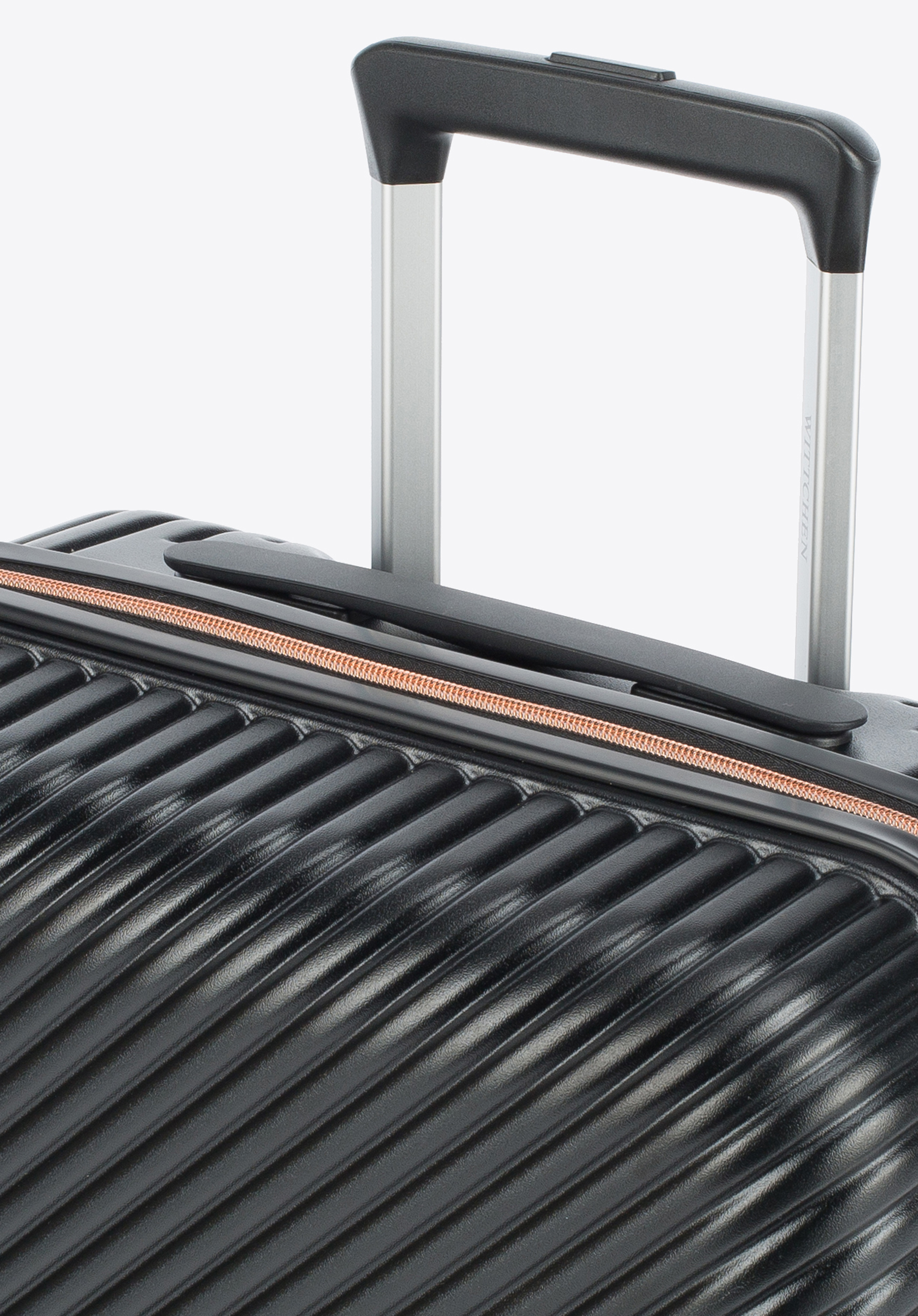 Valize din policarbonat cu un finisaj mat.Este un proiect de designer cu accesorii strălucitoare în aur roz.Roți din ABS cu acoperire flexibilă.Interiorul bagajului este acoperit cu o căptușeală bej cu sigla WITTCHEN.Modelul este disponibil în trei nuanțe: alb , negru și roz .