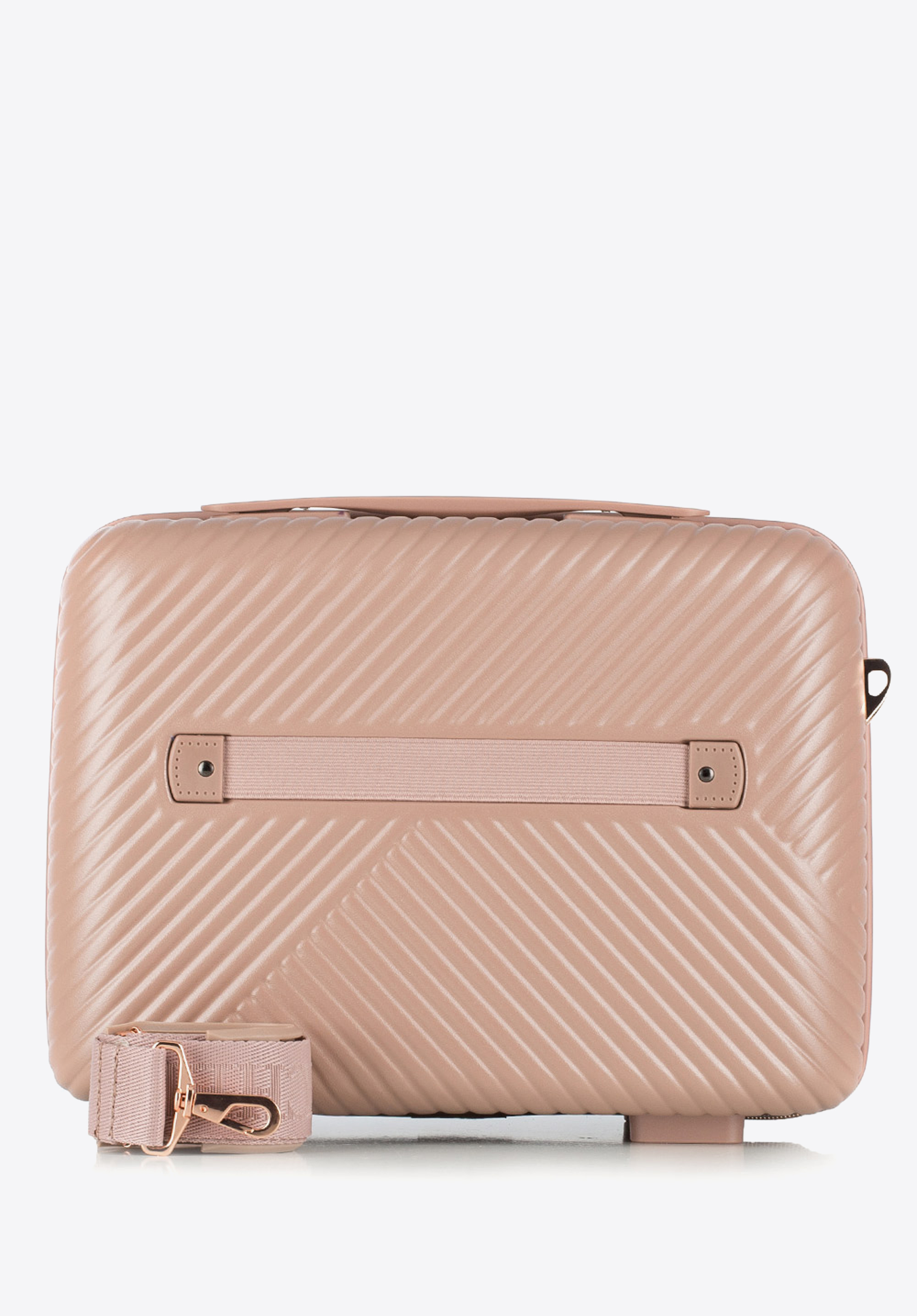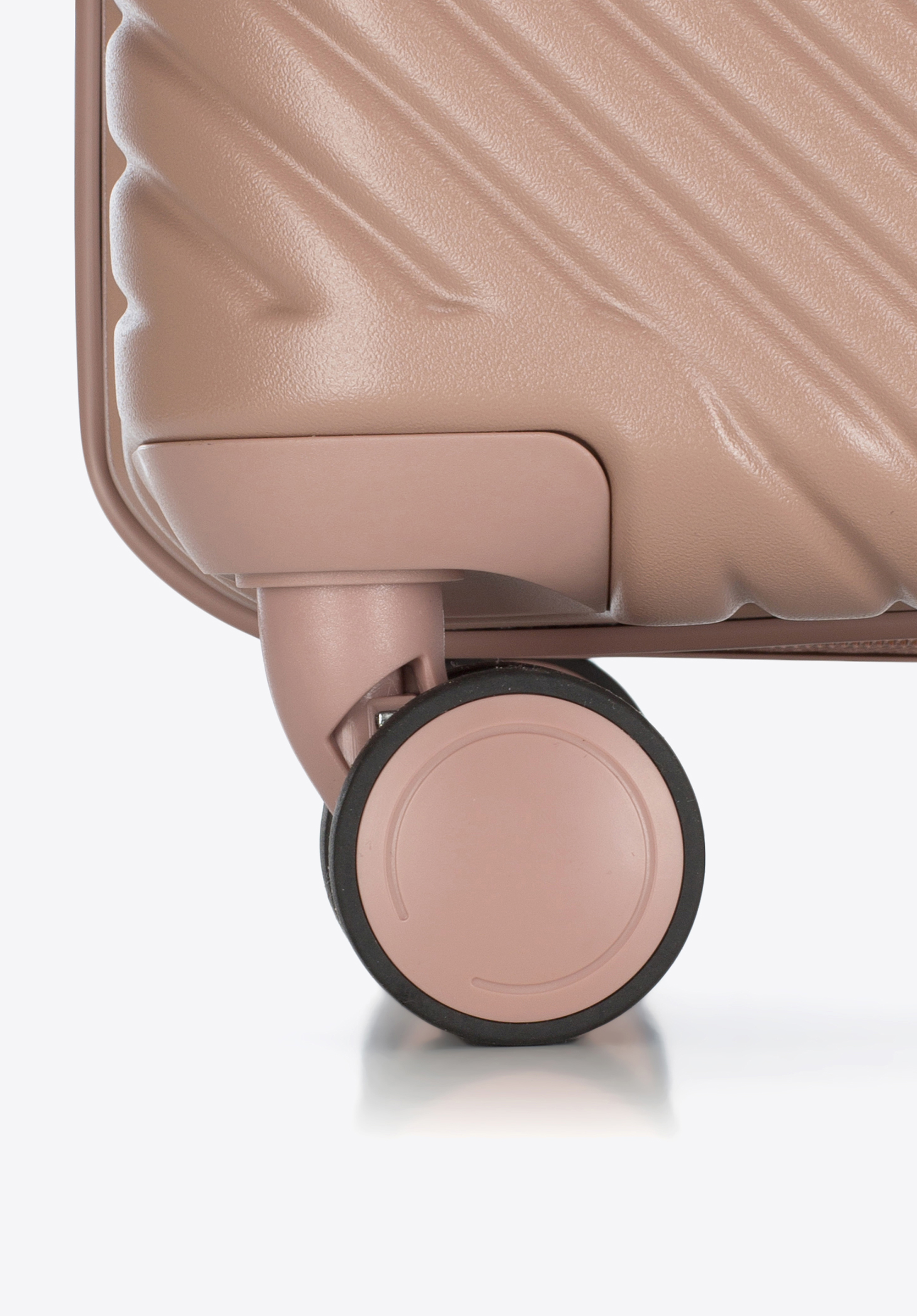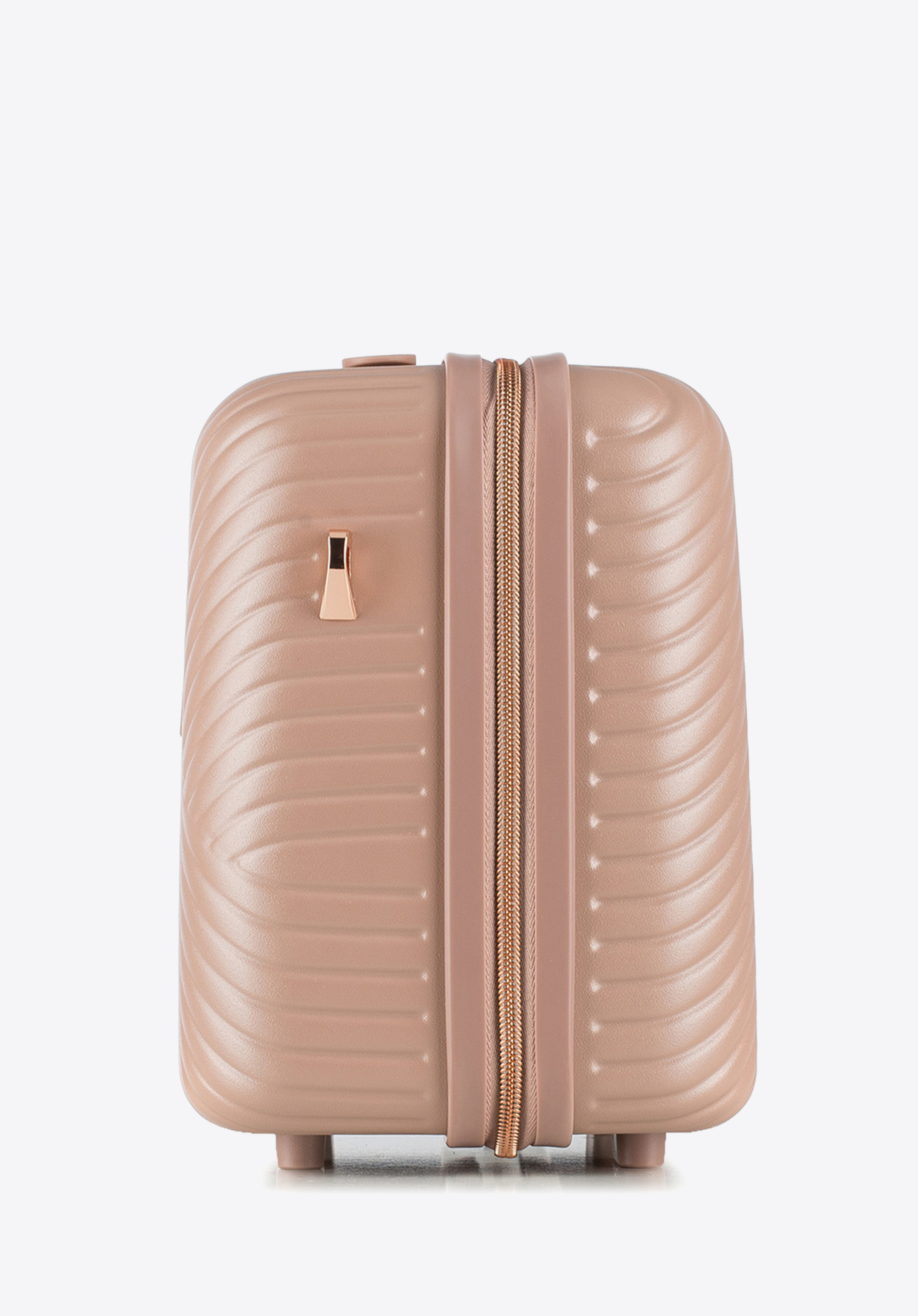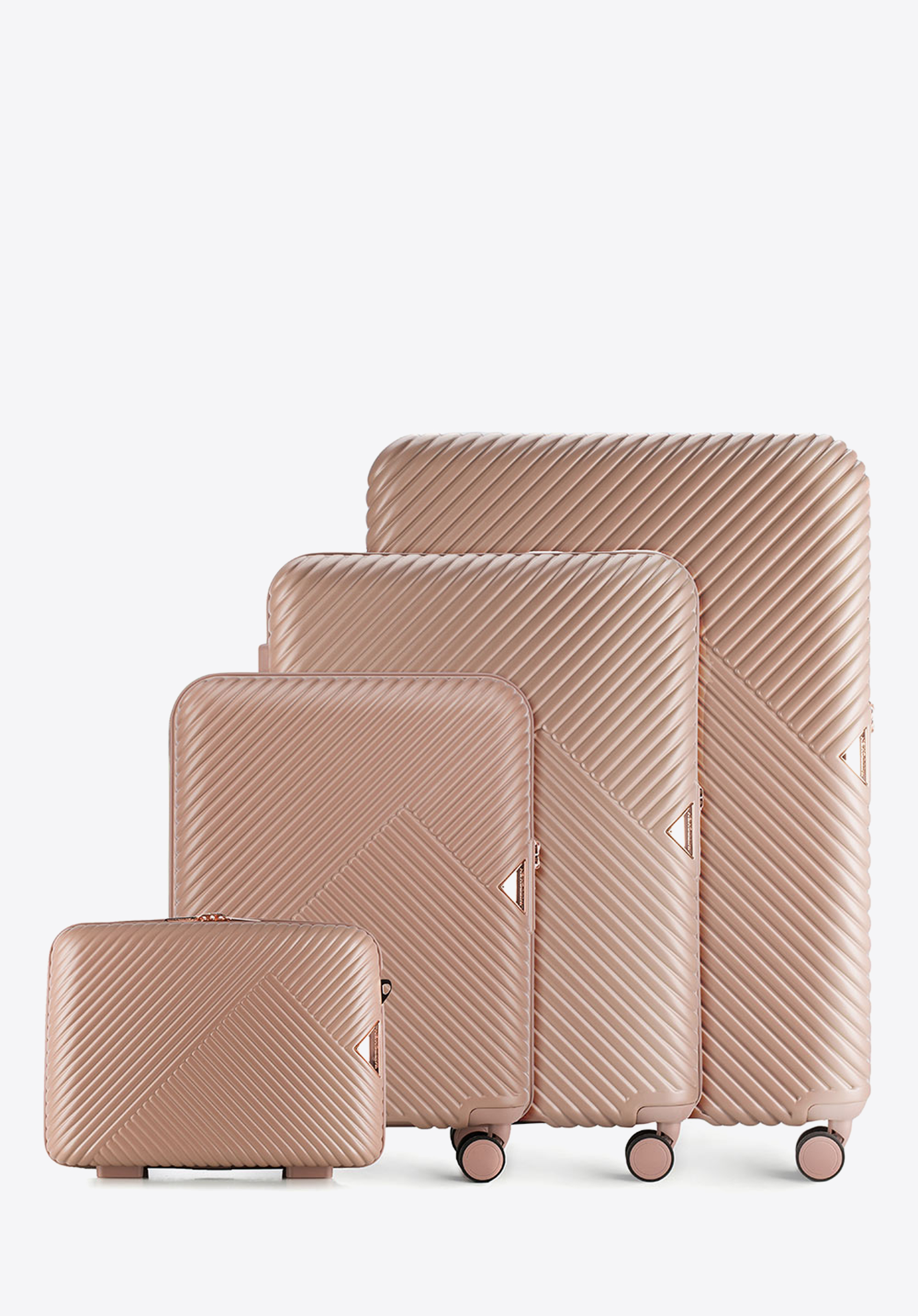 Valize din policarbonat cu un finisaj mat.Este un proiect de designer cu accesorii strălucitoare în aur roz.Roți din ABS cu acoperire flexibilă.Interiorul bagajului este acoperit cu o căptușeală bej cu sigla WITTCHEN.Modelul este disponibil în trei nuanțe: alb , negru și roz .