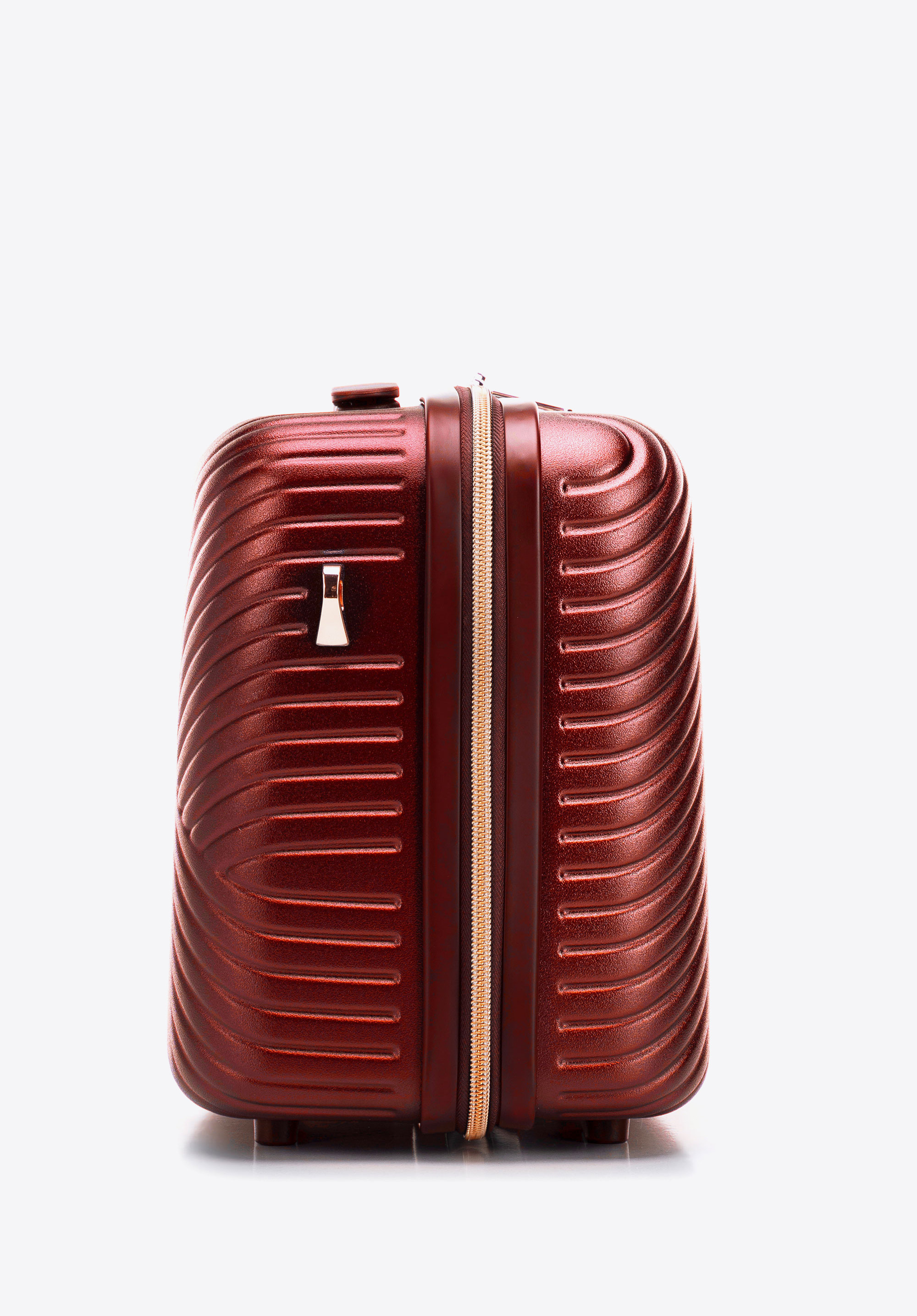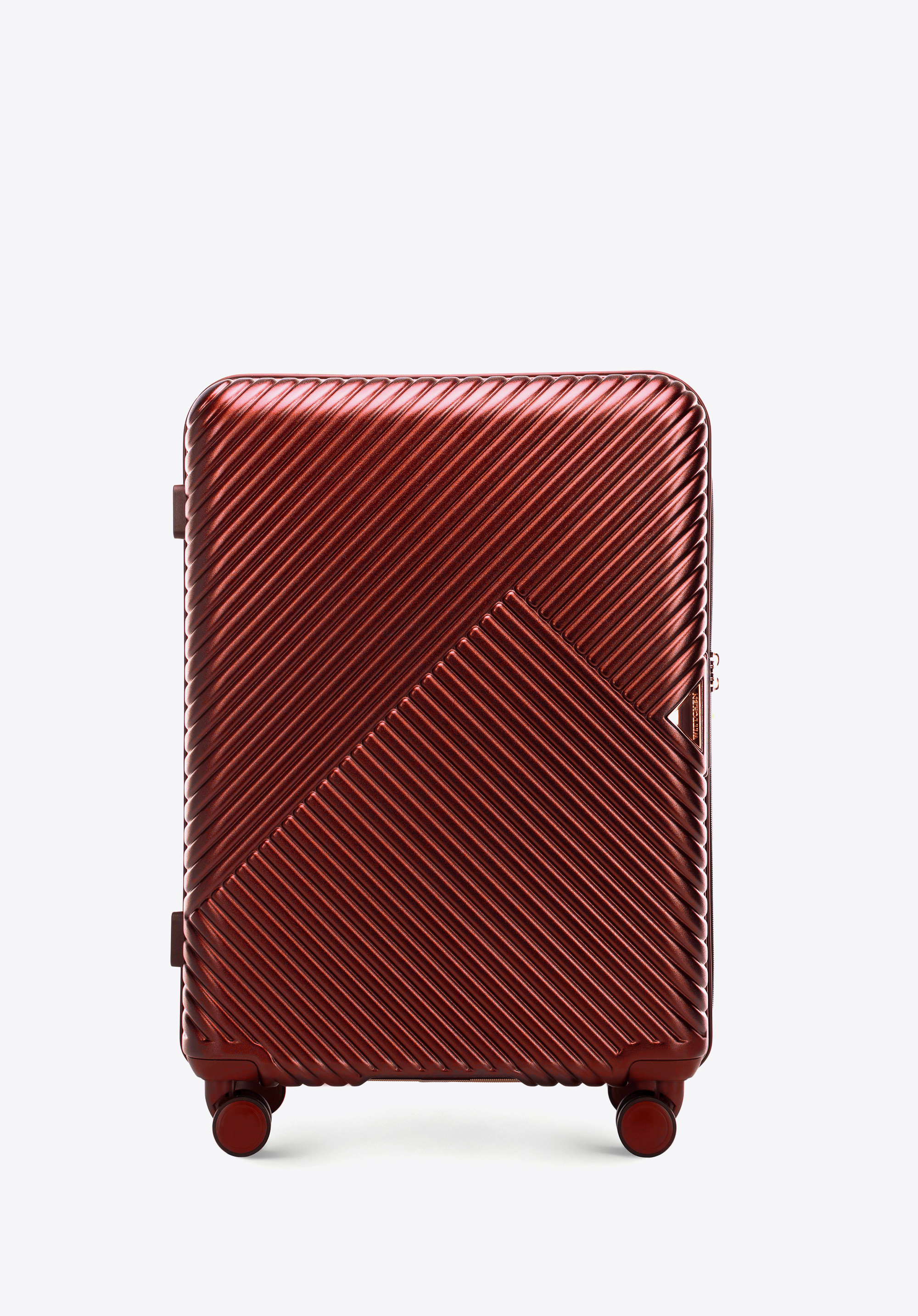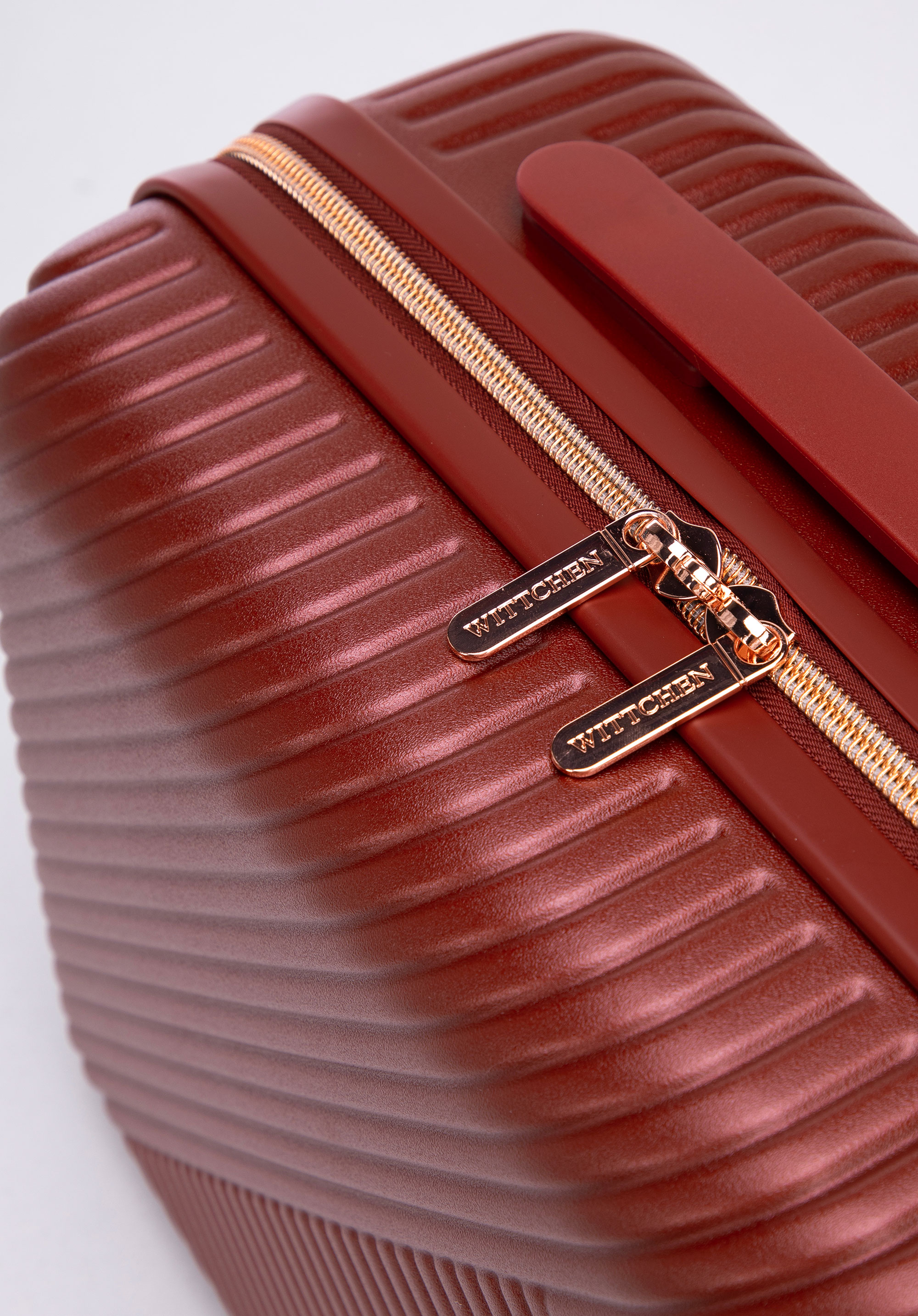 Valize din policarbonat cu un finisaj mat.Este un proiect de designer cu accesorii strălucitoare în aur roz.Roți din ABS cu acoperire flexibilă.Interiorul bagajului este acoperit cu o căptușeală bej cu sigla WITTCHEN.Modelul este disponibil în trei nuanțe: alb , negru și roz .