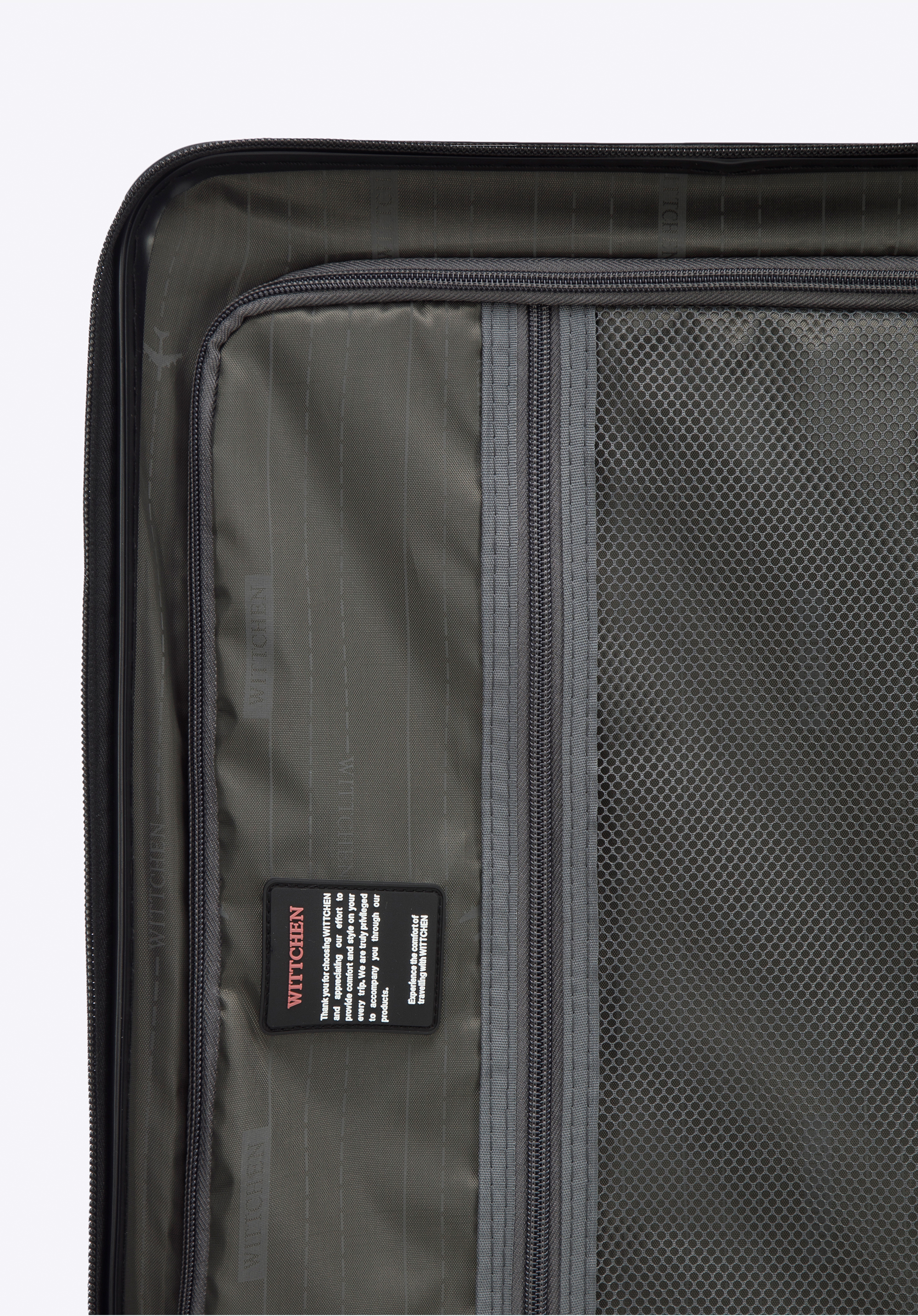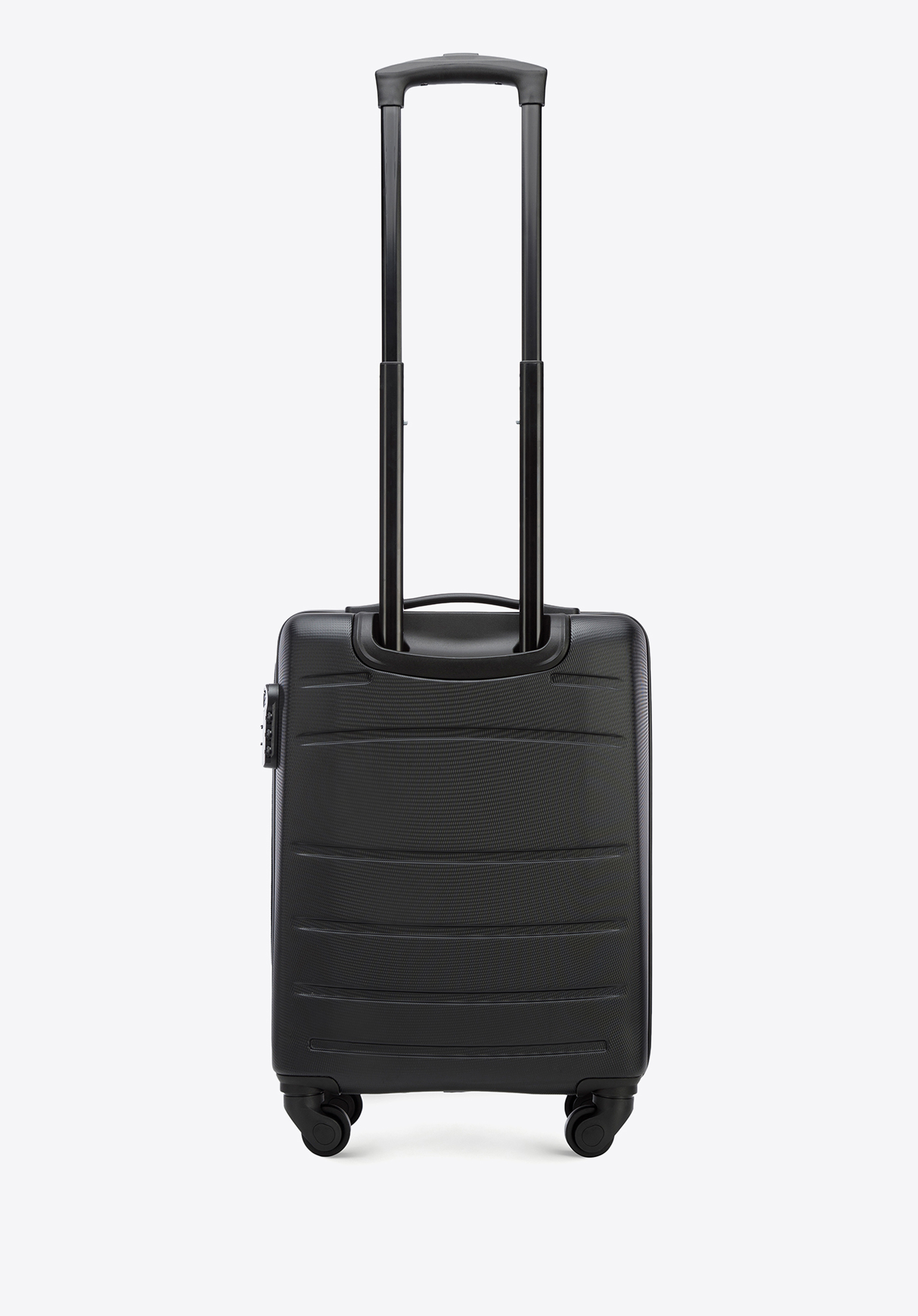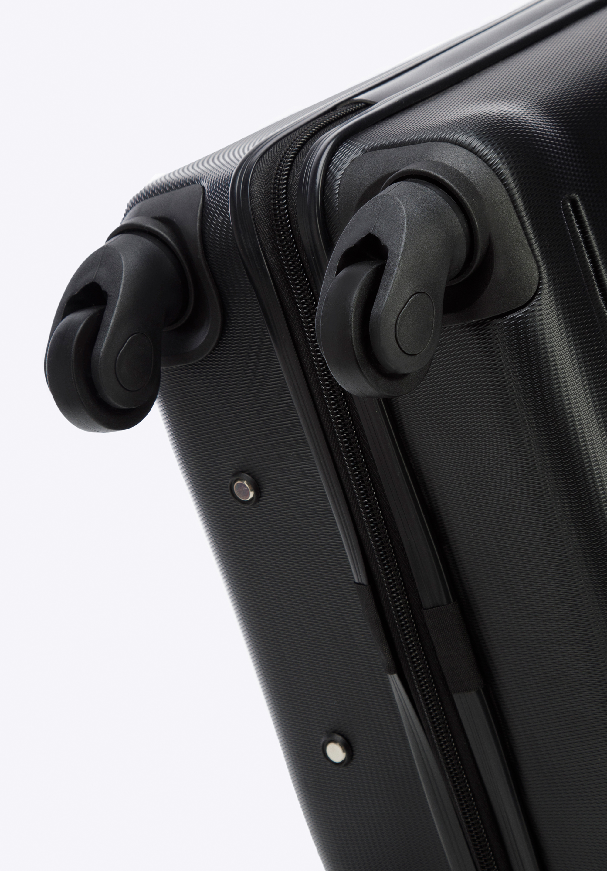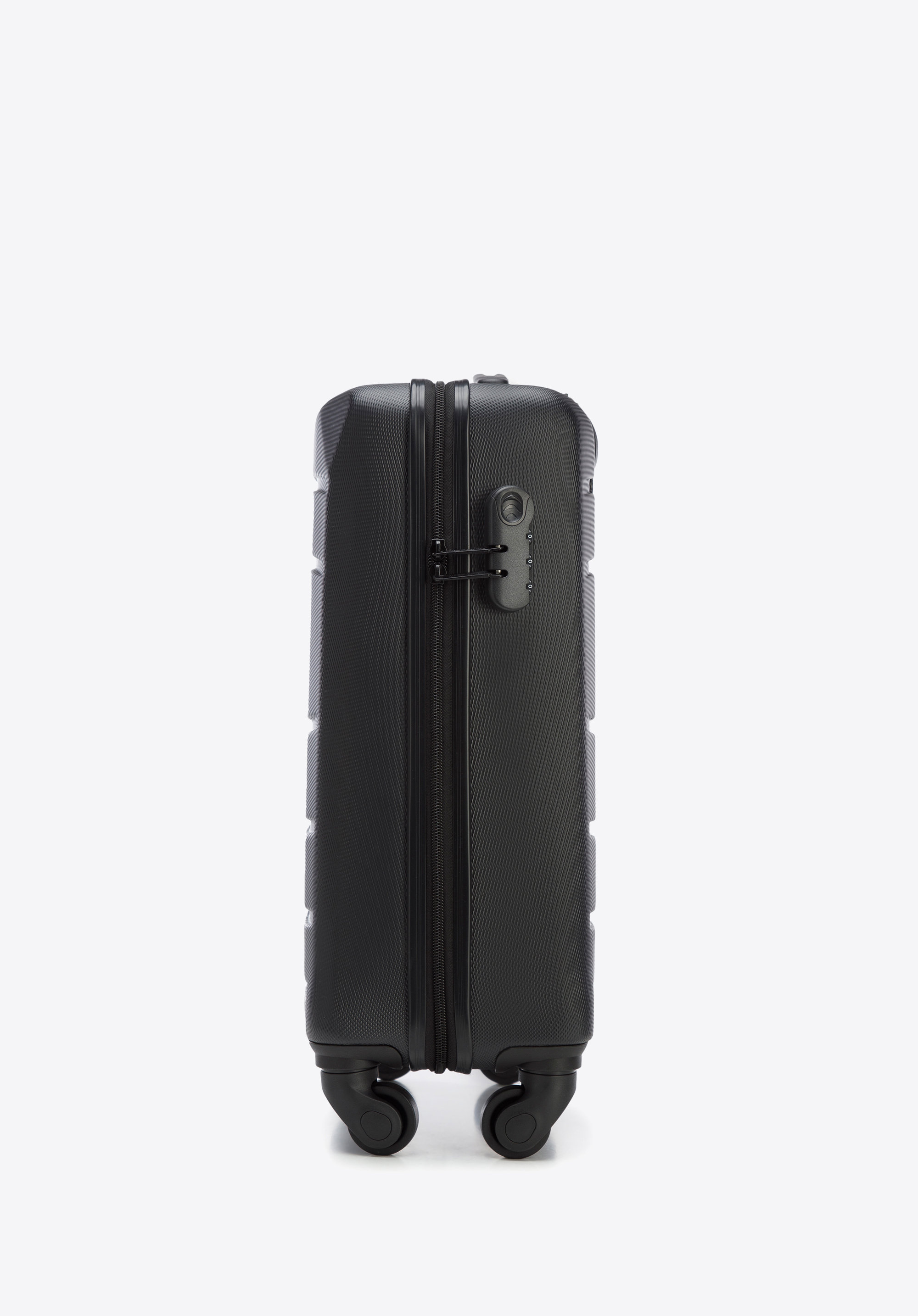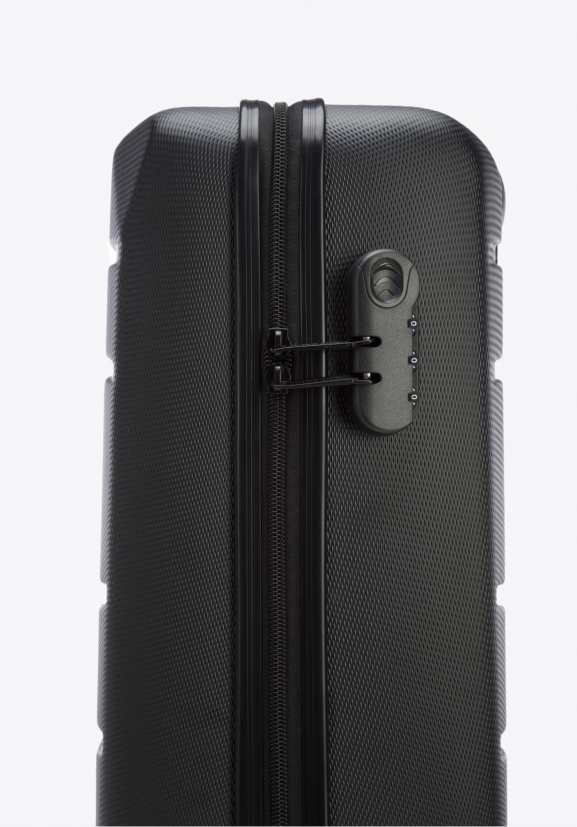 Troler de dimensiuni medii din ABS cu o suprafață poroasă cu rezistență ridicată la zgârieturi.Model echipat cu un lacăt cu cifru, din aluminiu, mâner telescopic retractabil și două mânere din cauciuc, ceea ce facilitează transportul trolerului. Are un relief vertical care adaugă un caracter interesant acestuia.Disponibil în mai multe culori: albastru marin , roz, șampanie , gri și negru .