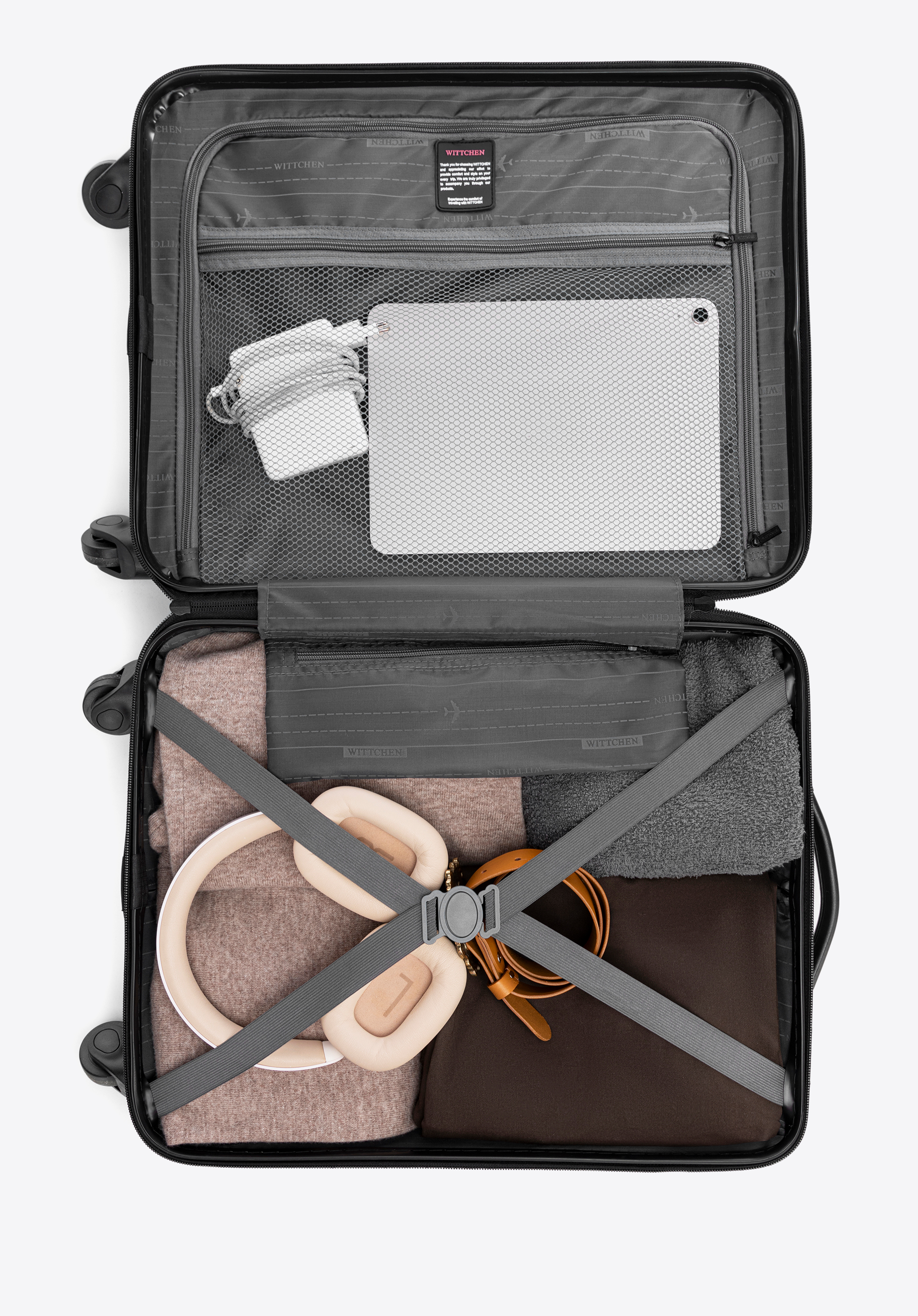 compartimentul principal cu curele elastice pentru asigurarea hainelor împotriva mișcării;