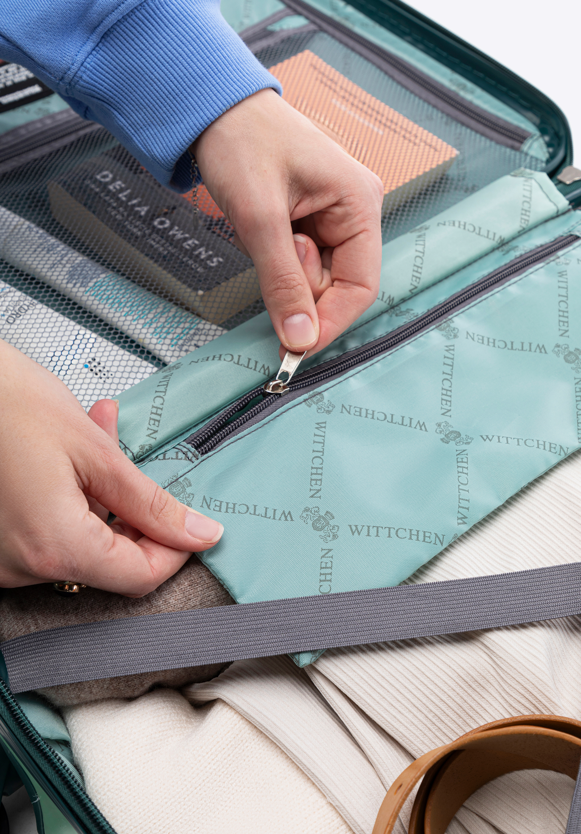 - compartiment cu curele elastice pentru a fixa hainele împotriva deplasării;