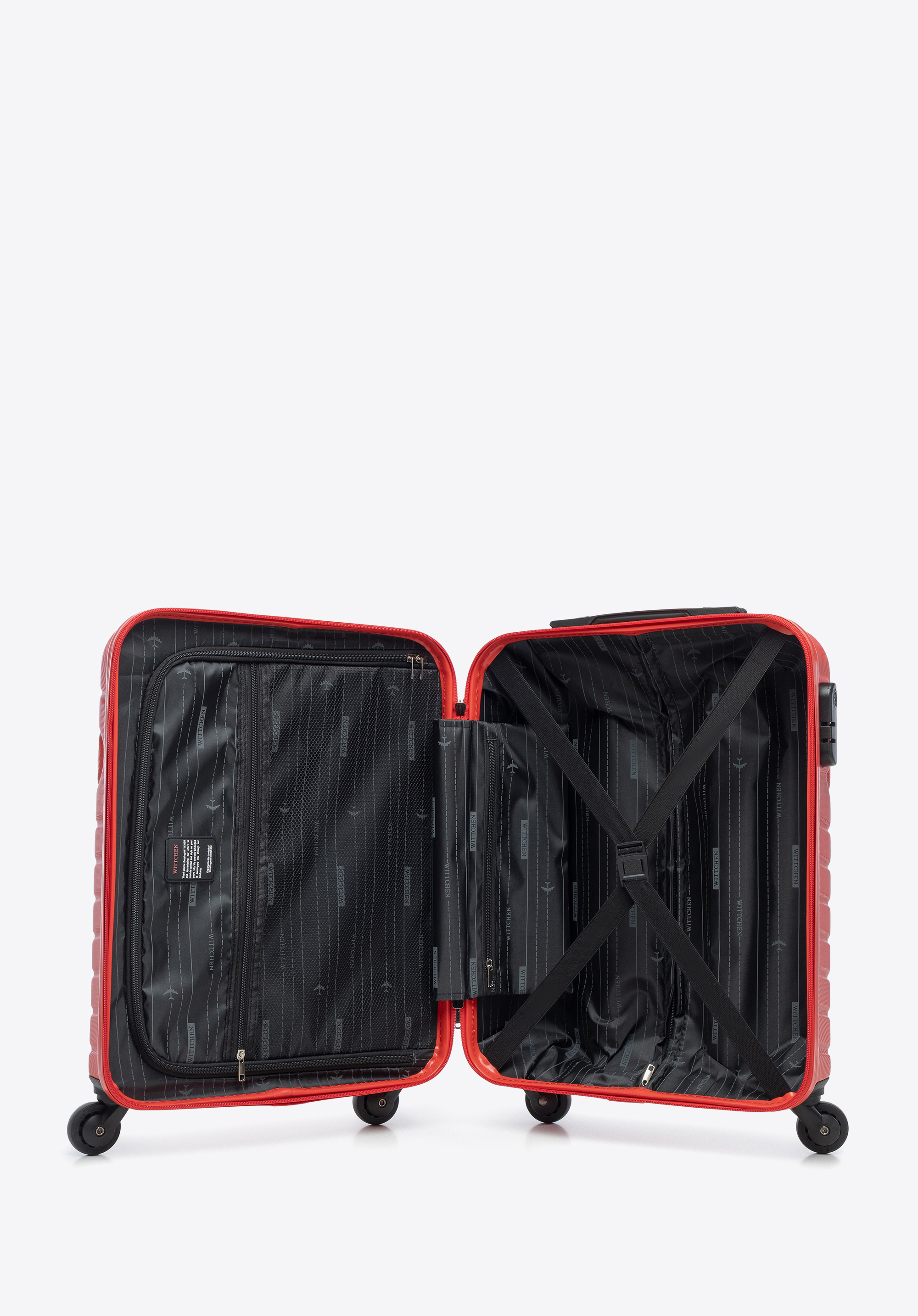 - maner telescopic și mâner din plastic pentru transportul facil al bagajelor;
