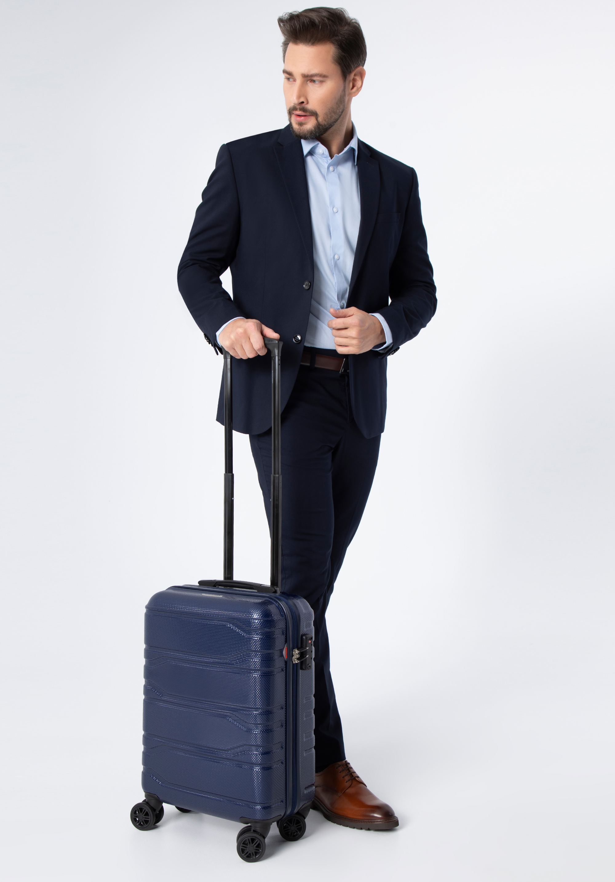 Valiză de cabină din policarbonat cu model ștanțat bleumarin