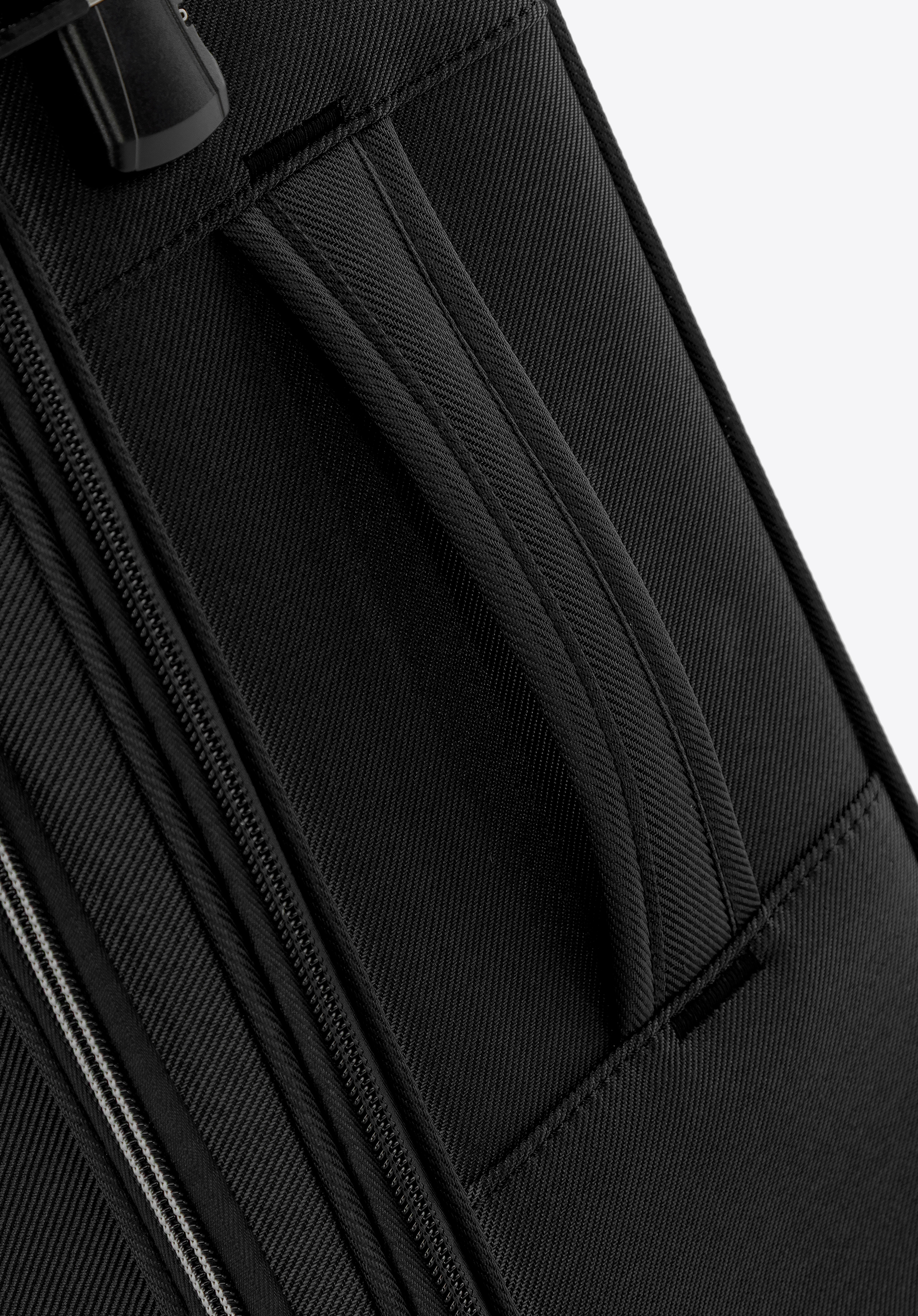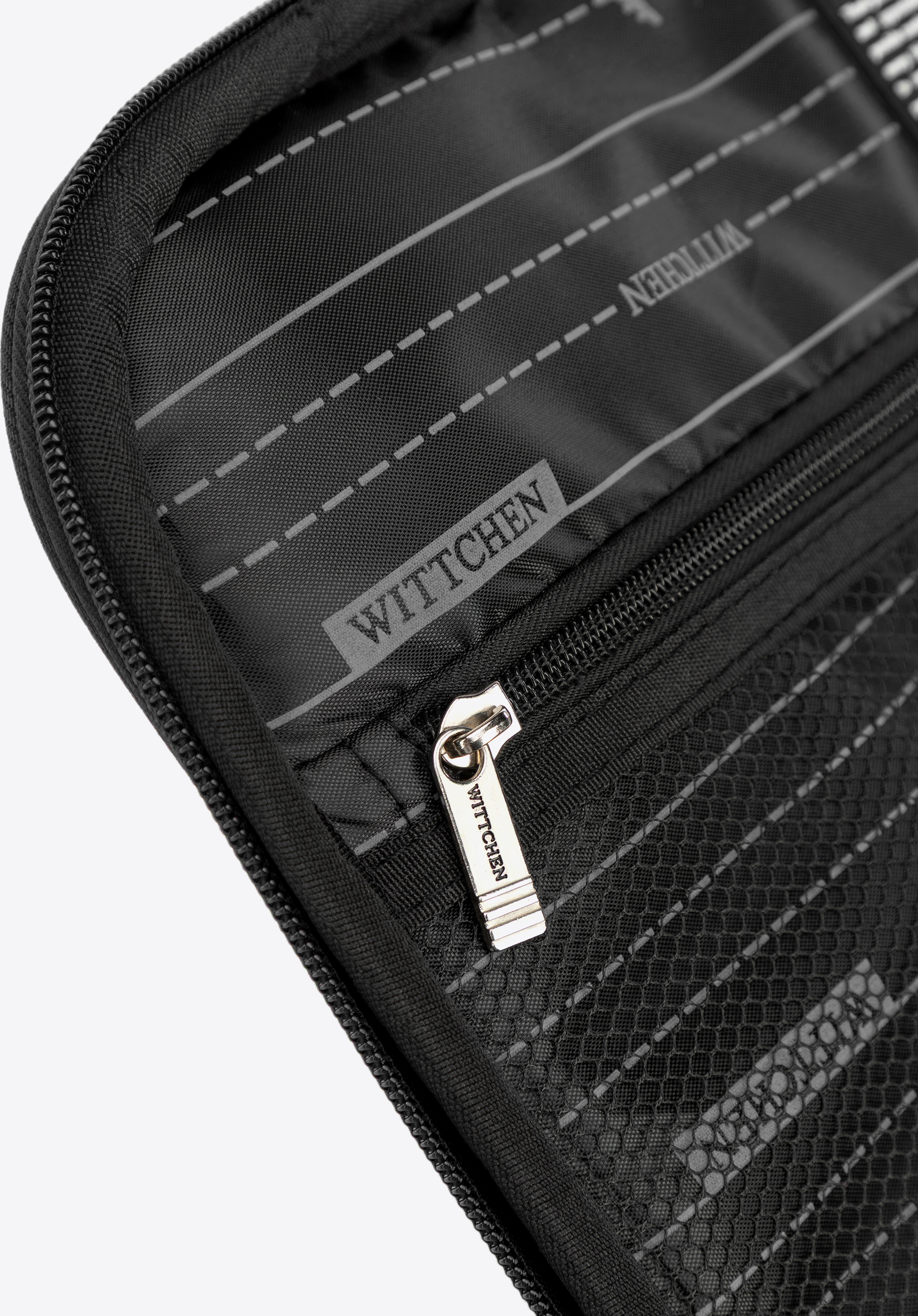 - Interior atent conceput: Compartiment principal cu curele pentru fixarea hainelor și un separator cu buzunar din plasă pentru o mai bună organizare.