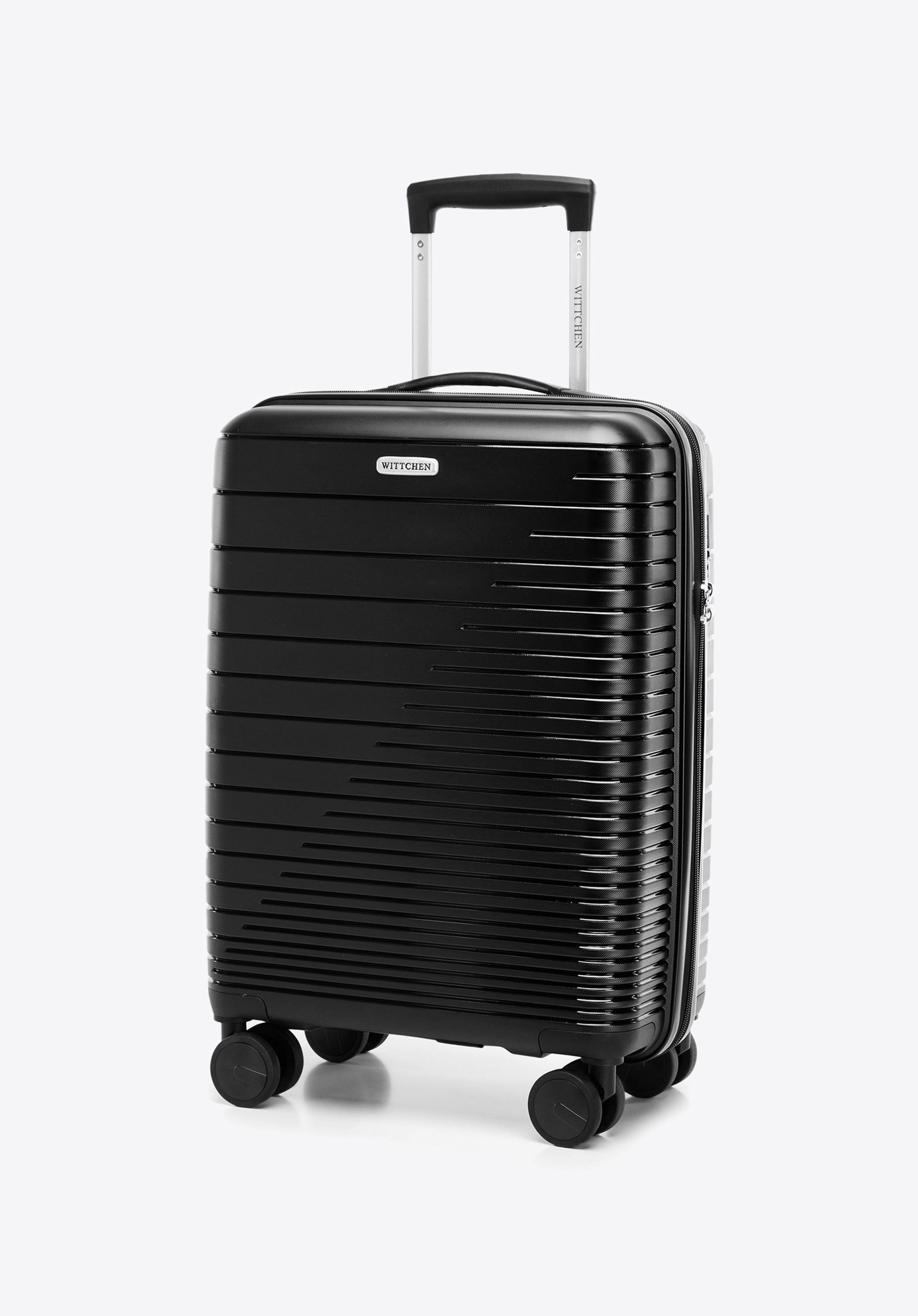 Valiză de cabină din polipropilenă cu dungi strălucitoare negru