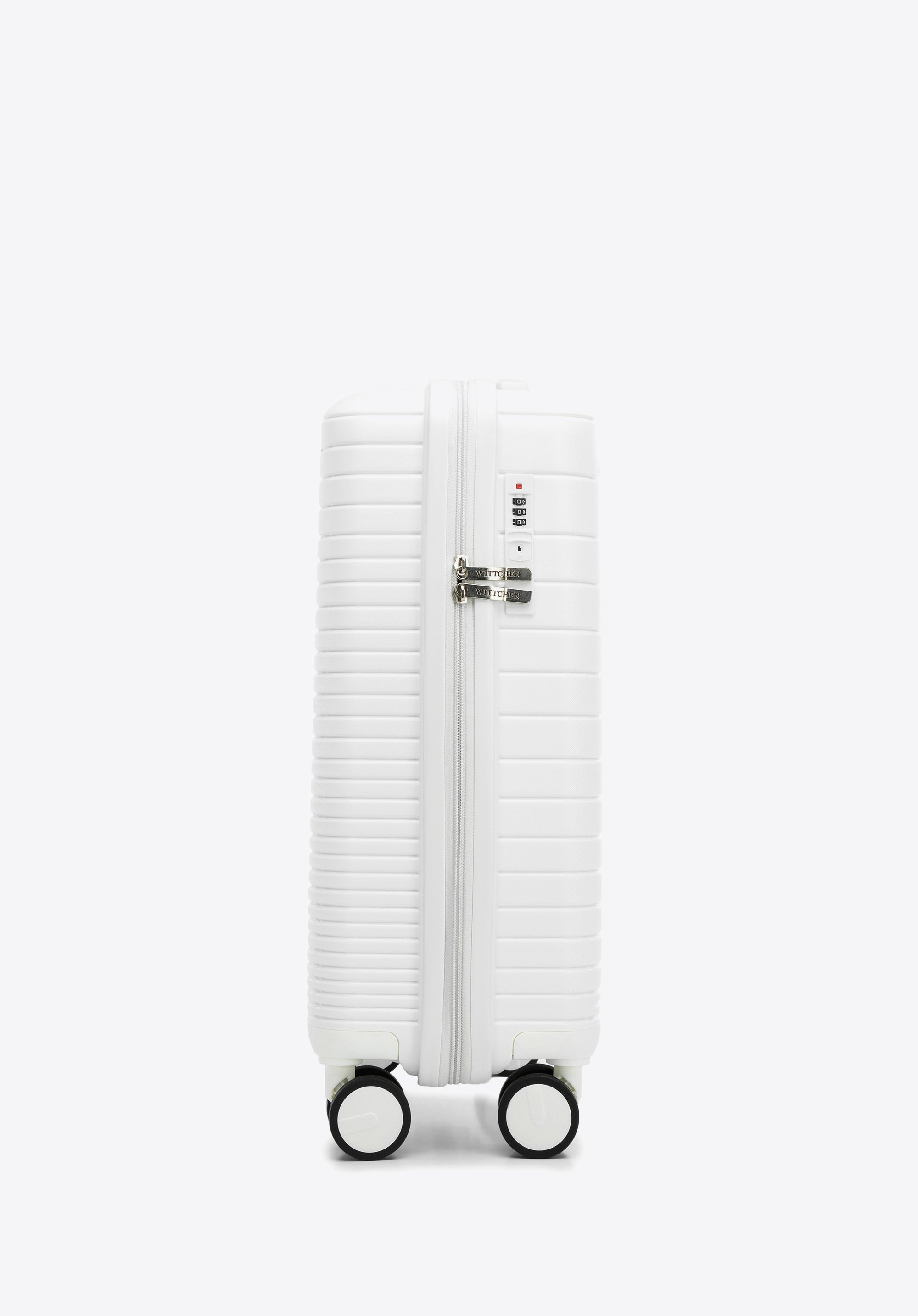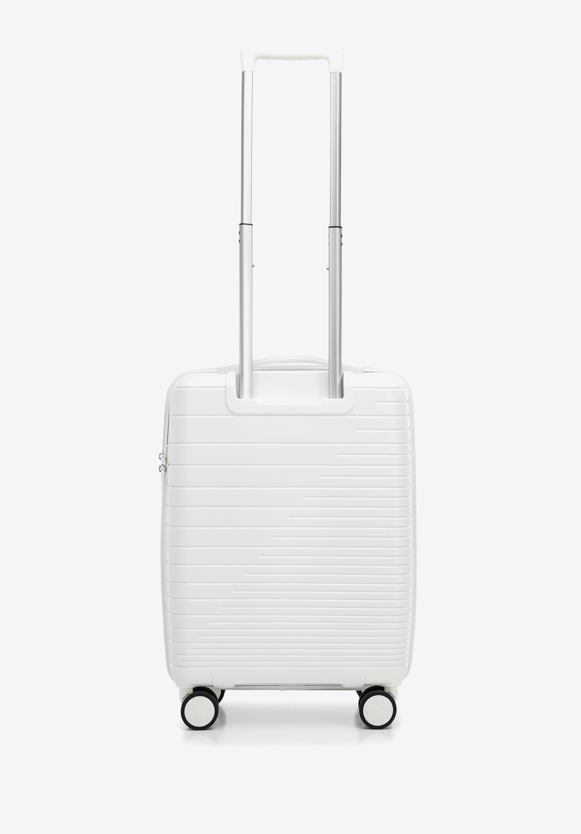 Valiză de cabină din polipropilenă cu dungi strălucitoare nuanță de alb